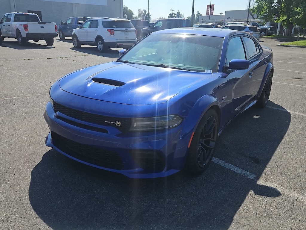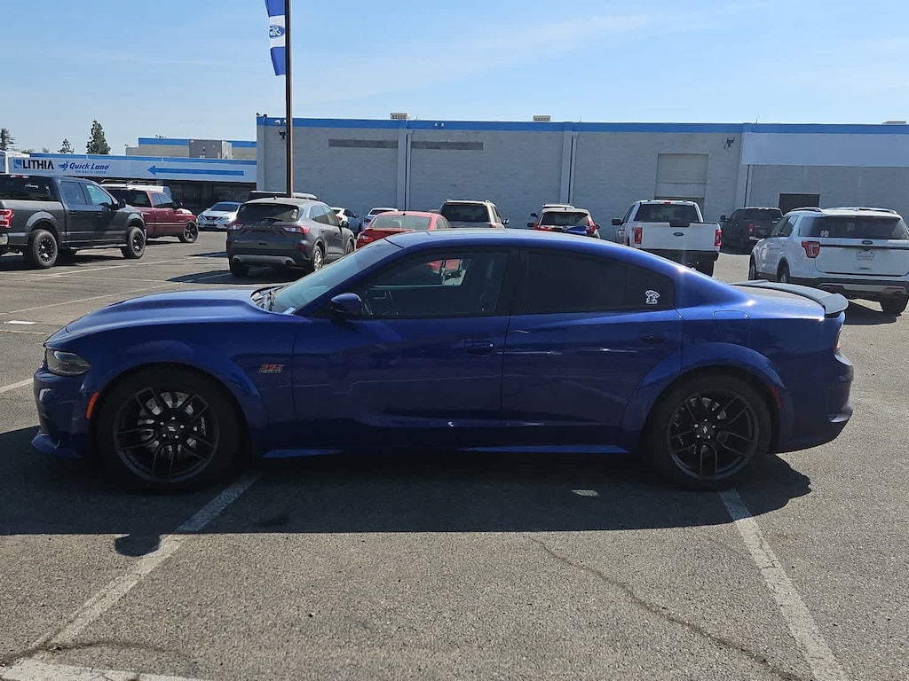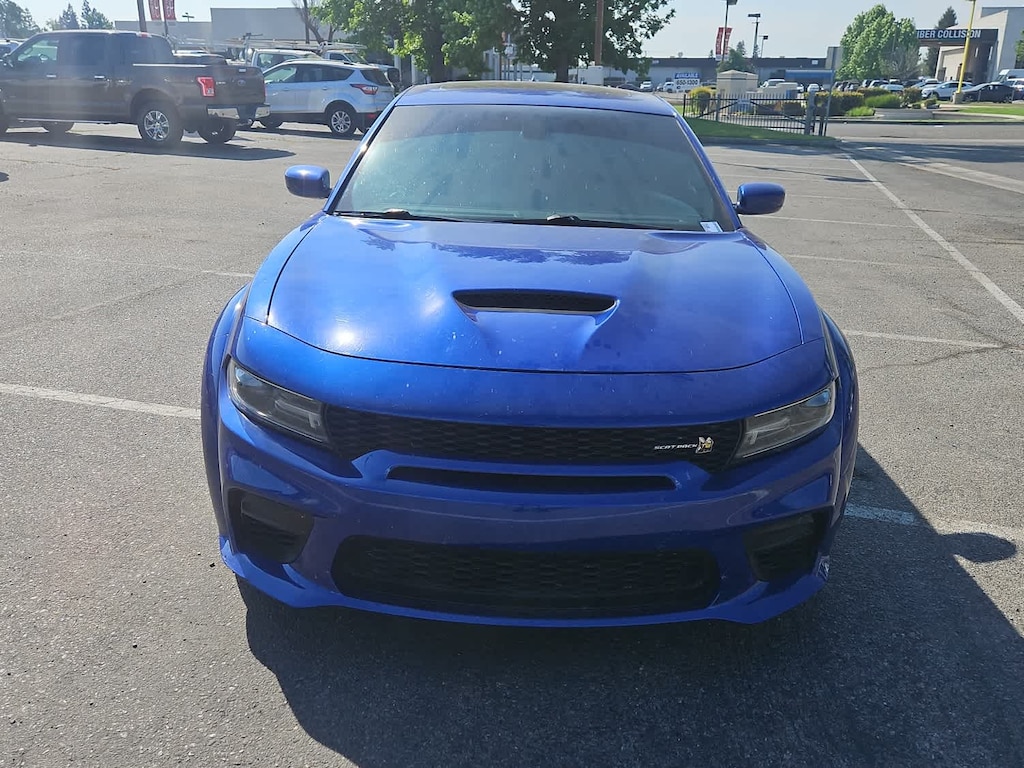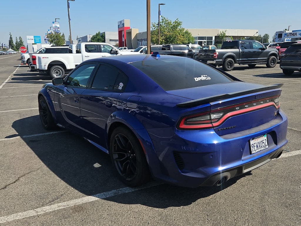 Lithia Ford and Lincoln of Fresno is pleased to offer this Indigo Blue 2021 Dodge Charger R/T Scat Pack Widebody for purchase, this vehicle is well equipped with many features including: harman/kardon Audio Group (19 harman/kardon GreenEdge Speakers, harman/kardon GreenEdge Amp, and Surround Sound), Plus Group (Auto Adjust In Reverse Exterior Mirrors, Auto-Dimming Exterior Driver Mirror, Black-Edged Premium Floormats, Blind Spot & Cross Path Detection, Blind Spot Memory/Power/Heat Mirror, Driver & Passenger Lower LED Lamps, Exterior Mirrors Courtesy Lamps, Front Overhead LED Lighting, Heated 2nd Row Seats, Illuminated Rear Cupholders, Power Driver/Passenger 4-Way Lumbar Adjust, Power Front Driver/Passenger Seats, Power Tilt/Telescope Steering Column, Premium-Stitched Dash Panel, Radio/Driver Seat/Mirrors Memory, Rear Seat Armrest w/Storage Cupholder, Scat Pack Logo Nappa/Alcantara Seat, and Ventilated Front Seats), Quick Order Package 21V Scat Pack Widebody (Adaptive Damping Suspension, All Speed Traction Control, Body Color Fender Flares, Brembo 6-Pot Fixed Front Caliper Brakes, Flat-Bottom Steering Wheel, Performance Shift Indicator, Wheels: 20 x 11 Devils Rim Aluminum, and Widebody Competition Suspension), Widebody Package, Black w/Cloth Performance Seats or Daytona Logo Nappa/Alcantara Seat or Nappa/Alcantara Performance Seat, 4-Wheel Disc Brakes, 6 Speakers, ABS brakes, Air Conditioning, Alloy wheels, AM/FM radio: SiriusXM, Anti-whiplash front head restraints, Apple CarPlay/Android Auto, Auto-dimming Rear-View mirror, Automatic temperature control, Brake assist, Bumpers: body-color, Cloth Performance Seats w/Bee Logo, Compass, Delay-off headlights, Driver door bin, Driver vanity mirror, Dual front impact airbags, Dual front side impact airbags, Electronic Stability Control, Emergency communication system: SiriusXM Guardian, Four wheel independent suspension, Front anti-roll bar, Front Bucket Seats, Front Center Armrest, Front dual zone A/C, Front fog lights, Front License Plate Bracket, Front reading lights, Fully automatic headlights, Garage door transmitter: HomeLink, Heated door mirrors, Heated front seats, Heated steering wheel, Illuminated entry, Knee airbag, Leather Shift Knob, Low tire pressure warning, Manufacturers Statement of Origin, Occupant sensing airbag, Outside temperature display, Overhead airbag, Overhead console, Panic alarm, ParkView Rear Back-Up Camera, Passenger door bin, Passenger vanity mirror, Power door mirrors, Power driver seat, Power steering, Power Sunroof, Power windows, Radio data system, Radio: Uconnect 4C w/8.4 Display, Rear anti-roll bar, Rear reading lights, Rear seat center armrest, Rear window defroster, Remote keyless entry, Security system, Speed control, Speed-Sensitive Wipers, Split folding rear seat, Spoiler, Sport steering wheel, Steering wheel mounted audio controls, Tachometer, Telescoping steering wheel, Tilt steering wheel, Traction control, Trip computer, Variably intermittent wipers, and Wheels: 20 x 9 Lo Gloss Granite Crystal. RWD SRT HEMI 6.4L V8 MDS 8-Speed Automatic R/T Scat Pack Widebody Daytona Edition