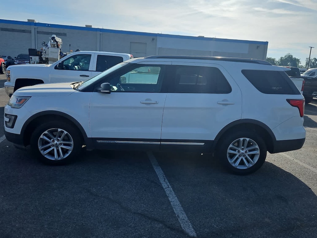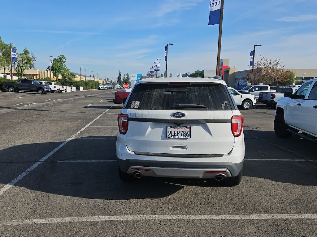 Lithia Ford and Lincoln of Fresno is pleased to offer this Oxford White 2017 Ford Explorer XLT for purchase, this vehicle is well equipped with many features including: Equipment Group 200A, 4WD, 18 5-Spoke Painted Aluminum Wheels, 3.65 Axle Ratio, 3rd row seats: split-bench, 4-Wheel Disc Brakes, 6 Speakers, ABS brakes, Air Conditioning, Alloy wheels, AM/FM radio: SiriusXM, Brake assist, Bumpers: body-color, CD player, Compass, Delay-off headlights, Driver door bin, Driver vanity mirror, Dual front impact airbags, Dual front side impact airbags, Electronic Stability Control, Emergency communication system: 911 Assist, Exterior Parking Camera Rear, Four wheel independent suspension, Front anti-roll bar, Front Bucket Seats, Front Center Armrest, Front fog lights, Front reading lights, Fully automatic headlights, Heated door mirrors, Illuminated entry, Knee airbag, Leather steering wheel, Low tire pressure warning, Occupant sensing airbag, Outside temperature display, Overhead airbag, Overhead console, Panic alarm, Passenger door bin, Passenger vanity mirror, Power door mirrors, Power driver seat, Power passenger seat, Power steering, Power windows, Radio: AM/FM Stereo w/Single-CD/MP3 Capable, Rear air conditioning, Rear anti-roll bar, Rear Parking Sensors, Rear reading lights, Rear seat center armrest, Rear window defroster, Rear window wiper, Remote keyless entry, Roof rack: rails only, Security system, Speed control, Speed-sensing steering, Speed-Sensitive Wipers, Split folding rear seat, Spoiler, Steering wheel mounted audio controls, SYNC Communication & Entertainment System, Tachometer, Telescoping steering wheel, Tilt steering wheel, Traction control, Trip computer, Turn signal indicator mirrors, and Variably intermittent wipers. 4WD 3.5L 6-Cylinder SMPI DOHC 6-Speed Automatic with Select-Shift XLT