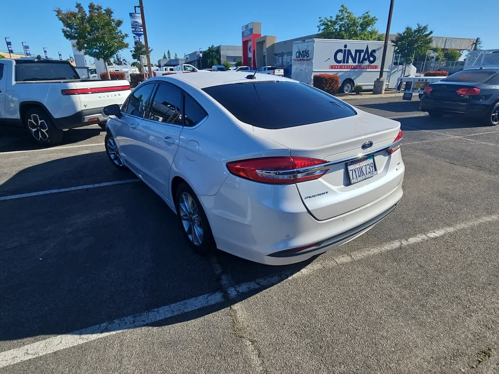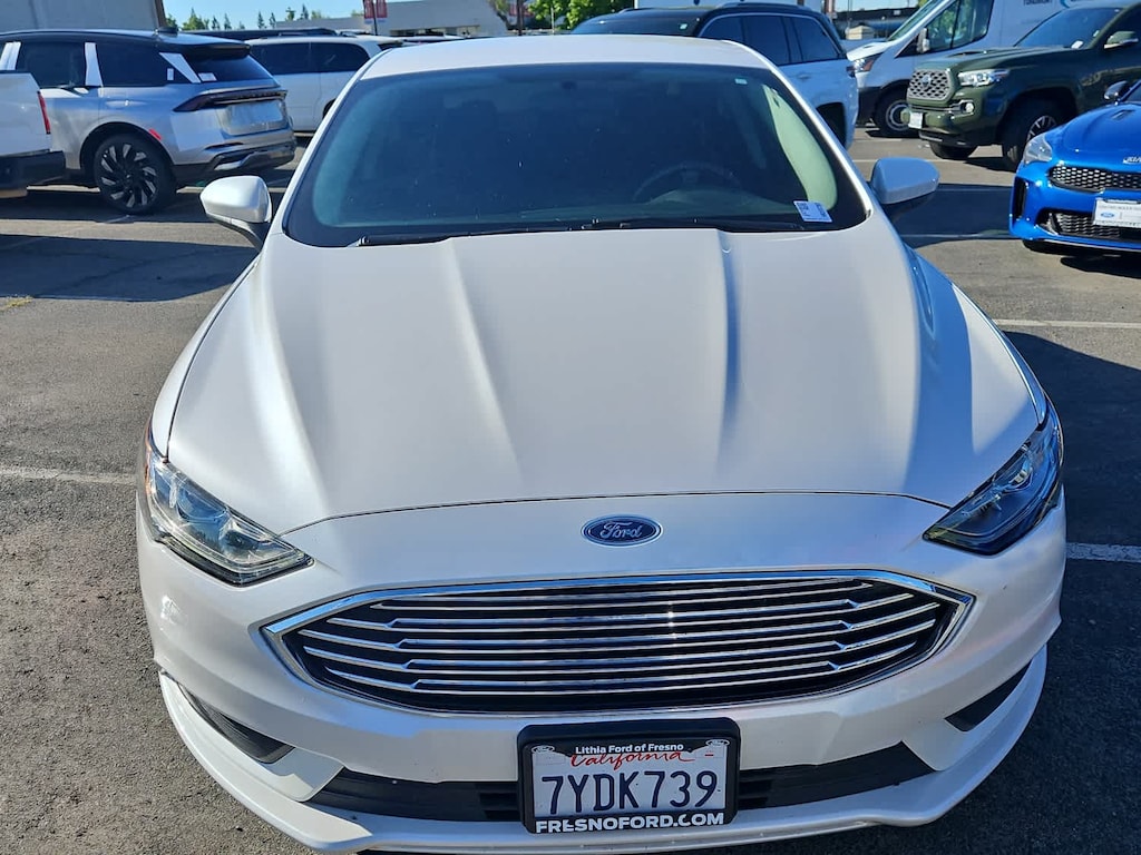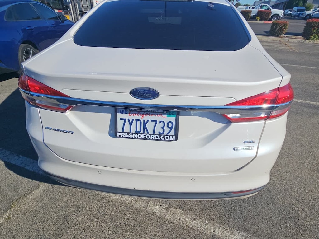 Lithia Ford and Lincoln of Fresno is pleased to offer this White Platinum 2017 Ford Fusion SE for purchase, this vehicle is well equipped with many features including: Equipment Group 200A, Fusion SE Technology Package (Dual-Zone Electronic Automatic Temperature Control and SYNC 3 Communications & Entertainment System), 6-Speed Automatic, 4-Wheel Disc Brakes, 6 Speakers, ABS brakes, Air Conditioning, Alloy wheels, AM/FM radio: SiriusXM, Brake assist, Bumpers: body-color, CD player, Cloth Front Bucket Seats, Compass, Delay-off headlights, Driver door bin, Driver vanity mirror, Dual front impact airbags, Dual front side impact airbags, Electronic Stability Control, Emergency communication system: 911 Assist, Exterior Parking Camera Rear, Four wheel independent suspension, Front anti-roll bar, Front Bucket Seats, Front Center Armrest, Front reading lights, Fully automatic headlights, Illuminated entry, Knee airbag, Low tire pressure warning, Occupant sensing airbag, Outside temperature display, Overhead airbag, Overhead console, Panic alarm, Passenger door bin, Passenger vanity mirror, Power door mirrors, Power driver seat, Power passenger seat, Power steering, Power windows, Radio data system, Radio: AM/FM Stereo/MP3/Single-CD, Rear anti-roll bar, Rear reading lights, Rear seat center armrest, Rear window defroster, Remote keyless entry, Security system, SiriusXM Radio, Speed control, Speed-sensing steering, Speed-Sensitive Wipers, Split folding rear seat, Steering wheel mounted audio controls, SYNC Communications & Entertainment System, Tachometer, Telescoping steering wheel, Tilt steering wheel, Traction control, Trip computer, Variably intermittent wipers, Voice-Activated Touchscreen Navigation System, and Wheels: 17 Premium Painted Luster Nickel. FWD 1.5L EcoBoost 6-Speed Automatic SE