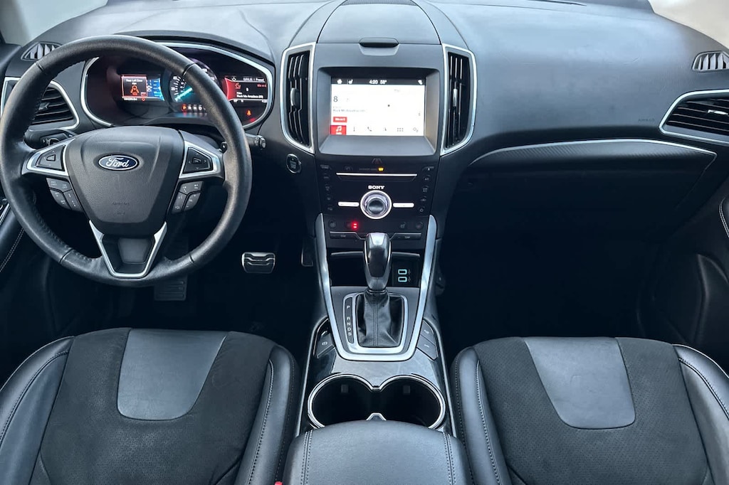 Lithia Ford and Lincoln of Fresno is pleased to offer this Shadow Black 2018 Ford Edge Sport for purchase, this vehicle is well equipped with many features including: Cold Weather Package (Front & Rear Floor Liners, Heated Steering Wheel, and Windshield Wiper De-Icer), Equipment Group 401A (110V/150W AC Power Outlet, Adaptive Cruise Control & Fwd Collision Warning, BLIS Blind Spot Information System, Cooled Front Seats, Enhanced Active Park Assist, Front 180 Degree Camera, Heated Rear-Seats, HID Projector-Style Headlamps w/Auto High Beams, Lane-Keeping System, Rain-Sensing Wipers, Remote Start System, SiriusXM Traffic & Travel Link, and Voice-Activated Touchscreen Navigation System), AWD, 12 Speakers, 3.16 Axle Ratio, 4-Wheel Disc Brakes, ABS brakes, Air Conditioning, Alloy wheels, AM/FM radio: SiriusXM, AM/FM Stereo w/Single CD Player, Apple CarPlay/Android Auto, Auto-dimming Rear-View mirror, Automatic temperature control, Brake assist, Bumpers: body-color, CD player, Compass, Delay-off headlights, Driver door bin, Driver vanity mirror, Dual front impact airbags, Dual front side impact airbags, Electronic Stability Control, Emergency communication system: SYNC 3 911 Assist, Exterior Parking Camera Rear, Four wheel independent suspension, Front anti-roll bar, Front Bucket Seats, Front Center Armrest w/Storage, Front dual zone A/C, Front reading lights, Fully automatic headlights, Garage door transmitter, Heated door mirrors, Heated front seats, Illuminated entry, Knee airbag, Leather Shift Knob, Leather-Trimmed Heated Sport Bucket Seats, Low tire pressure warning, Memory seat, Occupant sensing airbag, Outside temperature display, Overhead airbag, Overhead console, Panic alarm, Panoramic Vista Roof, Passenger door bin, Passenger vanity mirror, Power door mirrors, Power driver seat, Power Liftgate, Power passenger seat, Power steering, Power windows, Premium audio system: Sony, Rear anti-roll bar, Rear Parking Sensors, Rear reading lights, Rear seat center armrest, Rear window defroster, Rear window wiper, Remote keyless entry, Security system, SiriusXM Radio, Speed control, Speed-sensing steering, Speed-Sensitive Wipers, Split folding rear seat, Spoiler, Steering wheel memory, Steering wheel mounted audio controls, SYNC 3 Communications & Entertainment System, Tachometer, Telescoping steering wheel, Tilt steering wheel, Traction control, Trip computer, Turn signal indicator mirrors, Variably intermittent wipers, Wheels: 20 Polished w/Magn Low Gloss Ptd Pockets, and Wheels: 21 Premium Dark Tarnish Low Gloss. AWD 2.7L V6 EcoBoost 6-Speed Automatic Sport
