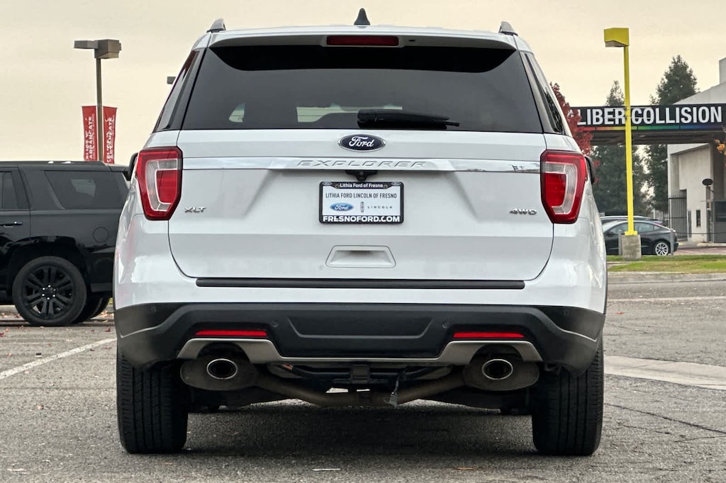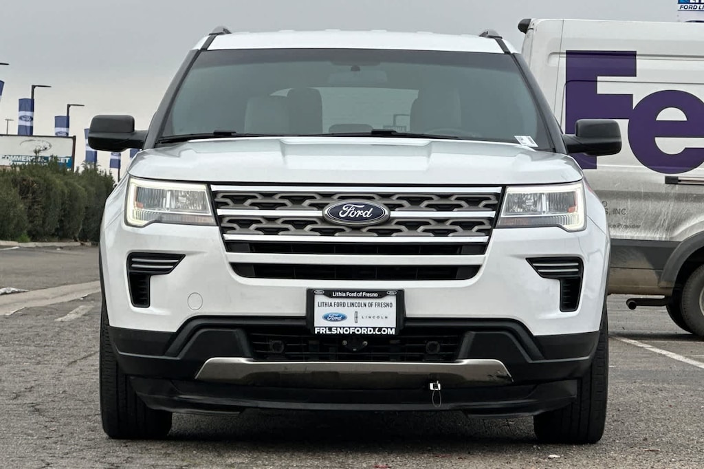 Lithia Ford and Lincoln of Fresno is pleased to offer this Oxford White 2018 Ford Explorer XLT for purchase, this vehicle is well equipped with many features including: 4WD, 3.65 Axle Ratio, 3rd row seats: split-bench, 4-Wheel Disc Brakes, 6 Speakers, ABS brakes, Air Conditioning, Alloy wheels, AM/FM radio: SiriusXM, AM/FM Stereo, Brake assist, Bumpers: body-color, Compass, Delay-off headlights, Driver door bin, Driver vanity mirror, Dual front impact airbags, Dual front side impact airbags, Electronic Stability Control, Emergency communication system: 911 Assist, Exterior Parking Camera Rear, Four wheel independent suspension, Front anti-roll bar, Front Bucket Seats, Front Center Armrest, Front reading lights, Fully automatic headlights, Heated door mirrors, Illuminated entry, Knee airbag, Leather steering wheel, Low tire pressure warning, Occupant sensing airbag, Outside temperature display, Overhead airbag, Overhead console, Panic alarm, Passenger door bin, Passenger vanity mirror, Power door mirrors, Power driver seat, Power passenger seat, Power steering, Power windows, Rear air conditioning, Rear anti-roll bar, Rear Parking Sensors, Rear reading lights, Rear seat center armrest, Rear window defroster, Rear window wiper, Remote keyless entry, Roof rack: rails only, Security system, Speed control, Speed-sensing steering, Speed-Sensitive Wipers, Split folding rear seat, Spoiler, Steering wheel mounted audio controls, SYNC Communication & Entertainment System, Tachometer, Telescoping steering wheel, Tilt steering wheel, Traction control, Trip computer, Variably intermittent wipers, and Wheels: 18 5-Split-Spoke Sparkle Silver-Painted. 4WD 3.5L 6-Cylinder SMPI DOHC 6-Speed Automatic with Select-Shift XLT