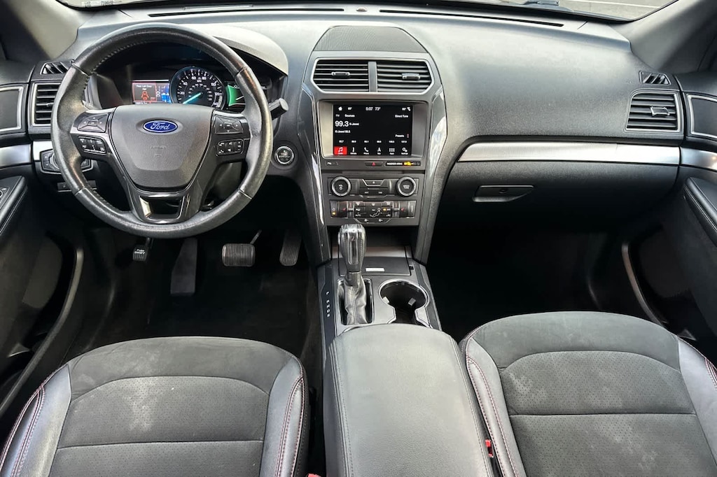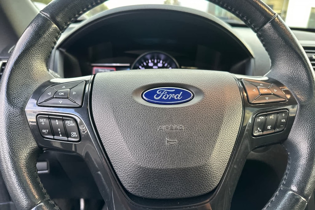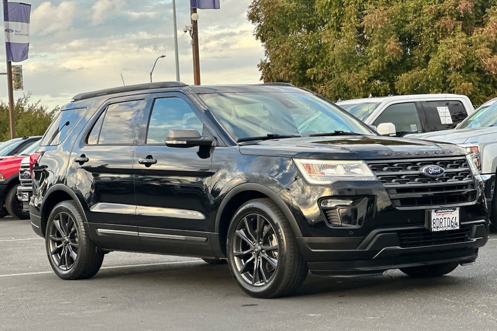 Lithia Ford and Lincoln of Fresno is pleased to offer this Shadow Black 2018 Ford Explorer XLT for purchase, this vehicle is well equipped with many features including: Driver Connect Package (2 Driver Configurable 4.2 Color LCD Displays), Equipment Group 202A (Forward Sensing System, LED Fog Lamps, Power & Heated Glass Sideview Mirrors, Power Liftgate, Radio: AM/FM Stereo w/7 Speakers, and Remote Start System), Ford Safe & Smart Package (Rain-Sensing Wipers (Front Only)), XLT Appearance Package (Black Roof Rack Side Rails, Lower Door Trim, Magnetic Met-Painted Grille Bars w/Mesh Insert, and Sideview Mirror Caps), XLT Technology Feature Bundle (Voice-Activated Touchscreen Navigation System), 3.39 Non-Limited-Slip Axle Ratio, 3rd row seats: split-bench, 4-Wheel Disc Brakes, 6 Speakers, ABS brakes, Air Conditioning, Alloy wheels, AM/FM radio: SiriusXM, AM/FM Stereo, Brake assist, Bumpers: body-color, Compass, Delay-off headlights, Driver door bin, Driver vanity mirror, Dual front impact airbags, Dual front side impact airbags, Electronic Stability Control, Emergency communication system: 911 Assist, Exterior Parking Camera Rear, Four wheel independent suspension, Front anti-roll bar, Front Bucket Seats, Front Center Armrest, Front License Plate Bracket, Front reading lights, Fully automatic headlights, Heated door mirrors, Illuminated entry, Knee airbag, Leather steering wheel, Low tire pressure warning, Occupant sensing airbag, Outside temperature display, Overhead airbag, Overhead console, Panic alarm, Passenger door bin, Passenger vanity mirror, Power door mirrors, Power driver seat, Power passenger seat, Power steering, Power windows, Rear air conditioning, Rear anti-roll bar, Rear Parking Sensors, Rear reading lights, Rear seat center armrest, Rear window defroster, Rear window wiper, Remote keyless entry, Roof rack: rails only, Security system, Speed control, Speed-sensing steering, Speed-Sensitive Wipers, Split folding rear seat, Spoiler, Steering wheel mounted audio controls, SYNC Communication & Entertainment System, Tachometer, Telescoping steering wheel, Tilt steering wheel, Traction control, Trip computer, Twin Panel Moonroof, Variably intermittent wipers, and Wheels: 18 5-Spoke Sparkle Silver-Painted Alum. FWD 3.5L 6-Cylinder SMPI DOHC 6-Speed Automatic with Select-Shift XLT