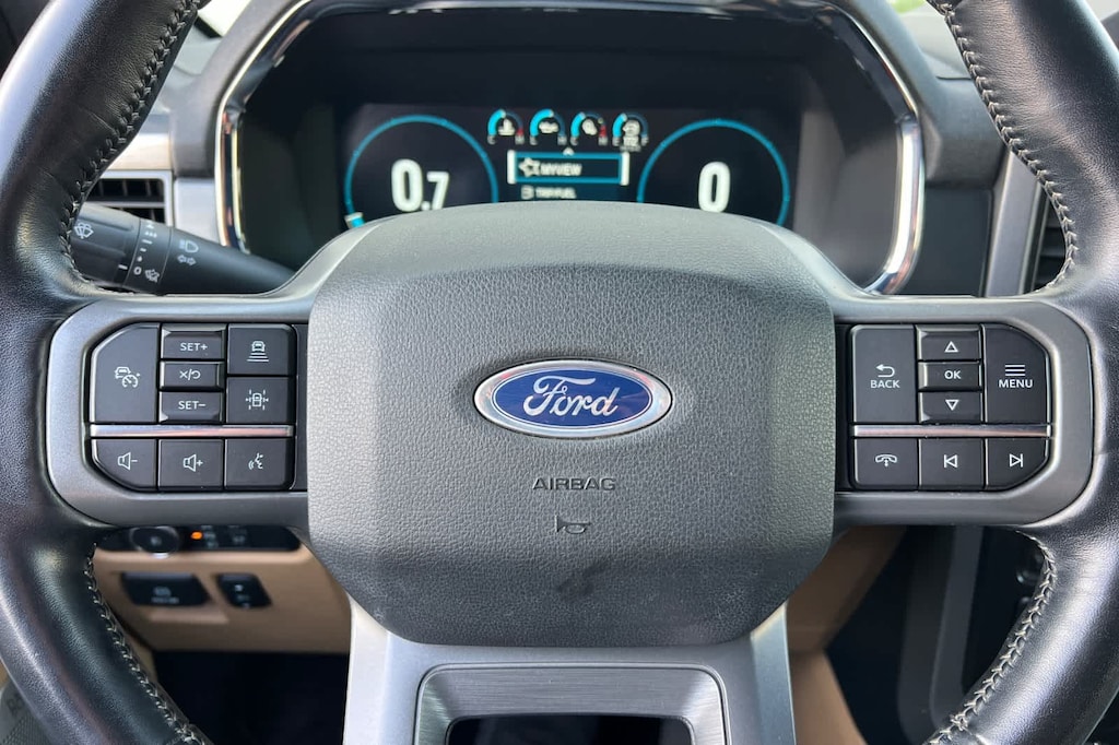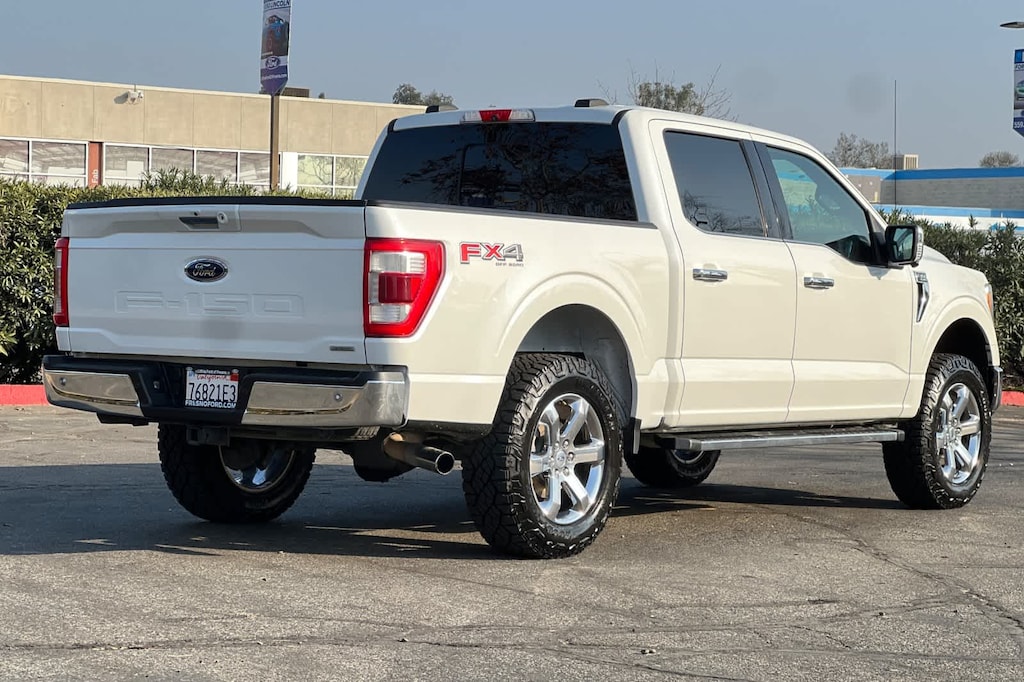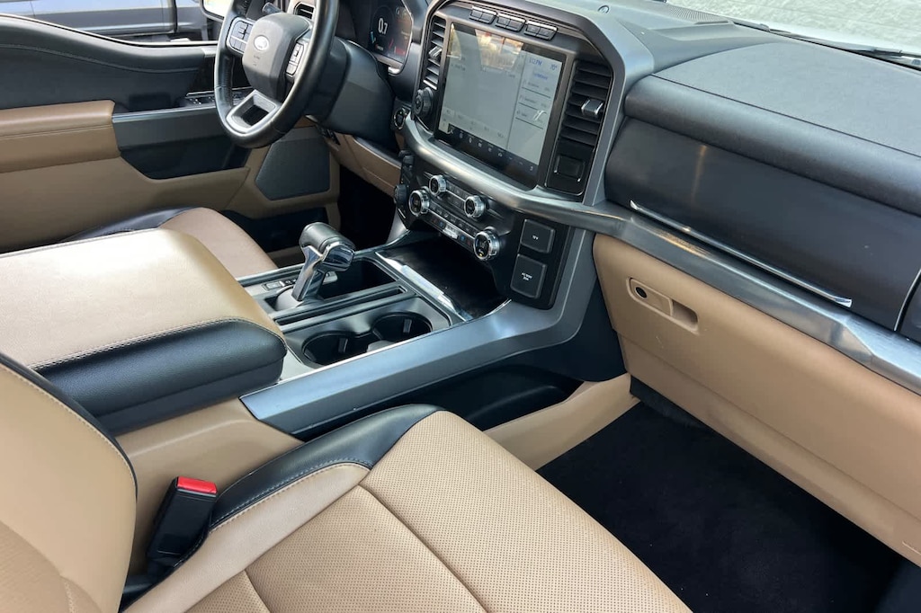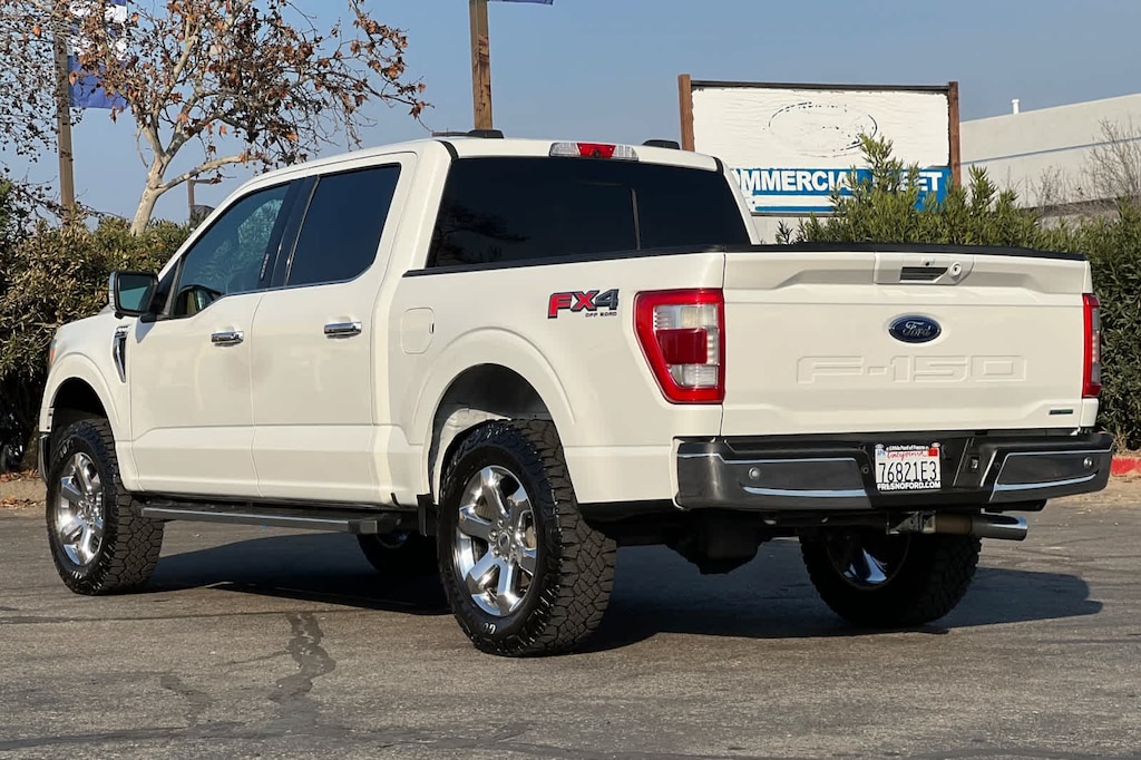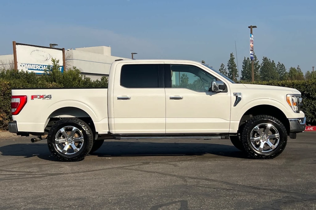Lithia Ford and Lincoln of Fresno is pleased to offer this Star White Metallic Tri-Coat 2021 Ford F-150 Lariat for purchase, this vehicle is well equipped with many features including: Equipment Group 501A Mid (Onboard 400W Outlet, Radio: B&O Sound System by Bang & Olufsen, and Universal Garage Door Opener), Ford Co-Pilot360 Assist 2.0 (Connected Built-In Navigation, Evasive Steering Assist, Intelligent Adaptive Cruise Control w/Stop & Go, Intersection Assist, and Speed Sign Recognition), FX4 Off-Road Package (4x4 FX4 Off-Road Bodyside Decal, Hill Descent Control, Monotube Rear Shocks, Off-Road Tuned Front Shock Absorbers, Rock Crawl Mode, and Tray Style Floor Liner), GVWR: 7,050 lbs Payload Package, Lariat Chrome Appearance Package (6 Chrome Running Board, Chrome 2-Bar Grille w/4 Minor Bars, Chrome Door & Tailgate Handles w/Body-Color Bezel, Chrome Single-Tip Exhaust, and Chrome Skull Caps on Exterior Mirrors), Trailer Tow Package (Class IV Trailer Hitch Receiver, Integrated Trailer Brake Controller, and Pro Trailer Backup Assist), 4WD, 360 Degree Camera, Electronic Locking w/3.55 Axle Ratio, Pro Power Onboard - 2KW, Wheels: 20 Chrome-Like PVD, 4-Wheel Disc Brakes, 7 Speakers, ABS brakes, Adjustable pedals, Air Conditioning, Alloy wheels, AM/FM radio: SiriusXM with 360L, Auto High-beam Headlights, Auto-dimming door mirrors, Auto-dimming Rear-View mirror, Automatic temperature control, Brake assist, Bumpers: chrome, Compass, Delay-off headlights, Driver door bin, Driver vanity mirror, Dual front impact airbags, Dual front side impact airbags, Electronic Stability Control, Emergency communication system: SYNC 4 911 Assist, Extended Range 36 Gallon Fuel Tank, Exterior Parking Camera Rear, Front anti-roll bar, Front Center Armrest w/Storage, Front dual zone A/C, Front fog lights, Front reading lights, Front wheel independent suspension, Fully automatic headlights, Heated door mirrors, Heated front seats, Illuminated entry, Leather-Trimmed 40/20/40 Front Seat, LED Sideview Mirror Spotlights, Low tire pressure warning, Memory seat, Navigation system: Connected Navigation (90-Day Trial), Occupant sensing airbag, Outside temperature display, Overhead airbag, Overhead console, Panic alarm, Passenger door bin, Passenger vanity mirror, Pedal memory, Power door mirrors, Power driver seat, Power passenger seat, Power steering, Power Tailgate, Power windows, Radio data system, Radio: AM/FM SiriusXM w/360L, Rear reading lights, Rear seat center armrest, Rear step bumper, Rear window defroster, Remote keyless entry, Security system, Speed control, Speed-sensing steering, Split folding rear seat, Steering wheel mounted audio controls, SYNC 4 w/Enhanced Voice Recognition, Tachometer, Telescoping steering wheel, Tilt steering wheel, Traction control, Tray Style Floor Liner (47W), Trip computer, Turn signal indicator mirrors, Variably intermittent wipers, Ventilated front seats, and Voltmeter. 4WD 3.5L V6 EcoBoost 10-Speed Automatic Lariat