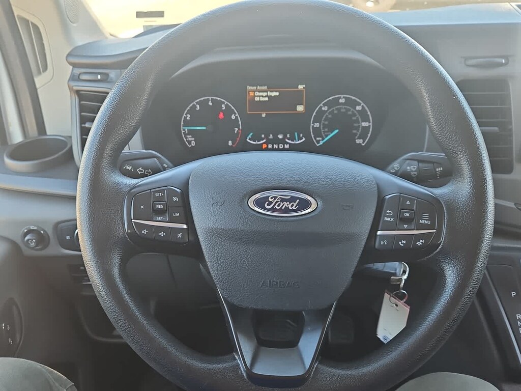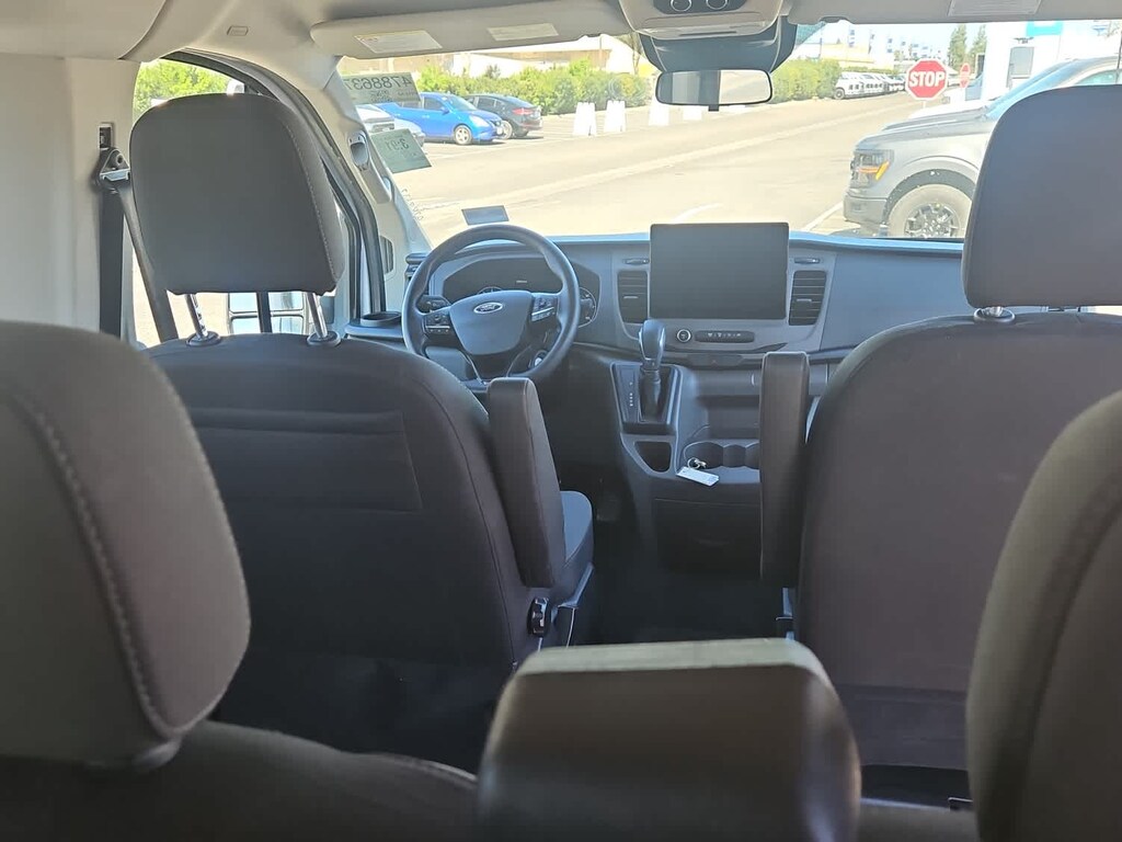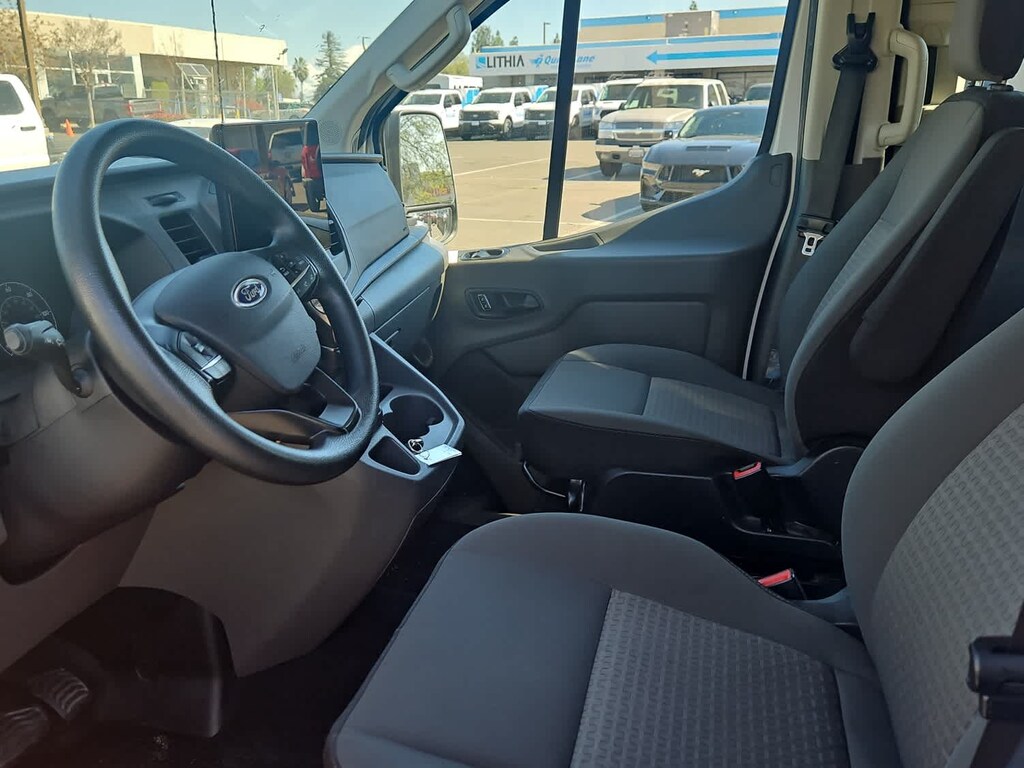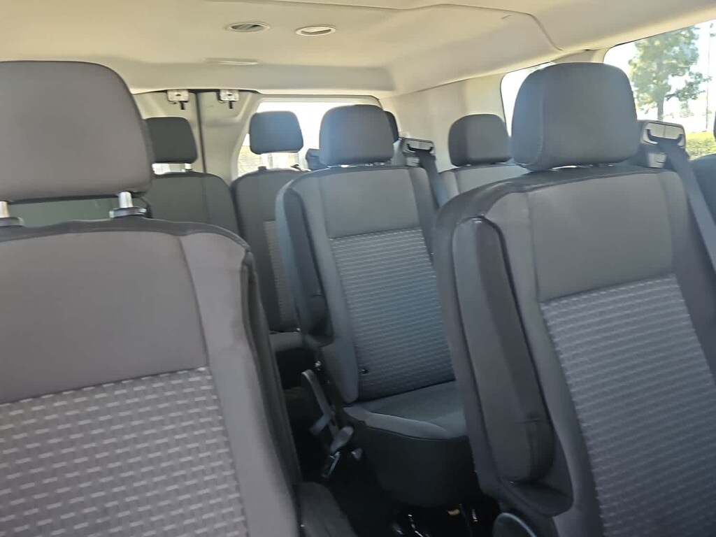 1st row: 2 seats, 2nd row: 3 seats, 3rd row: 3 seats, 4th row: 3 seats and 5th row: 4 seats, GVWR: 9,400 lbs, auxiliary transmission oil cooler (STD). 2022 Ford Transit Passenger Wagon with Oxford White exterior and Dark Palazzo Gray interior features a V6 Cylinder Engine with 275 HP at 6250 RPM*.