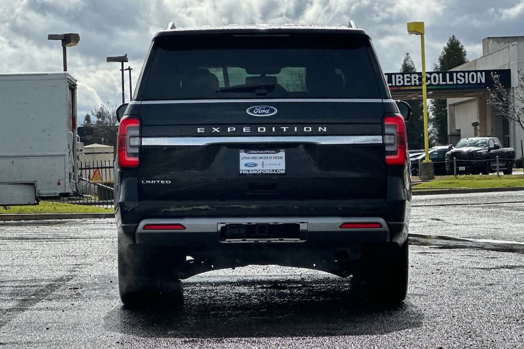 Lithia Ford and Lincoln of Fresno is pleased to offer this Agate Black Metallic 2023 Ford Expedition Limited for purchase, this vehicle is well equipped with many features including: Equipment Group 301A Mid Package, Power Liftgate, Power moonroof, 12 Speakers, 3.31 Axle Ratio, 3rd row seats: split-bench, 4-Wheel Disc Brakes, ABS brakes, Adjustable pedals, Air Conditioning, Alloy wheels, AM/FM radio, Auto High-beam Headlights, Auto Start-Stop Removal (DISC), Auto-dimming door mirrors, Auto-dimming Rear-View mirror, Automatic temperature control, Brake assist, Bumpers: body-color, Compass, Delay-off headlights, Driver door bin, Driver vanity mirror, Dual front impact airbags, Dual front side impact airbags, Electronic Stability Control, Emergency communication system: SYNC 4 911 Assist, Exterior Parking Camera Rear, Four wheel independent suspension, Front anti-roll bar, Front Bucket Seats, Front Center Armrest, Front dual zone A/C, Front fog lights, Front License Plate Bracket, Front reading lights, Fully automatic headlights, Garage door transmitter, Heated & Ventilated Leather Front Captains Chairs, Heated door mirrors, Heated front seats, Heated rear seats, Heated steering wheel, Illuminated entry, Leather steering wheel, Low tire pressure warning, Memory seat, Navigation System, Occupant sensing airbag, Outside temperature display, Overhead airbag, Overhead console, Panic alarm, Passenger door bin, Passenger vanity mirror, Pedal memory, Power door mirrors, Power driver seat, Power passenger seat, Power steering, Power windows, Radio data system, Radio: B&O Sound System by Bang & Olufsen, Rain sensing wipers, Rear air conditioning, Rear anti-roll bar, Rear reading lights, Rear window defroster, Rear window wiper, Reclining 3rd row seat, Remote keyless entry, Second Row Power Windows Removal, Security system, SiriusXM w/360L, Speed control, Speed-sensing steering, Speed-Sensitive Wipers, Split folding rear seat, Spoiler, Steering wheel memory, Steering wheel mounted audio controls, SYNC 4 w/Enhanced Voice Recognition, Tachometer, Telescoping steering wheel, Tilt steering wheel, Traction control, Trip computer, Turn signal indicator mirrors, Variably intermittent wipers, Ventilated front seats, Voltmeter, and Wheels: 20 Bright Machined Aluminum. RWD EcoBoost 3.5L V6 GTDi DOHC 24V Twin Turbocharged 10-Speed Automatic Limited