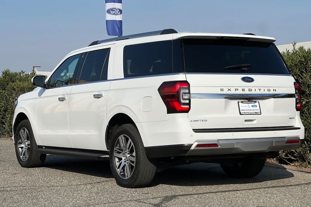 Lithia Ford and Lincoln of Fresno is pleased to offer this Oxford White 2024 Ford Expedition Max Limited for purchase, this vehicle is well equipped with many features including: Equipment Group 301A Mid Package, 2nd Row Power-Folding 40/20/40 Leather Bench Seat, 12 Speakers, 3.31 Axle Ratio, 3rd row seats: split-bench, 4-Wheel Disc Brakes, ABS brakes, Adjustable pedals, Air Conditioning, Alloy wheels, AM/FM radio: SiriusXM with 360L, Auto High-beam Headlights, Auto-dimming door mirrors, Auto-dimming Rear-View mirror, Automatic temperature control, Brake assist, Bumpers: body-color, Compass, Delay-off headlights, Driver door bin, Driver vanity mirror, Dual front impact airbags, Dual front side impact airbags, Electronic Stability Control, Emergency communication system: SYNC 4 911 Assist, Exterior Parking Camera Rear, Four wheel independent suspension, Front anti-roll bar, Front Bucket Seats, Front Center Armrest, Front dual zone A/C, Front fog lights, Front License Plate Bracket, Front reading lights, Fully automatic headlights, Garage door transmitter, Heated & Ventilated Leather Front Captains Chairs, Heated door mirrors, Heated front seats, Heated rear seats, Heated steering wheel, Illuminated entry, Leather steering wheel, Low tire pressure warning, Memory seat, Navigation system: Connected Navigation, Occupant sensing airbag, Outside temperature display, Overhead airbag, Overhead console, Panic alarm, Passenger door bin, Passenger vanity mirror, Pedal memory, Power door mirrors, Power driver seat, Power Liftgate, Power moonroof, Power passenger seat, Power steering, Power windows, Radio data system, Radio: B&O Sound System by Bang & Olufsen, Rain sensing wipers, Rear air conditioning, Rear anti-roll bar, Rear reading lights, Rear window defroster, Rear window wiper, Reclining 3rd row seat, Remote keyless entry, Security system, SiriusXM w/360L, Speed control, Speed-sensing steering, Speed-Sensitive Wipers, Split folding rear seat, Spoiler, Steering wheel memory, Steering wheel mounted audio controls, SYNC 4 w/Enhanced Voice Recognition, Tachometer, Telescoping steering wheel, Tilt steering wheel, Traction control, Trip computer, Turn signal indicator mirrors, Variably intermittent wipers, Ventilated front seats, Voltmeter, and Wheels: 20 Bright Machined Aluminum. RWD EcoBoost 3.5L V6 GTDi DOHC 24V Twin Turbocharged 10-Speed Automatic Limited