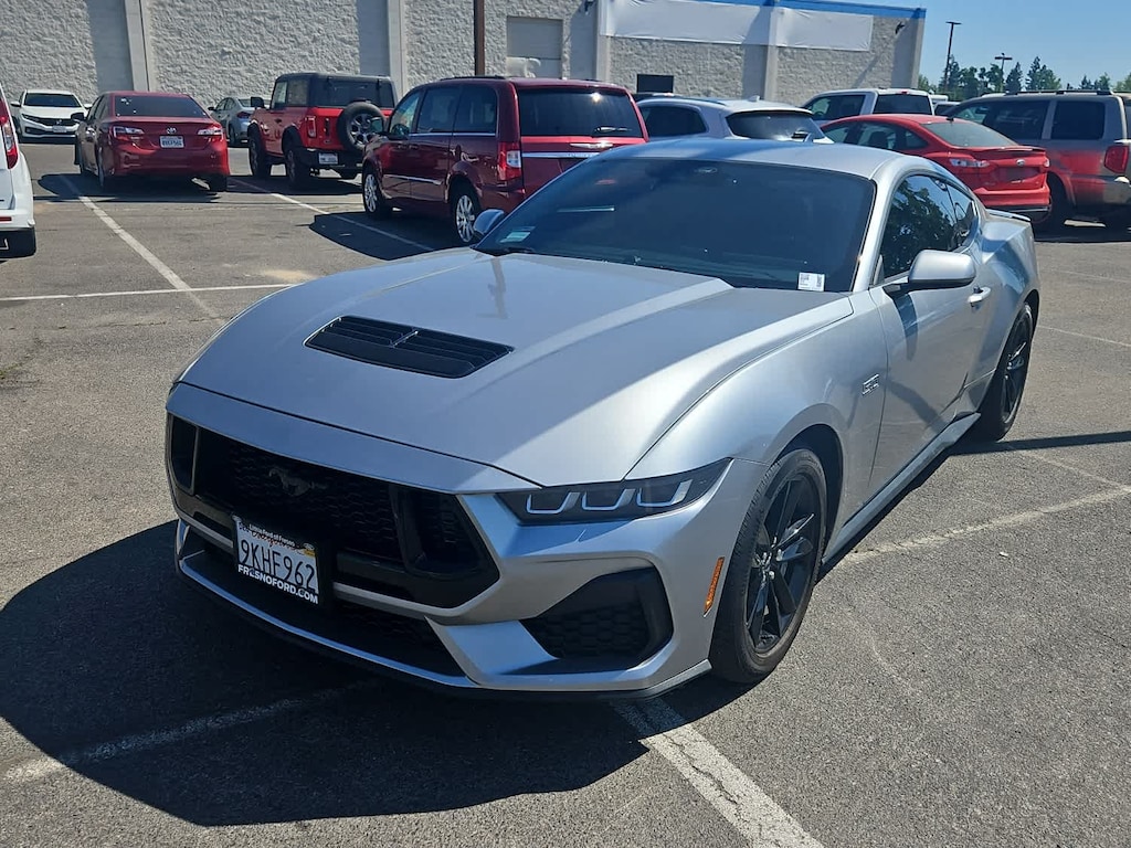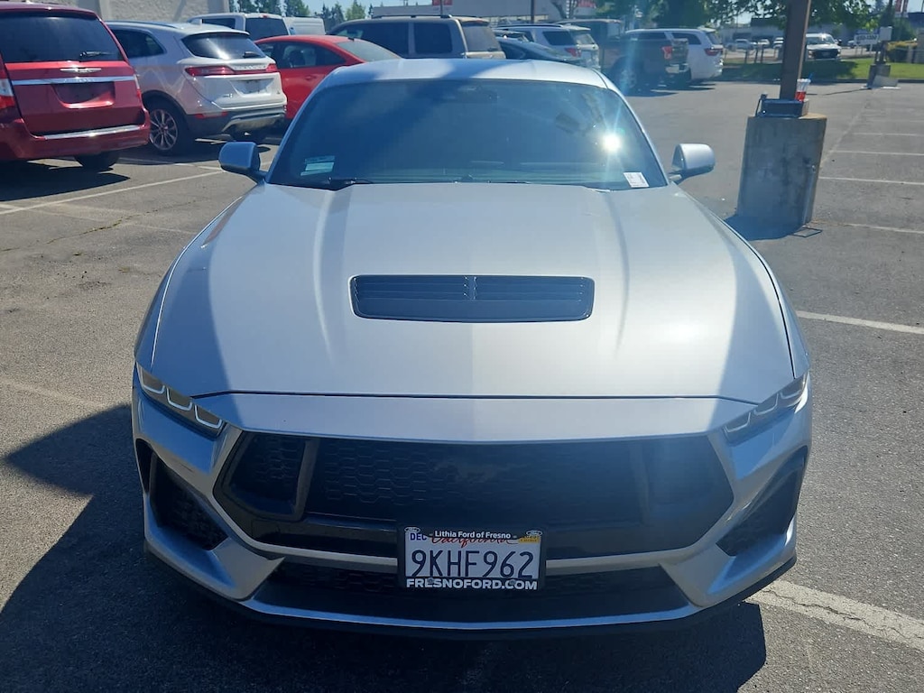 Lithia Ford and Lincoln of Fresno is pleased to offer this Iconic Silver Metallic 2024 Ford Mustang GT for purchase, this vehicle is well equipped with many features including: Equipment Group 300A Standard Package, 3.15 Limited-Slip Rear-Axle, Active Valve Performance Exhaust, 4-Wheel Disc Brakes, 6 Speakers, ABS brakes, Air Conditioning, Alloy wheels, AM/FM radio, AM/FM Stereo, Auto High-beam Headlights, Automatic temperature control, Brake assist, Bumpers: body-color, Cloth Bucket Seats, Compass, Delay-off headlights, Driver door bin, Driver vanity mirror, Dual front impact airbags, Dual front side impact airbags, Electronic Stability Control, Emergency communication system: 911 Assist, Exterior Parking Camera Rear, Four wheel independent suspension, Front anti-roll bar, Front Bucket Seats, Front Center Armrest, Front reading lights, Fully automatic headlights, Illuminated entry, Knee airbag, Leather Shift Knob, Leather steering wheel, Low tire pressure warning, Occupant sensing airbag, Outside temperature display, Overhead airbag, Overhead console, Panic alarm, Passenger door bin, Passenger vanity mirror, Power door mirrors, Power steering, Power windows, Radio data system, Rain sensing wipers, Rear anti-roll bar, Rear Parking Sensors, Rear window defroster, Remote keyless entry, Speed control, Speed-sensing steering, Speed-Sensitive Wipers, Split folding rear seat, Spoiler, Sport steering wheel, Steering wheel mounted audio controls, SYNC 4.0 QNX, Tachometer, Telescoping steering wheel, Tilt steering wheel, Traction control, Trip computer, Variably intermittent wipers, Voltmeter, and Wheels: 18 x 8.5 Ebony Black Painted Aluminum. RWD 5.0L V8 Ti-VCT 10-Speed Automatic GT
