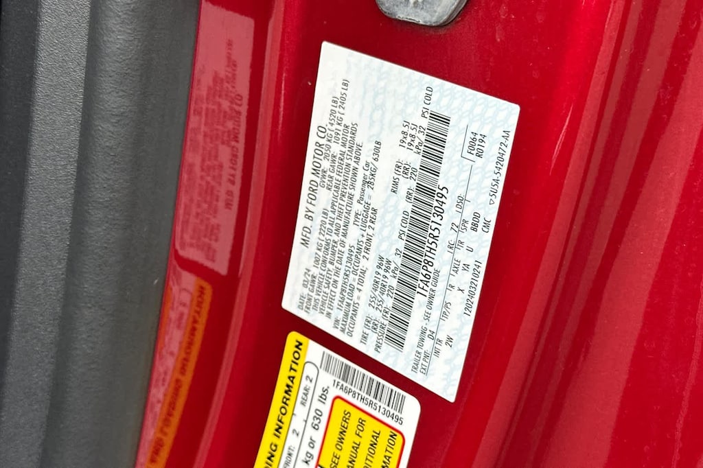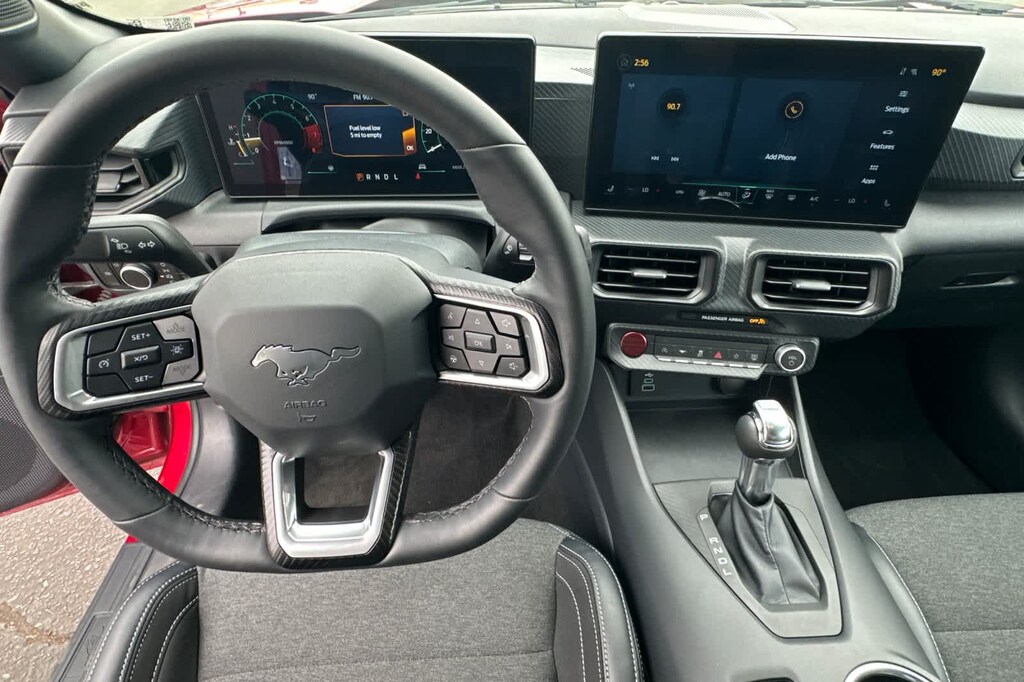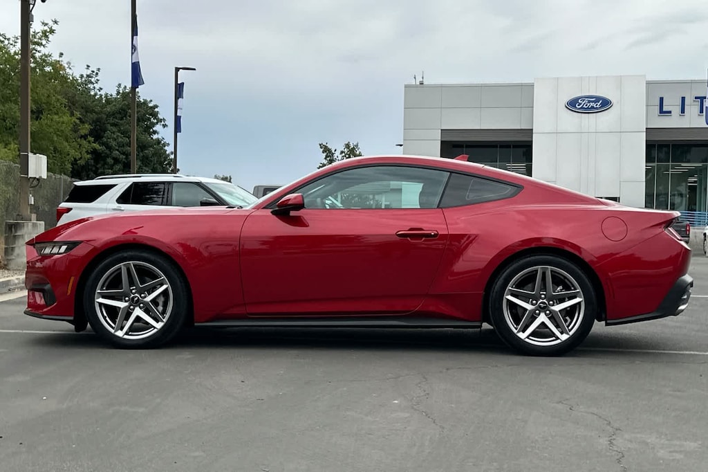 Lithia Ford and Lincoln of Fresno is pleased to offer this Rapid Red Metallic Tinted Clearcoat 2024 Ford Mustang EcoBoost for purchase, this vehicle is well equipped with many features including: Equipment Group 101A High Package (9-Speaker Stereo System, Cloth/Vinyl Heated Bucket Seats, Dual-Zone Electronic Automatic Temperature Control, and SiriusXM w/360L & HD Radio), 4-Wheel Disc Brakes, 6 Speakers, ABS brakes, Air Conditioning, Alloy wheels, AM/FM radio, AM/FM Stereo, Auto High-beam Headlights, Automatic temperature control, Brake assist, Bumpers: body-color, Cloth Bucket Seats, Compass, Delay-off headlights, Driver door bin, Driver vanity mirror, Dual front impact airbags, Dual front side impact airbags, Electronic Stability Control, Emergency communication system: 911 Assist, Exterior Parking Camera Rear, Four wheel independent suspension, Front anti-roll bar, Front Bucket Seats, Front Center Armrest, Front reading lights, Fully automatic headlights, Illuminated entry, Knee airbag, Leather Shift Knob, Low tire pressure warning, Occupant sensing airbag, Outside temperature display, Overhead airbag, Overhead console, Panic alarm, Passenger door bin, Passenger vanity mirror, Power door mirrors, Power steering, Power windows, Radio data system, Rain sensing wipers, Rear anti-roll bar, Rear Parking Sensors, Rear window defroster, Remote keyless entry, Speed control, Speed-sensing steering, Speed-Sensitive Wipers, Split folding rear seat, Sport steering wheel, Steering wheel mounted audio controls, SYNC 4.0 QNX, Tachometer, Telescoping steering wheel, Tilt steering wheel, Traction control, Trip computer, Variably intermittent wipers, Voltmeter, Wheels: 18 x 8 Machined-Face Aluminum, and Wheels: 19 x 8.5 Premier Polished Aluminum. RWD EcoBoost 2.3L I4 GTDi DOHC Turbocharged VCT 10-Speed Automatic EcoBoost