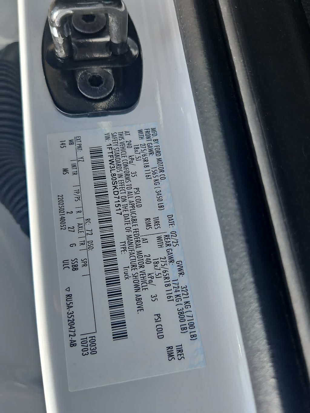 Lithia Ford and Lincoln of Fresno is pleased to offer this Oxford White 2025 Ford F-150 XLT for purchase, this vehicle is well equipped with many features including: Equipment Group 301A Standard (6 Angular Bright Anodized Step Bar, Black Painted Grille w/Chrome Center Bar, Chrome Door & Tailgate Handles, Chrome Single-Tip Exhaust, Cloth 40/20/40 Front Seat w/Console, Dual-Zone Electronic Automatic Temperature Control, and Wrapped Steering Wheel), GVWR: 7,100 lbs Payload Package, Ford Certified, 4WD, 3.31 Axle Ratio, Wheels: 18 Chrome-Like PVD, 4-Wheel Disc Brakes, 6 Speakers, ABS brakes, Air Conditioning, Alloy wheels, AM/FM radio: SiriusXM with 360L, Auto High-beam Headlights, Brake assist, Bumpers: chrome, Cloth 40/20/40 Front Seat, Compass, Delay-off headlights, Driver door bin, Driver vanity mirror, Dual front impact airbags, Dual front side impact airbags, Electronic Stability Control, Emergency communication system: SYNC 4 911 Assist, Front anti-roll bar, Front Center Armrest, Front fog lights, Front License Plate Bracket, Front reading lights, Front wheel independent suspension, Fully automatic headlights, Heated door mirrors, Illuminated entry, Internet access capable: FordPass Connect 5G, Low tire pressure warning, Occupant sensing airbag, Outside temperature display, Overhead airbag, Overhead console, Panic alarm, Passenger door bin, Passenger vanity mirror, Power door mirrors, Power steering, Power windows, Radio data system, Radio: AM/FM Stereo w/SiriusXM 360L, Rear Parking Sensors, Rear reading lights, Rear step bumper, Rear window defroster, Remote keyless entry, Security system, Speed control, Split folding rear seat, Steering wheel mounted audio controls, SYNC 4 w/Enhanced Voice Recognition, Tachometer, Telescoping steering wheel, Tilt steering wheel, Traction control, Trip computer, Variably intermittent wipers, and Voltmeter. 4WD 3.5L V6 EcoBoost 10-Speed Automatic XLT