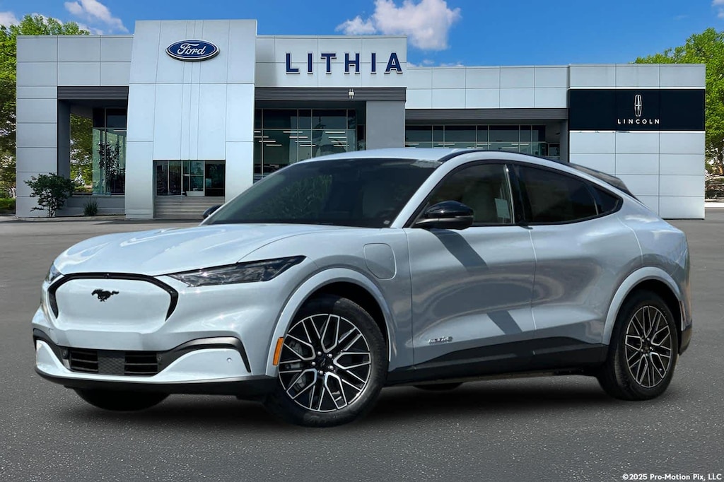 Lithia Ford and Lincoln of Fresno is pleased to offer this Glacier Gray Metallic TriCoat 2025 Ford Mustang Mach-E Premium for purchase, this vehicle is well equipped with many features including: Equipment Group 300A Standard Package, Wheels: 19 Bright Machined-Face Aluminum, 10 Speakers, 4-Wheel Disc Brakes, ABS brakes, Air Conditioning, Alloy wheels, AM/FM radio: SiriusXM with 360L, Apple CarPlay/Android Auto, Auto High-beam Headlights, Auto-dimming Rear-View mirror, Automatic temperature control, Brake assist, Bumpers: body-color, Compass, Delay-off headlights, Driver door bin, Driver vanity mirror, Dual front impact airbags, Dual front side impact airbags, Electronic Stability Control, Emergency communication system: 911 Assist, Exterior Parking Camera Rear, Four wheel independent suspension, Front anti-roll bar, Front Bucket Seats, Front Center Armrest, Front dual zone A/C, Front License Plate Bracket, Front reading lights, Fully automatic headlights, Garage door transmitter, Heated door mirrors, Heated front seats, Heated steering wheel, Heated/Ventilated Perforated ActiveX Bucket Seats, Illuminated entry, Knee airbag, Low tire pressure warning, Memory seat, Mobile Power Cord (120V/240V), Navigation system: Connected Navigation, Occupant sensing airbag, Outside temperature display, Overhead airbag, Overhead console, Panic alarm, Passenger door bin, Passenger vanity mirror, Power door mirrors, Power driver seat, Power Liftgate, Power passenger seat, Power steering, Power windows, Radio data system, Radio: B&O Sound System by Bang & Olufsen, Rain sensing wipers, Rear anti-roll bar, Rear seat center armrest, Rear side impact airbag, Rear window defroster, Rear window wiper, Remote keyless entry, Security system, SiriusXM w/360L, Speed control, Speed-sensing steering, Speed-Sensitive Wipers, Split folding rear seat, Spoiler, Steering wheel mounted audio controls, SYNC 4A w/Enhanced Voice Recognition, Telescoping steering wheel, Tilt steering wheel, Traction control, Trip computer, Turn signal indicator mirrors, Variably intermittent wipers, and Ventilated front seats. RWD Electric Motor Single-Speed Automatic Premium