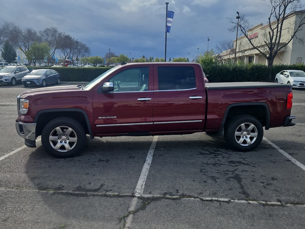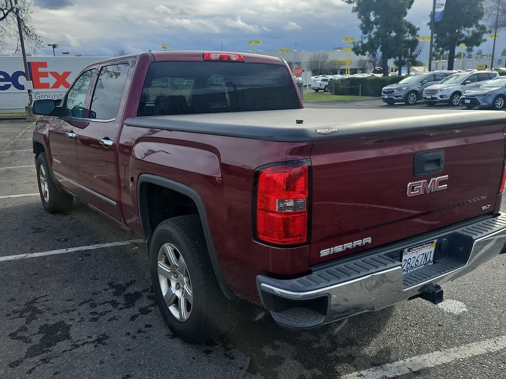 Lithia Ford and Lincoln of Fresno is pleased to offer this Sonoma Red Metallic 2014 GMC Sierra 1500 SLT for purchase, this vehicle is well equipped with many features including: Preferred Equipment Group 4SA (110-Volt AC Power Outlet, 150 Amp Alternator, 4.2 Diagonal Color Display Driver Info Center, Auto-Dimming Inside Rear-View Mirror, Auxiliary External Transmission Oil Cooler, Chrome Bodyside Moldings, Chrome Door Handles, Chrome Grille Surround, Color-Keyed Carpeting w/Rubberized Vinyl Floor Mats, Deep-Tinted Glass, Driver & Front Passenger Illuminated Vanity Mirrors, Dual-Zone Automatic Climate Control, Electric Rear-Window Defogger, EZ Lift & Lower Tailgate, Front Halogen Fog Lamps, Heavy-Duty Rear Locking Differential, Leather Wrapped Steering Wheel w/Cruise Controls, LED Cargo Box Lighting, Manual Tilt Wheel Steering Column, OnStar 6 Months Directions & Connections Plan, Power Adjustable Pedals, Power Folding & Adjustable Heated Outside Mirrors, Power Windows w/Driver Express Up, Rear 60/40 Folding Bench Seat (Folds Up), Rear Vision Camera w/Dynamic Guide Lines, Rear Wheelhouse Liners, Remote Keyless Entry, Remote Vehicle Starter System, Single Slot CD/MP3 Player, Steering Wheel Audio Controls, Theft Deterrent System (Unauthorized Entry), and Universal Home Remote), Trailering Equipment, 6-Speed Automatic Electronic with Overdrive, Jet Black/Dark Ash Leather, 10-Way Power Drivers Seat Adjuster, 3.08 Rear Axle Ratio, 4-Wheel Disc Brakes, 40/20/40 Front Split Bench Seat, 6 Speakers, ABS brakes, Adjustable pedals, Air Conditioning, Alloy wheels, AM/FM radio: SiriusXM, Auto-dimming door mirrors, Auto-dimming Rear-View mirror, Automatic temperature control, Bodyside moldings, Brake assist, Bumpers: chrome, CD player, Compass, Delay-off headlights, Driver door bin, Driver vanity mirror, Dual front impact airbags, Dual front side impact airbags, Electronic Stability Control, Emergency communication system: OnStar Directions & Connections, Exterior Parking Camera Rear, Front anti-roll bar, Front Center Armrest w/Storage, Front dual zone A/C, Front fog lights, Front reading lights, Front wheel independent suspension, Fully automatic headlights, Garage door transmitter: HomeLink, Heated door mirrors, Heated Driver & Front Passenger Seats, Heated front seats, Heavy Duty Suspension, Illuminated entry, Leather Appointed Seat Trim, Low tire pressure warning, Memory seat, Occupant sensing airbag, Outside temperature display, Overhead airbag, Overhead console, Panic alarm, Passenger door bin, Passenger vanity mirror, Power door mirrors, Power driver seat, Power passenger seat, Power steering, Power windows, Premium audio system: IntelliLink, Radio data system, Radio: AM/FM Stereo w/8 Diagonal Color Touch Screen, Rear reading lights, Rear seat center armrest, Rear step bumper, Rear window defroster, Remote keyless entry, Security system, SiriusXM Satellite & HD Radio, Speed control, Speed-sensing steering, Split folding rear seat, Steering wheel mounted audio controls, Tachometer, Telescoping steering wheel, Tilt steering wheel, Traction control, Trip computer, Turn signal indicator mirrors, Variably intermittent wipers, Voltmeter, and Wheels: 18 x 8.5 Polished Aluminum. RWD EcoTec3 5.3L V8 Flex Fuel 6-Speed Automatic Electronic with Overdrive SLT