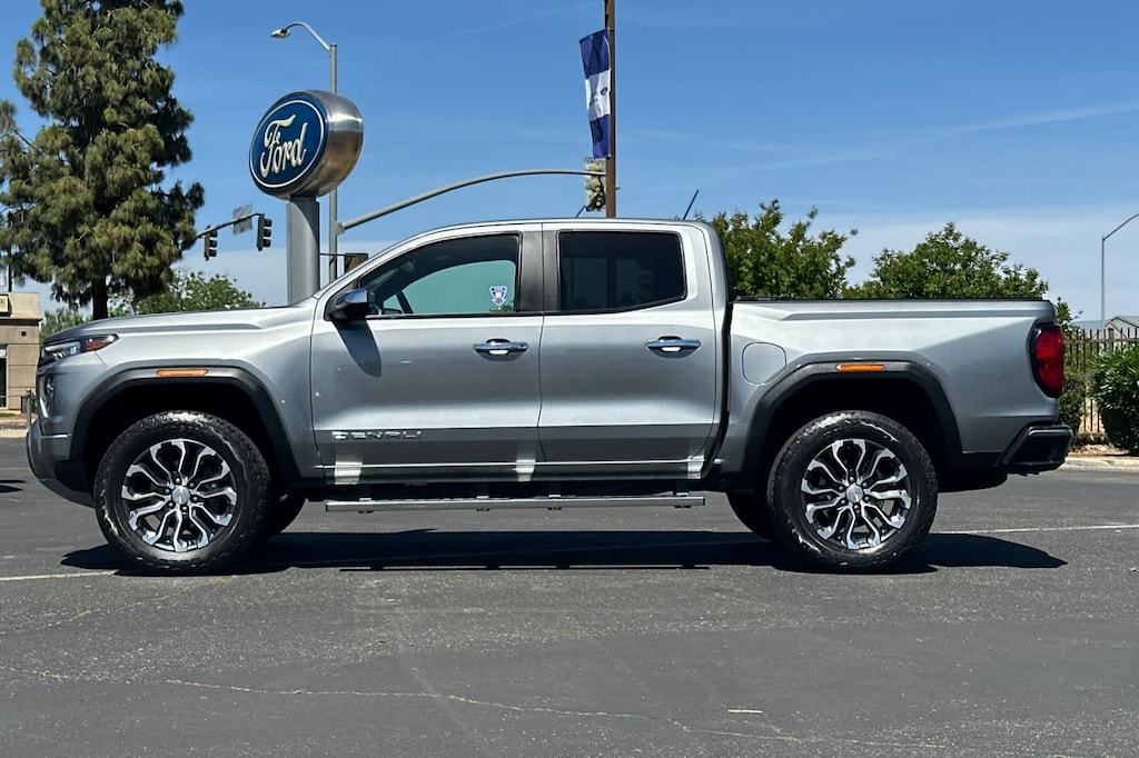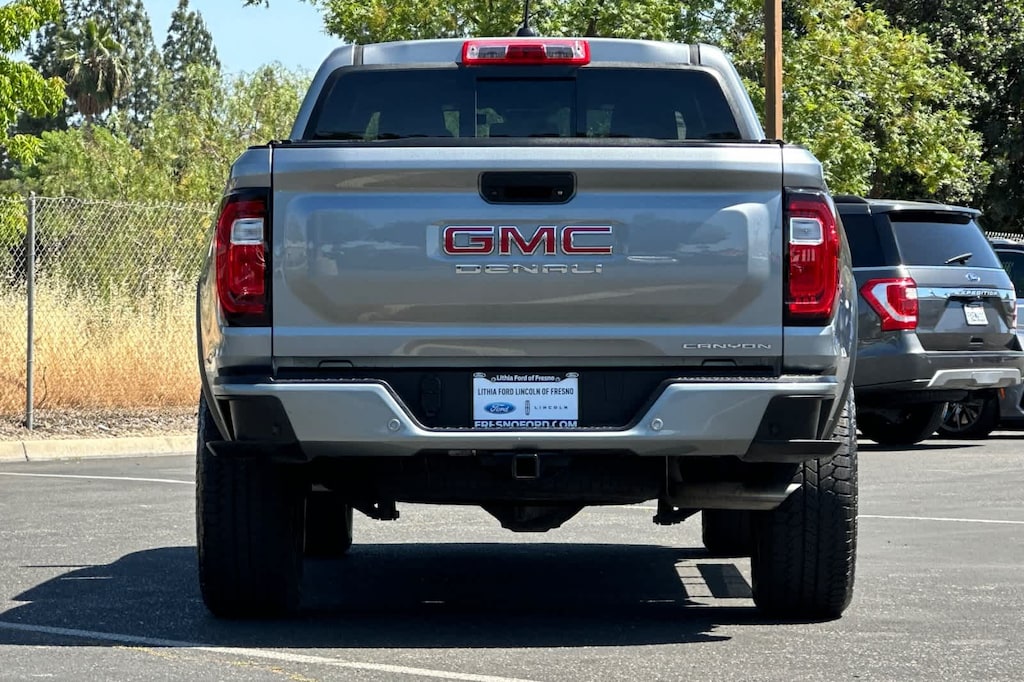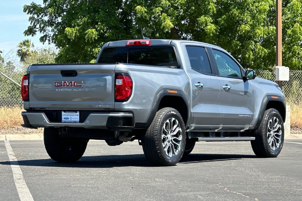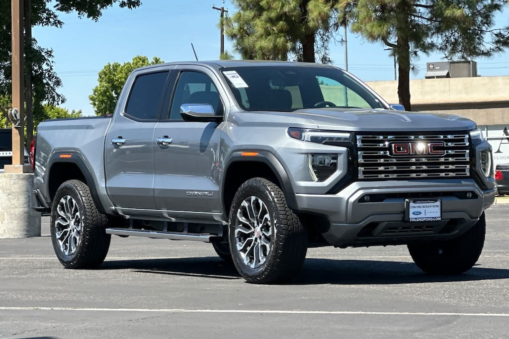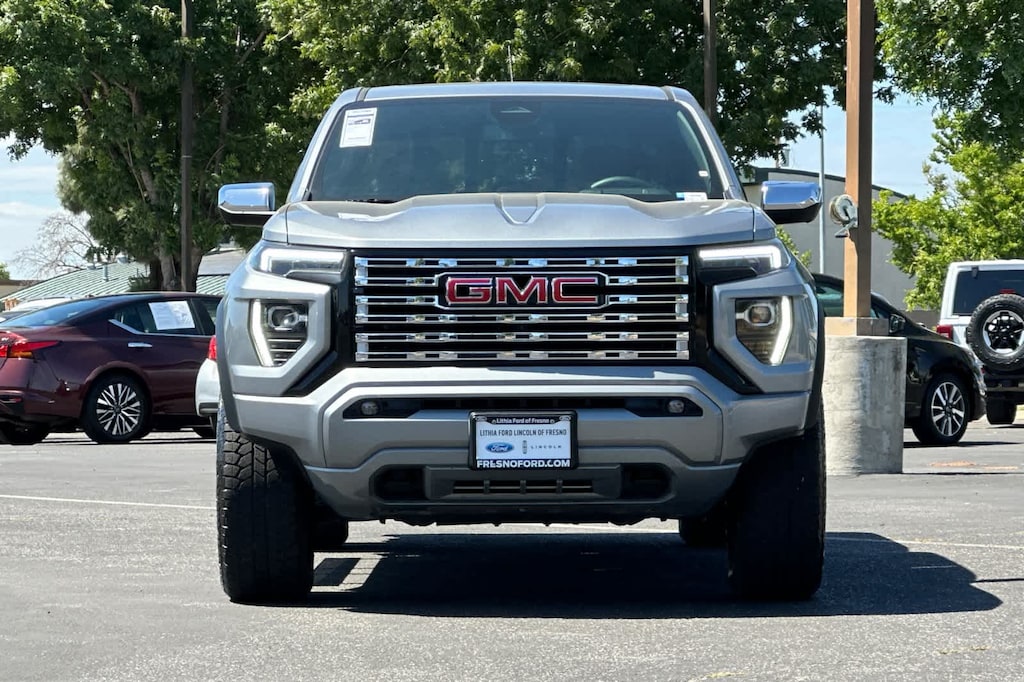 Lithia Ford and Lincoln of Fresno is pleased to offer this Sterling Metallic 2023 GMC Canyon Denali for purchase, this vehicle is well equipped with many features including: Preferred Equipment Group 5SB (120-Volt Bed Mounted Power Outlet, 2 Rear USB Ports in Center Console (Charge-Only), 5 Rectangular Chrome Assist Steps, 6-Way Power Passenger Seat Adjuster, 8-Way Power Driver Seat Adjuster, Adaptive Cruise Control, Automatic Emergency Braking, Automatic Locking Rear Differential, Blind Zone Steering Assist, Canyon Pro Safety, Driver & Front Passenger Illuminated Visors, Driver & Front Passenger Ventilated Seats, Driver Memory, Driver Seatback Map Pocket, Dual-Zone Automatic Air Conditioning, EZ-Lift & Lower Tailgate, Following Distance Indicator, Forward Collision Alert, Front LED Fog Lamps, Front Pedestrian & Bicyclist Braking, HD Surround Vision, Heated Driver & Front Passenger Seats, Heated Power-Adjustable Outside Mirrors, Heated Steering Wheel, Inside Rear-View Auto-Dimming Mirror, IntelliBeam Automatic High Beam On/Off, Interior Overhead Courtesy Light w/Dual Reading Lamp, Lane Keep Assist w/Lane Departure Warning, Manual Rear-Sliding Window, Multicolor 6.3 Diagonal Head-Up Display, MultiStow Tailgate, Power Driver Lumbar Control Seat Adjuster, Power Passenger Lumbar Control Seat Adjuster, Premium 7-Speaker Bose Sound System, Rear Center Fold-Down Armrest w/2 Cupholders, Rear Cross Traffic Braking, Rear of Console 120-Volt Power Outlet, Rear Pedestrian Alert, Rear-Window Electric Defogger, Remote Vehicle Starter System, Safety Alert Seat, Spray-On Bedliner, Tailgate Keyed Cylinder Lock, Tilt & Telescopic Manual Steering Column, Ultrasonic Rear Park Assist, and Wireless Charging), ProGrade Trailering System (Trailering App System), Trailering Package (Integrated Trailer Brake Controller), 4WD, 220 Amps Alternator, 2 1st Row USB Charge/Data Ports, 3.42 Rear Axle Ratio, 4-Wheel Disc Brakes, 7 Speakers, ABS brakes, Air Conditioning, Alloy wheels, AM/FM radio: SiriusXM, Apple CarPlay/Android Auto, Auto High-beam Headlights, Auto-dimming Rear-View mirror, Automatic Stop/Start, Automatic temperature control, Brake assist, Bumpers: body-color, Compass, Delay-off headlights, Driver door bin, Driver Mode Selector, Driver vanity mirror, Dual front impact airbags, Dual front side impact airbags, Electronic Stability Control, Front anti-roll bar, Front Bucket Seats, Front Center Armrest, Front dual zone A/C, Front fog lights, Front License Plate Kit, Front Passenger Seatback Map Pocket, Front reading lights, Front wheel independent suspension, Genuine wood dashboard insert, Genuine wood door panel insert, Heads-Up Display, Heated door mirrors, Heated front seats, Heated steering wheel, Illuminated entry, Low tire pressure warning, Memory seat, Navigation System, Occupant sensing airbag, Outside temperature display, Overhead airbag, Overhead console, Panic alarm, Passenger door bin, Passenger vanity mirror, Perforated Leather-Appointed Seat Trim, Power door mirrors, Power driver seat, Power Inner Sliding Glass Sunroof w/Manual Shade, Power passenger seat, Power steering, Power windows, Radio data system, Radio: 11.3 Diagonal Premium GMC Infotainment Sys, Rear reading lights, Rear seat center armrest, Rear step bumper, Rear window defroster, Remote keyless entry, Security system, SiriusXM w/360L, Speed control, Speed-sensing steering, Split folding rear seat, Steering wheel mounted audio controls, Stop/Start System Disable Button Engine Control, Tachometer, Telescoping steering wheel, Tilt steering wheel, Traction control, Trip computer, Variably intermittent wipers, Ventilated front seats, Wheels: 20 x 9 Diamond Cut Dark Gray Aluminum, and Wireless Apple CarPlay/Wireless Android Auto. 4WD 2.7L Turbo 8-Speed Automatic Denali