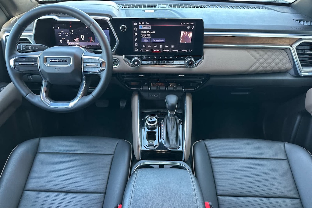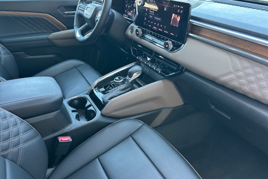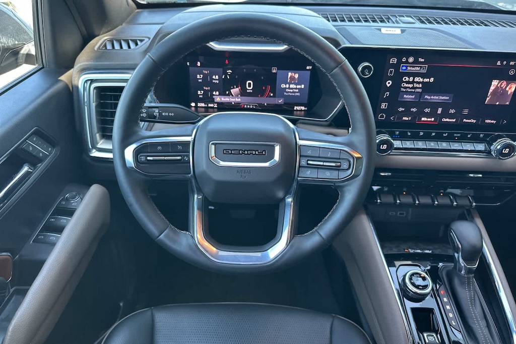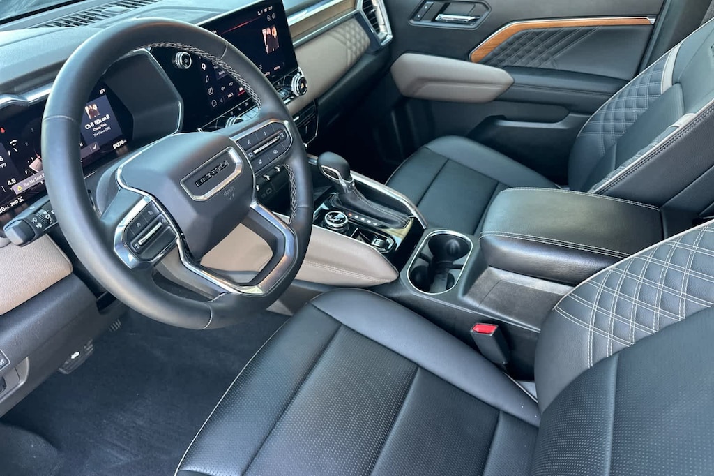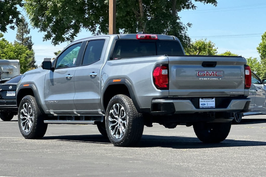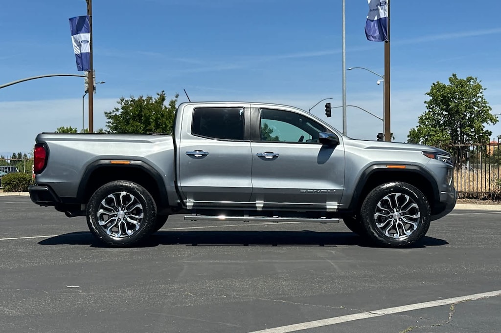 Lithia Ford and Lincoln of Fresno is pleased to offer this Sterling Metallic 2023 GMC Canyon Denali for purchase, this vehicle is well equipped with many features including: Preferred Equipment Group 5SB (120-Volt Bed Mounted Power Outlet, 2 Rear USB Ports in Center Console (Charge-Only), 5 Rectangular Chrome Assist Steps, 6-Way Power Passenger Seat Adjuster, 8-Way Power Driver Seat Adjuster, Adaptive Cruise Control, Automatic Emergency Braking, Automatic Locking Rear Differential, Blind Zone Steering Assist, Canyon Pro Safety, Driver & Front Passenger Illuminated Visors, Driver & Front Passenger Ventilated Seats, Driver Memory, Driver Seatback Map Pocket, Dual-Zone Automatic Air Conditioning, EZ-Lift & Lower Tailgate, Following Distance Indicator, Forward Collision Alert, Front LED Fog Lamps, Front Pedestrian & Bicyclist Braking, HD Surround Vision, Heated Driver & Front Passenger Seats, Heated Power-Adjustable Outside Mirrors, Heated Steering Wheel, Inside Rear-View Auto-Dimming Mirror, IntelliBeam Automatic High Beam On/Off, Interior Overhead Courtesy Light w/Dual Reading Lamp, Lane Keep Assist w/Lane Departure Warning, Manual Rear-Sliding Window, Multicolor 6.3 Diagonal Head-Up Display, MultiStow Tailgate, Power Driver Lumbar Control Seat Adjuster, Power Passenger Lumbar Control Seat Adjuster, Premium 7-Speaker Bose Sound System, Rear Center Fold-Down Armrest w/2 Cupholders, Rear Cross Traffic Braking, Rear of Console 120-Volt Power Outlet, Rear Pedestrian Alert, Rear-Window Electric Defogger, Remote Vehicle Starter System, Safety Alert Seat, Spray-On Bedliner, Tailgate Keyed Cylinder Lock, Tilt & Telescopic Manual Steering Column, Ultrasonic Rear Park Assist, and Wireless Charging), ProGrade Trailering System (Trailering App System), Trailering Package (Integrated Trailer Brake Controller), 4WD, 220 Amps Alternator, 2 1st Row USB Charge/Data Ports, 3.42 Rear Axle Ratio, 4-Wheel Disc Brakes, 7 Speakers, ABS brakes, Air Conditioning, Alloy wheels, AM/FM radio: SiriusXM, Apple CarPlay/Android Auto, Auto High-beam Headlights, Auto-dimming Rear-View mirror, Automatic Stop/Start, Automatic temperature control, Brake assist, Bumpers: body-color, Compass, Delay-off headlights, Driver door bin, Driver Mode Selector, Driver vanity mirror, Dual front impact airbags, Dual front side impact airbags, Electronic Stability Control, Front anti-roll bar, Front Bucket Seats, Front Center Armrest, Front dual zone A/C, Front fog lights, Front License Plate Kit, Front Passenger Seatback Map Pocket, Front reading lights, Front wheel independent suspension, Genuine wood dashboard insert, Genuine wood door panel insert, Heads-Up Display, Heated door mirrors, Heated front seats, Heated steering wheel, Illuminated entry, Low tire pressure warning, Memory seat, Navigation System, Occupant sensing airbag, Outside temperature display, Overhead airbag, Overhead console, Panic alarm, Passenger door bin, Passenger vanity mirror, Perforated Leather-Appointed Seat Trim, Power door mirrors, Power driver seat, Power Inner Sliding Glass Sunroof w/Manual Shade, Power passenger seat, Power steering, Power windows, Radio data system, Radio: 11.3 Diagonal Premium GMC Infotainment Sys, Rear reading lights, Rear seat center armrest, Rear step bumper, Rear window defroster, Remote keyless entry, Security system, SiriusXM w/360L, Speed control, Speed-sensing steering, Split folding rear seat, Steering wheel mounted audio controls, Stop/Start System Disable Button Engine Control, Tachometer, Telescoping steering wheel, Tilt steering wheel, Traction control, Trip computer, Variably intermittent wipers, Ventilated front seats, Wheels: 20 x 9 Diamond Cut Dark Gray Aluminum, and Wireless Apple CarPlay/Wireless Android Auto. 4WD 2.7L Turbo 8-Speed Automatic Denali