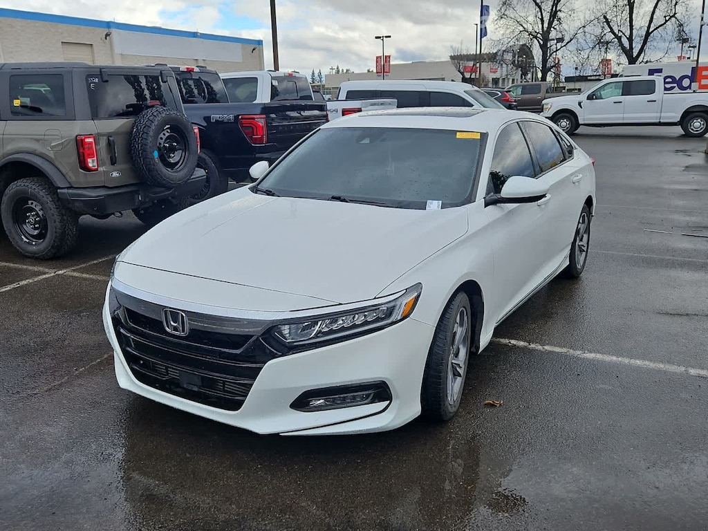 Lithia Ford and Lincoln of Fresno is pleased to offer this Platinum White Pearl 2020 Honda Accord EX for purchase, this vehicle is well equipped with many features including: Black w/Cloth Seat Trim, ABS brakes, Active Cruise Control, Alloy wheels, Electronic Stability Control, Front dual zone A/C, Heated door mirrors, Heated Front Bucket Seats, Heated front seats, Illuminated entry, Low tire pressure warning, Power moonroof, Remote keyless entry, Traction control, 17 Machine-Finished Alloy Wheels, 4-Wheel Disc Brakes, 8 Speakers, Adaptive Cruise Control: Adaptive Cruise Control (ACC) with Low-Speed Follow, Air Conditioning, AM/FM radio: SiriusXM, Apple CarPlay/Android Auto, Auto High-beam Headlights, Automatic temperature control, Blind Spot Information (BSI) System warning, Brake assist, Bumpers: body-color, Cloth Seat Trim, Delay-off headlights, Driver door bin, Driver vanity mirror, Dual front impact airbags, Dual front side impact airbags, Emergency communication system: HondaLink, Exterior Parking Camera Rear, Forward collision: Collision Mitigation Braking System (CMBS) + FCW mitigation, Four wheel independent suspension, Front anti-roll bar, Front Bucket Seats, Front Center Armrest, Front fog lights, Front reading lights, Fully automatic headlights, Knee airbag, Lane Departure Warning System, Occupant sensing airbag, Outside temperature display, Overhead airbag, Overhead console, Panic alarm, Passenger door bin, Passenger vanity mirror, Power door mirrors, Power driver seat, Power steering, Power windows, Radio data system, Radio: 180-Watt AM/FM/HD/SiriusXM Audio System, Rear anti-roll bar, Rear seat center armrest, Rear window defroster, Security system, Speed control, Speed-sensing steering, Speed-Sensitive Wipers, Split folding rear seat, Steering wheel mounted audio controls, Tachometer, Telescoping steering wheel, Tilt steering wheel, Trip computer, and Variably intermittent wipers. FWD 1.5T I4 DOHC 16V Turbocharged VTEC CVT EX