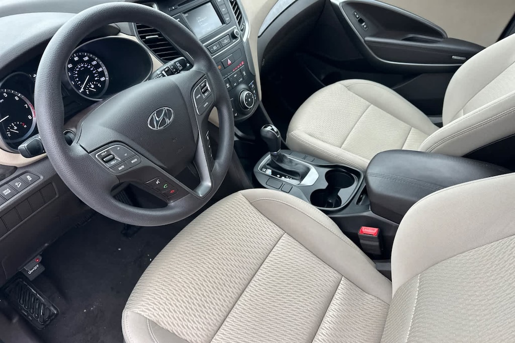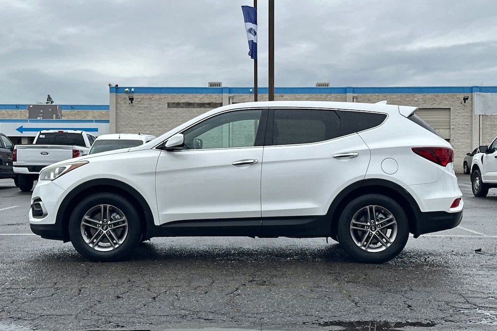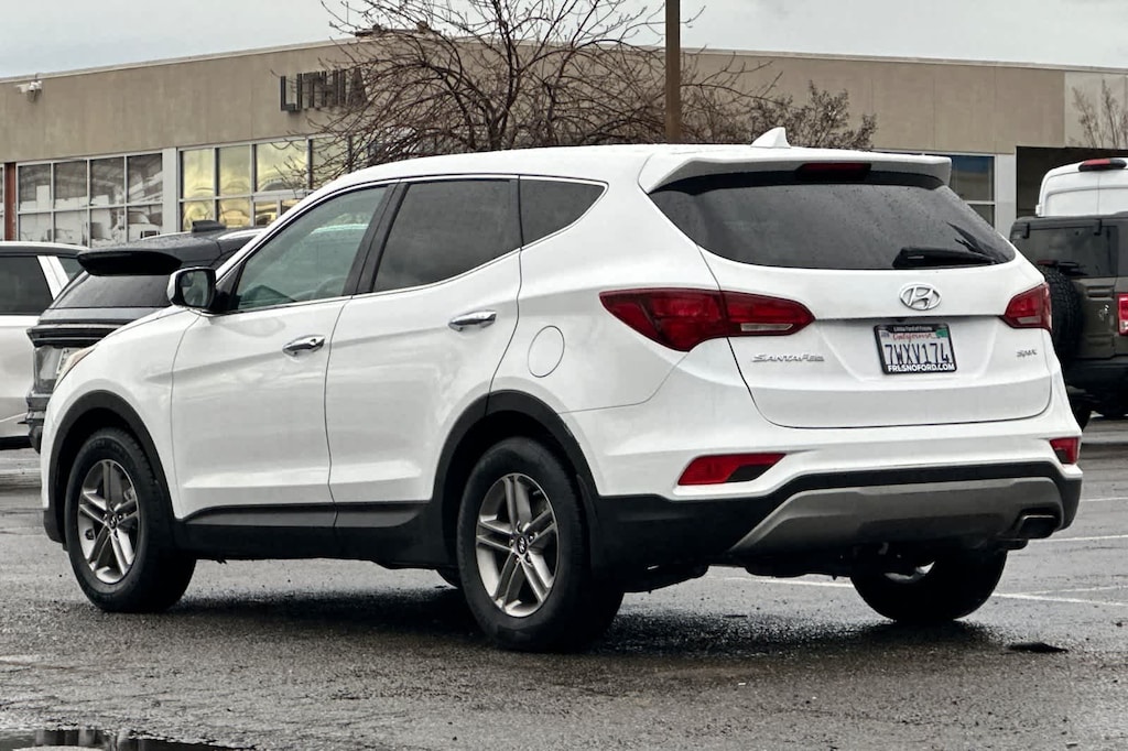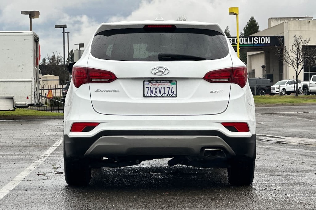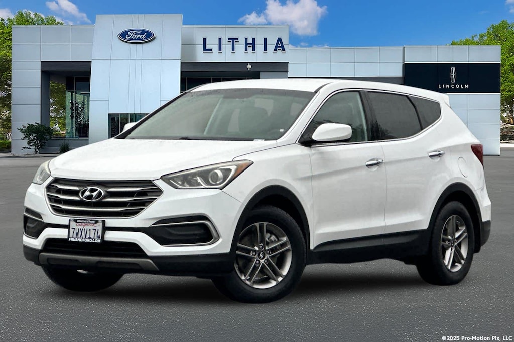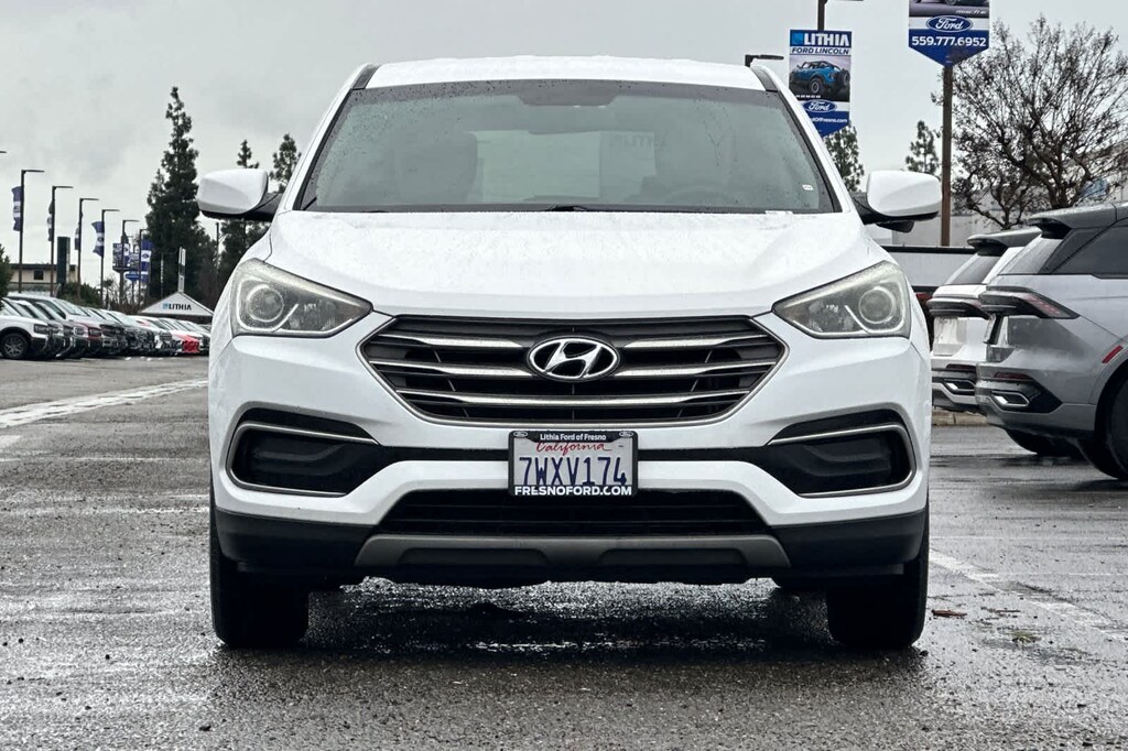 Lithia Ford and Lincoln of Fresno is pleased to offer this Frost White Pearl 2017 Hyundai Santa Fe Sport 2.4 Base for purchase, this vehicle is well equipped with many features including: Option Group 01, 17 x 7 Alloy Wheels, 4-Wheel Disc Brakes, 6 Speakers, ABS brakes, Air Conditioning, Alloy wheels, AM/FM radio: SiriusXM, Axle Ratio 3.51, Brake assist, Bumpers: body-color, Cargo Cover, Cargo Net, Cargo Tray, Carpeted Floor Mats, CD player, Delay-off headlights, Driver door bin, Driver vanity mirror, Dual front impact airbags, Dual front side impact airbags, Electronic Stability Control, Exterior Parking Camera Rear, First Aid Kit, Four wheel independent suspension, Front anti-roll bar, Front Bucket Seats, Front Center Armrest, Front reading lights, Fully automatic headlights, Heated door mirrors, Illuminated entry, Knee airbag, Low tire pressure warning, Mudguards, Multi-Adjustable Bucket Seats, Occupant sensing airbag, Outside temperature display, Overhead airbag, Overhead console, Panic alarm, Passenger door bin, Passenger vanity mirror, Power door mirrors, Power steering, Power windows, Radio: AM/FM/SiriusXM/CD/MP3 Audio System, Rear anti-roll bar, Rear seat center armrest, Rear window defroster, Rear window wiper, Remote keyless entry, Security system, Speed control, Speed-sensing steering, Split folding rear seat, Spoiler, Stain-Resistant Cloth Seating Surfaces, Steering wheel mounted audio controls, Tachometer, Telescoping steering wheel, Tilt steering wheel, Traction control, Trip computer, and Variably intermittent wipers. FWD 2.4L I4 DGI DOHC 16V 6-Speed Automatic with Shiftronic 2.4 Base