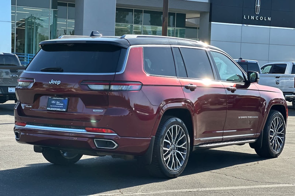 Lithia Ford and Lincoln of Fresno is pleased to offer this Velvet Red Pearlcoat 2021 Jeep Grand Cherokee L Summit for purchase, this vehicle is well equipped with many features including: Two Tone Paint Group, 10 Speakers, 3.45 Rear Axle Ratio, 3rd row seats: split-bench, 4-Wheel Disc Brakes, ABS brakes, Active Noise Control System, Adaptive suspension, Air Conditioning, Alloy wheels, AM/FM radio: SiriusXM w/360L, Anti-whiplash front head restraints, Apple CarPlay/Android Auto, Audio memory, Auto High-beam Headlights, Auto-dimming door mirrors, Auto-dimming Rear-View mirror, Auto-leveling suspension, Automatic temperature control, Brake assist, Bumpers: body-color, Compass, Delay-off headlights, Driver door bin, Driver vanity mirror, Dual front impact airbags, Dual front side impact airbags, Electronic Stability Control, Emergency communication system, Four wheel independent suspension, Front anti-roll bar, Front Bucket Seats, Front Center Armrest w/Storage, Front dual zone A/C, Front fog lights, Front reading lights, Fully automatic headlights, Garage door transmitter, Genuine wood dashboard insert, Genuine wood door panel insert, Heated door mirrors, Heated front seats, Heated rear seats, Heated steering wheel, Illuminated entry, Knee airbag, Leather steering wheel, Low tire pressure warning, Memory seat, Nappa Leather Seats, Navigation System, Normal Duty Suspension, Occupant sensing airbag, Outside temperature display, Overhead airbag, Overhead console, Panic alarm, Passenger door bin, Passenger vanity mirror, Power door mirrors, Power driver seat, Power Fold Seatbacks, Power Liftgate, Power moonroof: CommandView, Power passenger seat, Power steering, Power windows, Radio data system, Radio: Uconnect 5 Nav w/10.1 Display, Rain sensing wipers, Rear air conditioning, Rear anti-roll bar, Rear dual zone A/C, Rear reading lights, Rear seat center armrest, Rear window defroster, Rear window wiper, Reclining 3rd row seat, Remote keyless entry, Roof rack: rails only, Security system, Speed control, Speed-Sensitive Wipers, Split folding rear seat, Spoiler, Steering wheel memory, Steering wheel mounted audio controls, Tachometer, Telescoping steering wheel, Tilt steering wheel, Traction control, Trip computer, Turn signal indicator mirrors, Variably intermittent wipers, Ventilated front seats, Voltmeter, and Wheels: 20 x 8.5 Fully Polished Aluminum. 4WD HEMI 5.7L V8 Multi Displacement VVT 8-Speed Automatic Summit