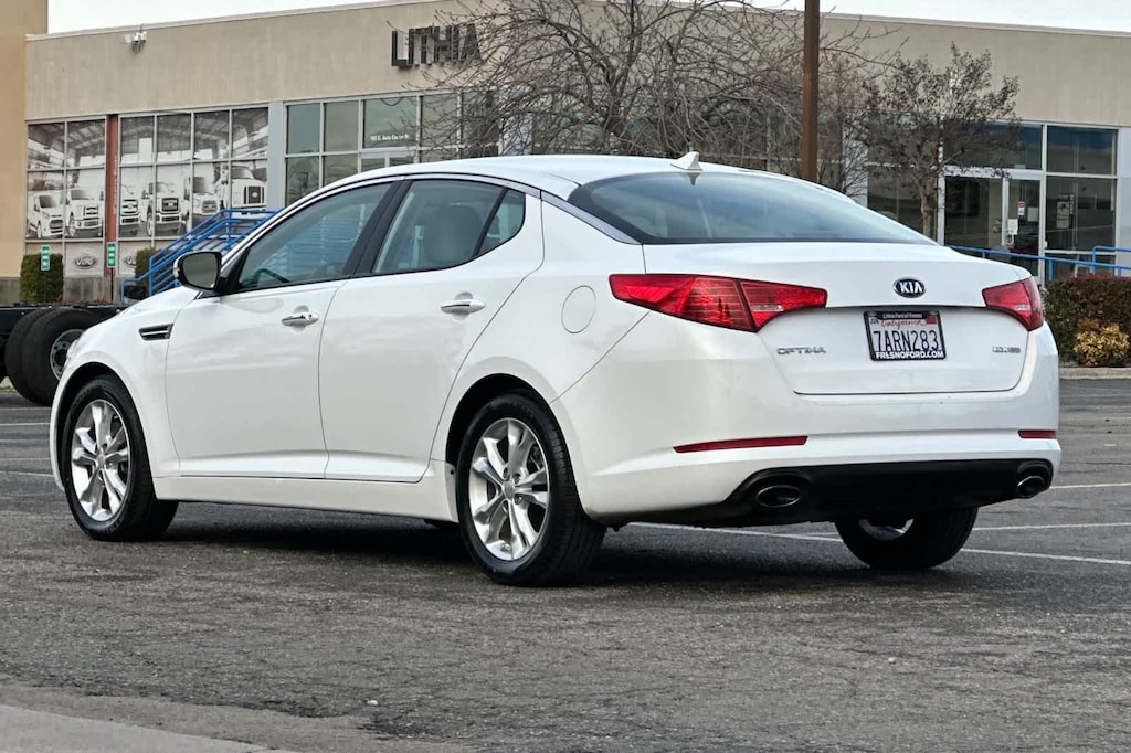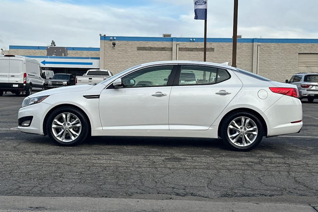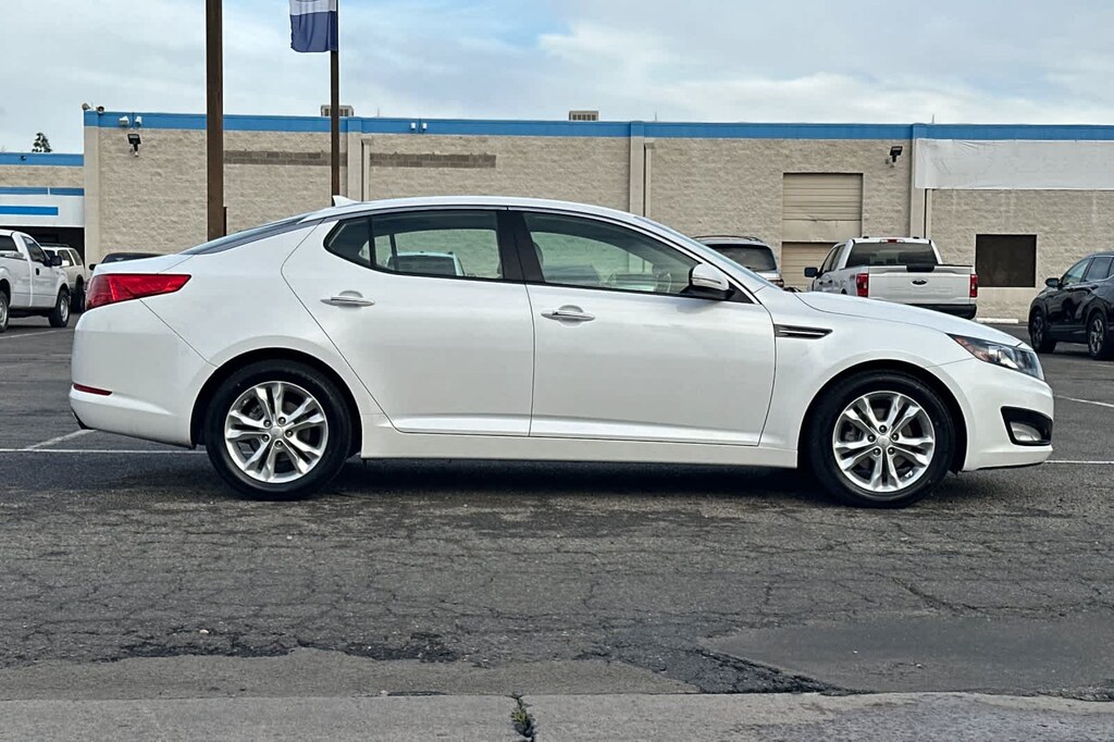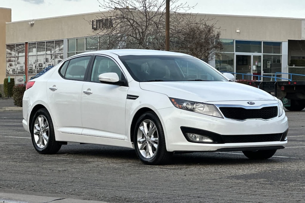 Lithia Ford and Lincoln of Fresno is pleased to offer this Snow White Pearl 2013 Kia Optima EX for purchase, this vehicle is well equipped with many features including: Beige w/Leather Seat Trim, Radio: AM/FM/CD/MP3 Capacity w/Satellite Audio, 17 x 6.5J Alloy Painted Silver Wheels, 4-Wheel Disc Brakes, 6 Speakers, ABS brakes, Air Conditioning, Alloy wheels, AM/FM radio: SiriusXM, Auto-dimming Rear-View mirror, Automatic temperature control, Brake assist, Bumpers: body-color, CD player, Compass, Delay-off headlights, Driver door bin, Driver vanity mirror, Dual front impact airbags, Dual front side impact airbags, Electronic Stability Control, Four wheel independent suspension, Front anti-roll bar, Front Bucket Seats, Front Center Armrest, Front dual zone A/C, Front fog lights, Front reading lights, Fully automatic headlights, Garage door transmitter: HomeLink, Heated door mirrors, Illuminated entry, Leather Seat Trim, Low tire pressure warning, Occupant sensing airbag, Outside temperature display, Overhead airbag, Overhead console, Panic alarm, Passenger door bin, Passenger vanity mirror, Power door mirrors, Power driver seat, Power steering, Power windows, Rear anti-roll bar, Rear reading lights, Rear seat center armrest, Rear window defroster, Remote keyless entry, Security system, Speed control, Speed-sensing steering, Split folding rear seat, Steering wheel mounted audio controls, Tachometer, Telescoping steering wheel, Tilt steering wheel, Traction control, Trip computer, Turn signal indicator mirrors, and Variably intermittent wipers. FWD 2.4L I4 DGI DOHC SULEV 6-Speed Automatic with Sportmatic EX