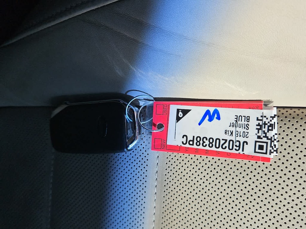 Lithia Ford and Lincoln of Fresno is pleased to offer this Micro Blue 2018 Kia Stinger GT2 for purchase, this vehicle is well equipped with many features including: Gray Interior Color Pack (Gray Leather Seat Trim), Kia Certified, Navigation System, 15 Speakers, 4-Wheel Disc Brakes, ABS brakes, Air Conditioning, Alloy wheels, AM/FM radio: SiriusXM, Anti-whiplash front head restraints, Apple CarPlay & Android Auto, Auto High-beam Headlights, Auto tilt-away steering wheel, Auto-dimming door mirrors, Auto-dimming Rear-View mirror, Automatic temperature control, Brake assist, Bumpers: body-color, Compass, Delay-off headlights, Driver door bin, Driver vanity mirror, Dual front impact airbags, Dual front side impact airbags, Electronic Stability Control, Emergency communication system: UVO eServices, Exterior Parking Camera Rear, Four wheel independent suspension, Front anti-roll bar, Front Bucket Seats, Front Center Armrest, Front dual zone A/C, Front reading lights, Fully automatic headlights, Garage door transmitter: HomeLink, harman/kardonî Speakers, Heads-Up Display, Heated & Ventilated Front Bucket Seats, Heated door mirrors, Heated front seats, Heated steering wheel, Illuminated entry, Knee airbag, Low tire pressure warning, Memory seat, Nappa Leather Seat Trim, Occupant sensing airbag, Outside temperature display, Overhead airbag, Overhead console, Panic alarm, Passenger door bin, Passenger vanity mirror, Power door mirrors, Power driver seat, Power Liftgate, Power moonroof, Power passenger seat, Power steering, Power windows, Radio: AM/FM/MP3/HD/SiriusXM harmon/kardon Audio, Rain sensing wipers, Rear air conditioning, Rear anti-roll bar, Rear reading lights, Rear seat center armrest, Rear window defroster, Remote keyless entry, Security system, Speed control, Speed-sensing steering, Speed-Sensitive Wipers, Split folding rear seat, Spoiler, Sport steering wheel, Steering wheel memory, Steering wheel mounted audio controls, Tachometer, Telescoping steering wheel, Tilt steering wheel, Traction control, Trip computer, Turn signal indicator mirrors, Variably intermittent wipers, Ventilated front seats, and Wheels: 19 x 8J Front & 19 x 8.5J Rear Alloy. AWD 3.3L V6 8-Speed Automatic GT2