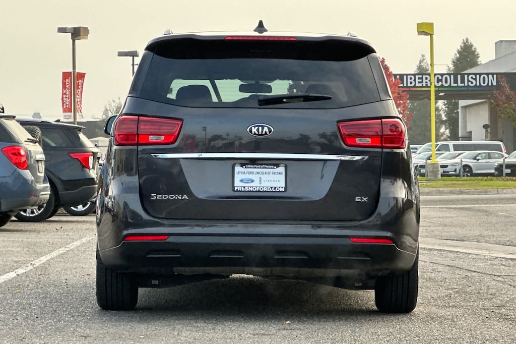 Lithia Ford and Lincoln of Fresno is pleased to offer this Pantera Metal 2021 Kia Sedona EX for purchase, this vehicle is well equipped with many features including: 2-Way Power Drivers Lumbar Support, 3.51 Axle Ratio, 3rd row seats: split-bench, 4-Wheel Disc Brakes, 6 Speakers, 8-Way Power Drivers Seat, ABS brakes, Air Conditioning, Alloy wheels, AM/FM radio: SiriusXM, Apple CarPlay & Android Auto, Automatic temperature control, Brake assist, Bumpers: body-color, Carpeted Floor Mats, Compass, Delay-off headlights, Driver door bin, Driver vanity mirror, Dual front impact airbags, Dual front side impact airbags, Electronic Stability Control, Emergency communication system: UVO eServices, Exterior Parking Camera Rear, Four wheel independent suspension, Front anti-roll bar, Front Bucket Seats, Front Center Armrest, Front dual zone A/C, Front reading lights, Fully automatic headlights, Heated Front Bucket Seats, Heated front seats, Illuminated entry, Leather Seat Trim, Leather Shift Knob, Leather steering wheel, Low tire pressure warning, Occupant sensing airbag, Outside temperature display, Overhead airbag, Overhead console, Panic alarm, Passenger door bin, Passenger vanity mirror, Power door mirrors, Power driver seat, Power steering, Power windows, Radio: AM/FM Audio System, Rear air conditioning, Rear anti-roll bar, Rear reading lights, Rear window defroster, Rear window wiper, Reclining 3rd row seat, Remote keyless entry, Security system, Speed control, Speed-sensing steering, Split folding rear seat, Spoiler, Steering wheel mounted audio controls, Tachometer, Telescoping steering wheel, Tilt steering wheel, Traction control, Trip computer, Turn signal indicator mirrors, Variably intermittent wipers, and Wheels: 18 x 7.0J Clear Silver Painted Alloy. FWD 3.3L V6 DGI 8-Speed Automatic EX