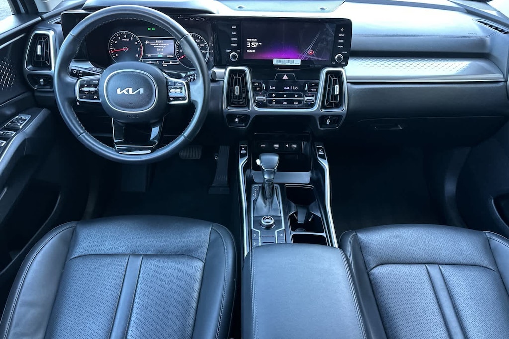 Lithia Ford and Lincoln of Fresno is pleased to offer this Glacial White Pearl 2023 Kia Sorento S for purchase, this vehicle is well equipped with many features including: Panoramic Sunroof Package (LED Interior Lighting and Panoramic Power Sunroof w/Power Sunshade), 3.798 Axle Ratio, 3rd row seats: split-bench, 4-Wheel Disc Brakes, 6 Speakers, ABS brakes, Air Conditioning, Alloy wheels, AM/FM radio: SiriusXM, Apple CarPlay & Android Auto, Auto High-beam Headlights, Automatic temperature control, Brake assist, Bumpers: body-color, Carpet Floor Mats, Delay-off headlights, Driver door bin, Driver vanity mirror, Dual front impact airbags, Dual front side impact airbags, EC Mirror w/HomeLink, Electronic Stability Control, Emergency communication system, Exterior Parking Camera Rear, Four wheel independent suspension, Front anti-roll bar, Front Bucket Seats, Front Center Armrest, Front dual zone A/C, Front reading lights, Fully automatic headlights, Heated door mirrors, Heated Front Bucket Seats, Heated front seats, Illuminated entry, Knee airbag, Leather Shift Knob, Leather steering wheel, Low tire pressure warning, Navigation System, Occupant sensing airbag, Outside temperature display, Overhead airbag, Overhead console, Panic alarm, Passenger door bin, Passenger vanity mirror, Power door mirrors, Power driver seat, Power steering, Power windows, Radio data system, Radio: AM/FM Audio System, Rear air conditioning, Rear anti-roll bar, Rear reading lights, Rear seat center armrest, Rear window defroster, Rear window wiper, Remote keyless entry, Roof rack: rails only, Security system, Smart Key w/ Push Button and Remote Start, Speed control, Speed-sensing steering, Split folding rear seat, Spoiler, Steering wheel mounted audio controls, SynTex Artificial Leather Seat Trim, Tachometer, Telescoping steering wheel, Tilt steering wheel, Traction control, Trip computer, Turn signal indicator mirrors, Variably intermittent wipers, Wheel Locks, and Wheels: 7.5J x 18 Machine-Finished Alloy. FWD 2.5L I4 DGI DOHC 16V LEV3-ULEV70 191hp 8-Speed Automatic S