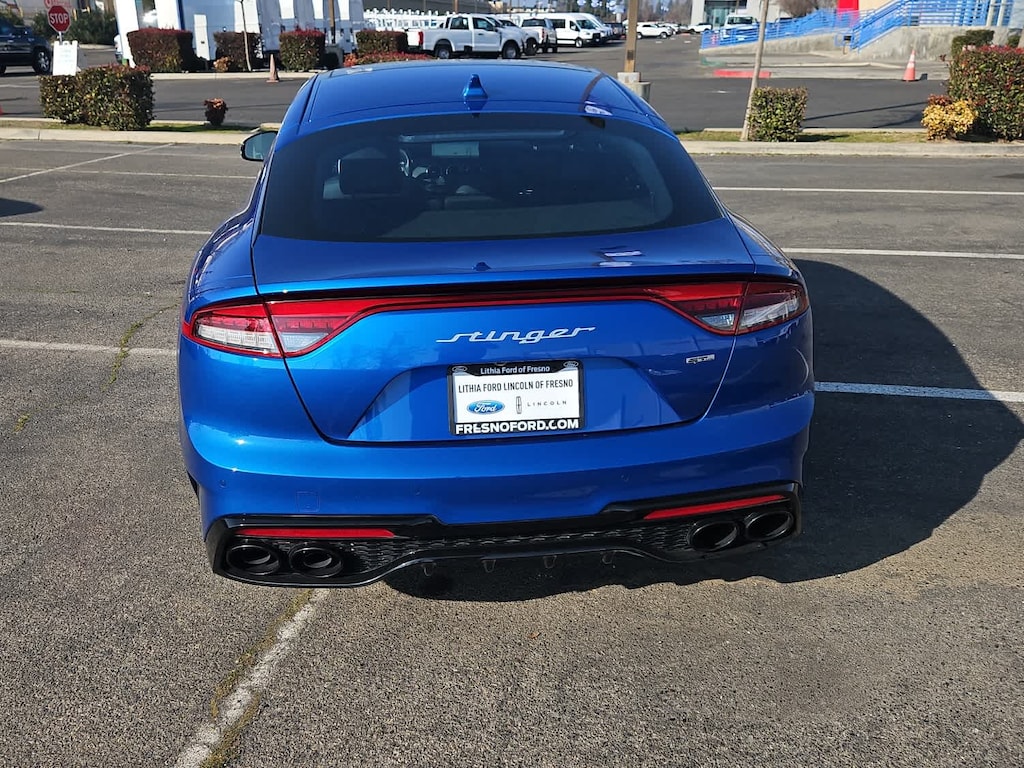 Lithia Ford and Lincoln of Fresno is pleased to offer this Micro Blue 2023 Kia Stinger GT-Line for purchase, this vehicle is well equipped with many features including: GT-Line Apex Special Edition Package (Black Exhaust Tips, Black Exterior Mirrors, Black Fender Garnish, Brembo Brakes, and Carbon Fiber Interior Trim), Sun & Sound Package (8-Way Power Adjustable Passenger Seat, Power Tilt & Slide Sunroof w/One-Touch, and Radio: harmon/kardon AM/FM/MP3/HD Audio System), Kia Certified, 4-Wheel Disc Brakes, 9 Speakers, ABS brakes, Air Conditioning, Alloy Door Sill Plate, Alloy wheels, AM/FM radio: SiriusXM, Anti-whiplash front head restraints, Apple CarPlay & Android Auto, Auto High-beam Headlights, Auto-dimming Rear-View mirror, Automatic temperature control, Brake assist, Bumpers: body-color, Cargo Mat, Cargo Net, Carpeted Floor Mat, Delay-off headlights, Driver door bin, Driver vanity mirror, Dual front impact airbags, Dual front side impact airbags, Electronic Stability Control, Emergency communication system, Exterior Parking Camera Rear, Four wheel independent suspension, Front anti-roll bar, Front Bucket Seats, Front Center Armrest, Front dual zone A/C, Front reading lights, Fully automatic headlights, Heated door mirrors, Heated Front Bucket Seats, Heated front seats, Heated steering wheel, Illuminated entry, Knee airbag, Leather Seat Trim, Low tire pressure warning, Navigation System, Occupant sensing airbag, Outside temperature display, Overhead airbag, Overhead console, Panic alarm, Passenger door bin, Passenger vanity mirror, Power door mirrors, Power driver seat, Power steering, Power windows, Radio: AM/FM/MP3/HD Audio System, Rain sensing wipers, Rear air conditioning, Rear anti-roll bar, Rear seat center armrest, Rear window defroster, Remote keyless entry, Security system, Smart Key w/ Push Button and Remote Start, Speed control, Speed-Sensitive Wipers, Split folding rear seat, Sport steering wheel, Steering wheel mounted audio controls, Tachometer, Telescoping steering wheel, Tilt steering wheel, Traction control, Trip computer, Turn signal indicator mirrors, Variably intermittent wipers, and Wheels: 8.0J x 18 Vertex Alloy. AWD I4 8-Speed Automatic GT-Line