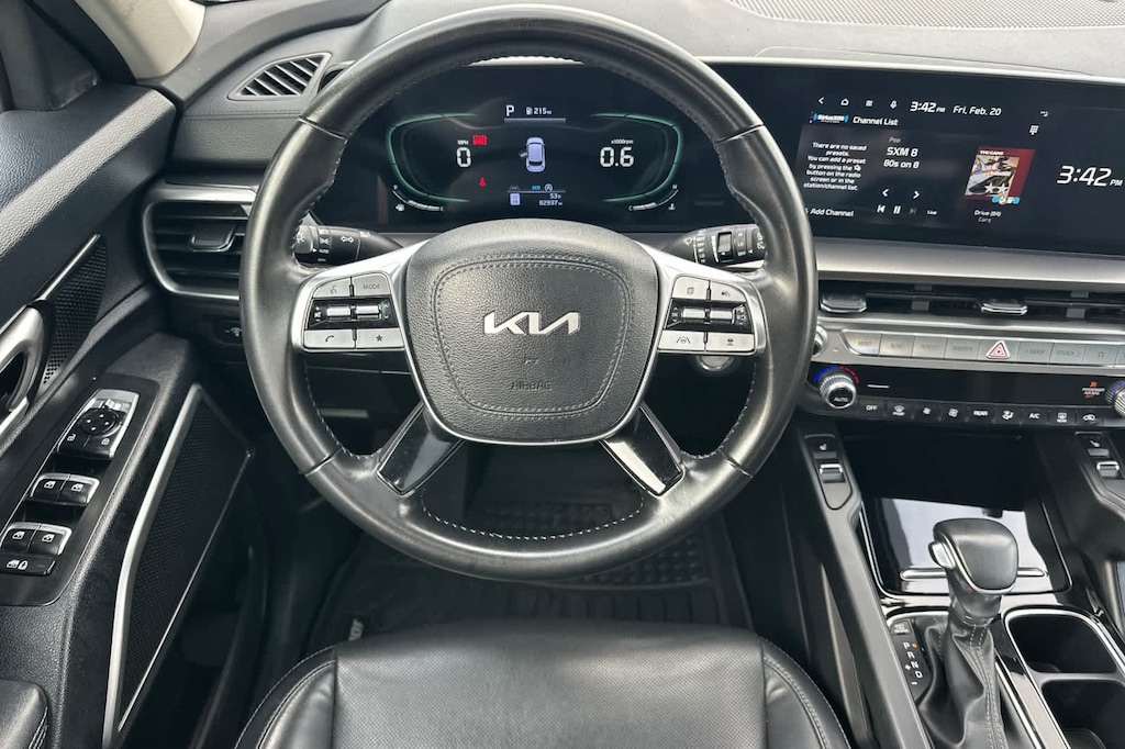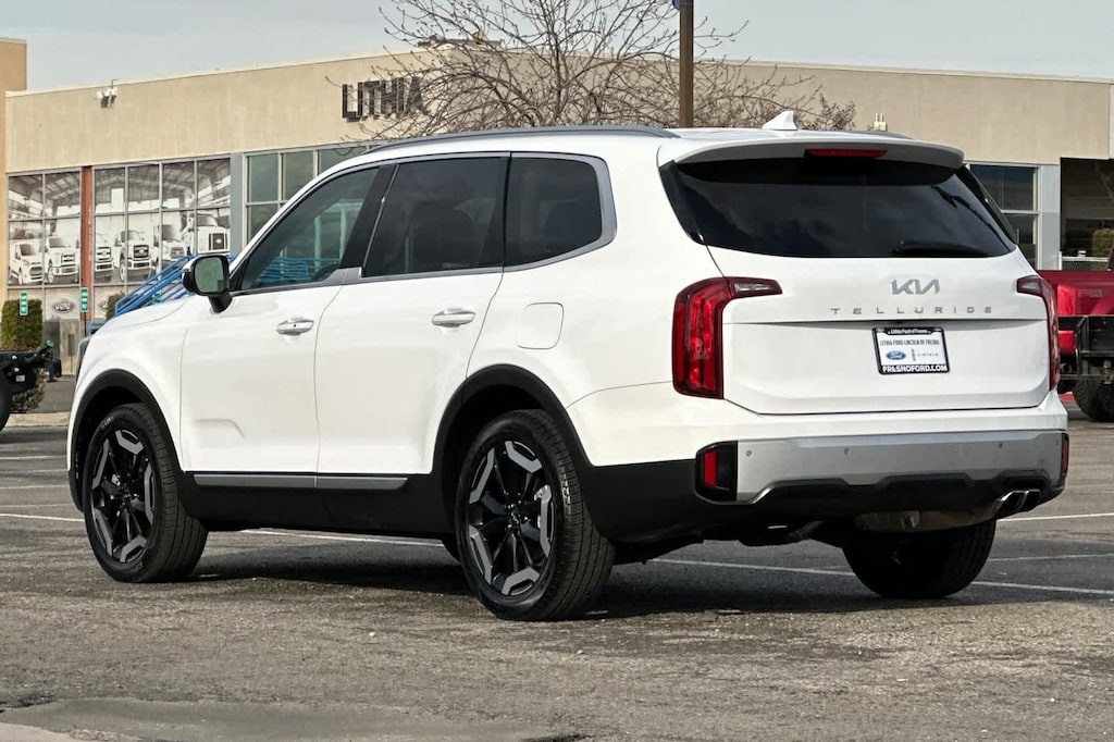 Lithia Ford and Lincoln of Fresno is pleased to offer this Glacial White Pearl 2023 Kia Telluride S for purchase, this vehicle is well equipped with many features including: S Sunroof Package (Power Sunroof w/Sunshade), Navigation System, 3.510 Axle Ratio, 3rd row seats: split-bench, 4-Wheel Disc Brakes, 6 Speakers, ABS brakes, Air Conditioning, Alloy wheels, AM/FM radio: SiriusXM, Apple CarPlay & Android Auto, Auto High-beam Headlights, Automatic temperature control, Brake assist, Bumpers: body-color, Carpet Floor Mats, Delay-off headlights, Driver door bin, Driver vanity mirror, Dual front impact airbags, Dual front side impact airbags, Electronic Stability Control, Emergency communication system: 911 Connect, Exterior Parking Camera Rear, Four wheel independent suspension, Front anti-roll bar, Front Bucket Seats, Front Center Armrest, Front dual zone A/C, Front reading lights, Fully automatic headlights, Heated door mirrors, Heated Front Bucket Seats, Heated front seats, Hybrid Cargo Net, Illuminated entry, Knee airbag, Leather Shift Knob, Leather steering wheel, Low tire pressure warning, Occupant sensing airbag, Outside temperature display, Overhead airbag, Overhead console, Panic alarm, Passenger door bin, Passenger vanity mirror, Power door mirrors, Power driver seat, Power steering, Power windows, Radio data system, Radio: AM/FM Display Audio System, Rear air conditioning, Rear anti-roll bar, Rear audio controls, Rear reading lights, Rear side impact airbag, Rear window defroster, Rear window wiper, Reclining 3rd row seat, Remote keyless entry, Roof rack: rails only, Security system, Smart Key w/ Push Button and Remote Start, Speed control, Speed-sensing steering, Split folding rear seat, Spoiler, Steering wheel mounted audio controls, SynTex Synthetic Leather Seat Trim, Tachometer, Telescoping steering wheel, Tilt steering wheel, Traction control, Trip computer, Turn signal indicator mirrors, Variably intermittent wipers, and Wheels: 20 x 7.5 Black Finish. FWD 3.8L V6 DGI DOHC Dual CVVT 8-Speed Automatic S