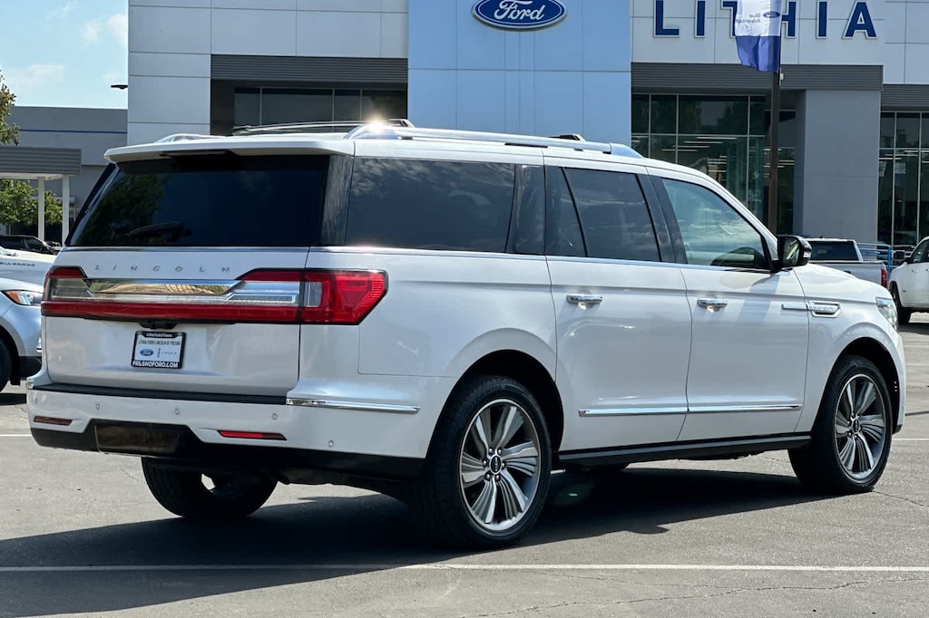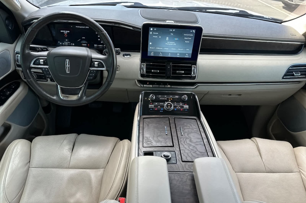 Lithia Ford and Lincoln of Fresno is pleased to offer this White Platinum 2019 Lincoln Navigator L L Reserve for purchase, this vehicle is well equipped with many features including: Cargo Package (Chrome Roof Rack w/Crossbars), Equipment Group 300A Reserve, GVWR: 7,800 lbs Payload Package, 14 Speakers, 2nd Row Heated Dual Captains Chairs w/PowerFold, 3.73 Axle Ratio, 30-Way Perfect Position Seating w/Active Motion, 3rd row seats: split-bench, 4-Wheel Disc Brakes, ABS brakes, Adaptive suspension, Adjustable pedals, Air Conditioning, Alloy wheels, AM/FM radio: SiriusXM, AppLink/Apple CarPlay and Android Auto, Audio memory, Auto High-beam Headlights, Auto tilt-away steering wheel, Auto-dimming door mirrors, Auto-dimming Rear-View mirror, Auto-leveling suspension, Automatic temperature control, Bodyside moldings, Brake assist, Bumpers: body-color, Compass, Delay-off headlights, Driver door bin, Driver vanity mirror, Drivers Seat Mounted Armrest, Dual front impact airbags, Dual front side impact airbags, Electronic Stability Control, Emergency communication system: 911 Assist, Exterior Parking Camera Rear, Four wheel independent suspension, Front anti-roll bar, Front Bucket Seats, Front dual zone A/C, Front fog lights, Front reading lights, Fully automatic headlights, Garage door transmitter: HomeLink, Genuine wood dashboard insert, Genuine wood door panel insert, Heads-Up Display, Heated door mirrors, Heated front seats, Heated rear seats, Heated steering wheel, HVAC memory, Illuminated entry, Leather steering wheel, Lincoln Play, Low tire pressure warning, Memory seat, Navigation System, Occupant sensing airbag, Outside temperature display, Overhead airbag, Overhead console, Panic alarm, Passenger door bin, Passenger seat mounted armrest, Passenger vanity mirror, Pedal memory, Power adjustable rear head restraints, Power door mirrors, Power driver seat, Power Liftgate, Power moonroof: Panoramic Vista Roof, Power passenger seat, Power steering, Power windows, Premium Lthr Htd/Ventilated Low-Back Bucket Seats, Radio data system, Radio: Revel AM/FM/HD/MP3 Audio System, Rain sensing wipers, Rear air conditioning, Rear anti-roll bar, Rear audio controls, Rear reading lights, Rear window defroster, Rear window wiper, Reclining 3rd row seat, Remote keyless entry, Revel Ultima Audio System w/20 Speakers, Roof rack: rails only, Security system, SiriusXM Radio, Speed control, Speed-sensing steering, Speed-Sensitive Wipers, Split folding rear seat, Spoiler, Steering wheel memory, Steering wheel mounted audio controls, SYNC 3 Communications & Entertainment System, Tachometer, Telescoping steering wheel, Tilt steering wheel, Traction control, Trip computer, Turn signal indicator mirrors, Variably intermittent wipers, Ventilated front seats, and Wheels: 22 16-Spoke Ultra Bright Machined Alum. 4WD V6 10-Speed Automatic L Reserve