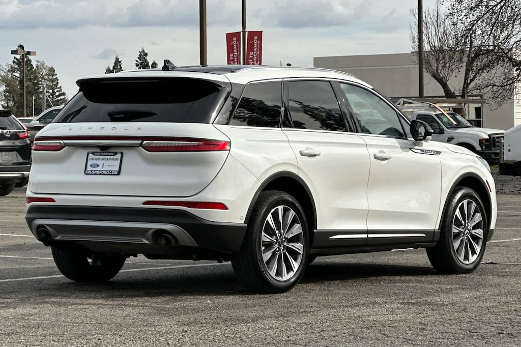 Lithia Ford and Lincoln of Fresno is pleased to offer this Pristine White Metallic Tri-Coat 2022 Lincoln Corsair Reserve for purchase, this vehicle is well equipped with many features including: Elements Package (Heated Rear Seat, Heated Steering Wheel, Heated/Ventilated Driver & Front Passenger Seats, Rain Sensing Wipers, and Windshield Wiper De-Icer), Equipment Group 201A (Panoramic Vista Roof w/Power Sunshade), Lincoln Co-Pilot360 1.5 Plus (360-Degree Camera w/Front & Rear Camera Washer, Active Park Assist 2.0, Evasive Steering Assist (ESA), Front/Side/Rear Parking Sensors, Intelligent Adaptive Cruise Control, and Reverse Brake Assist), 19 Bright Machined Aluminum Wheels, 10 Speakers, 3.81 Axle Ratio, 4-Wheel Disc Brakes, ABS brakes, Air Conditioning, Alloy wheels, AM/FM radio: SiriusXM, Auto High-beam Headlights, Auto tilt-away steering wheel, Auto-dimming door mirrors, Auto-dimming Rear-View mirror, Automatic temperature control, Brake assist, Bumpers: body-color, Compass, Delay-off headlights, Driver door bin, Driver vanity mirror, Dual front impact airbags, Dual front side impact airbags, Electronic Stability Control, Emergency communication system: 911 Assist, Four wheel independent suspension, Front anti-roll bar, Front Bucket Seats, Front Center Armrest, Front dual zone A/C, Front reading lights, Fully automatic headlights, Garage door transmitter, Heated door mirrors, Heated front seats, Illuminated entry, Knee airbag, Leather steering wheel, Low tire pressure warning, Memory seat, Navigation System, Occupant sensing airbag, Outside temperature display, Overhead airbag, Overhead console, Panic alarm, Passenger door bin, Passenger vanity mirror, Power door mirrors, Power driver seat, Power Liftgate, Power passenger seat, Power steering, Power windows, Premium Leather Heated Comfort Seats, Radio data system, Radio: Lincoln Premium Audio System w/MP3, Rear anti-roll bar, Rear Parking Sensors, Rear reading lights, Rear seat center armrest, Rear window defroster, Rear window wiper, Remote keyless entry, Roof rack: rails only, Security system, SiriusXM Radio, Speed control, Speed-sensing steering, Speed-Sensitive Wipers, Split folding rear seat, Spoiler, Steering wheel memory, Steering wheel mounted A/C controls, Steering wheel mounted audio controls, SYNC 3 Communications & Entertainment System, Tachometer, Telescoping steering wheel, Tilt steering wheel, Traction control, Trip computer, Turn signal indicator mirrors, and Variably intermittent wipers. FWD 2.0L I4 8-Speed Automatic Reserve