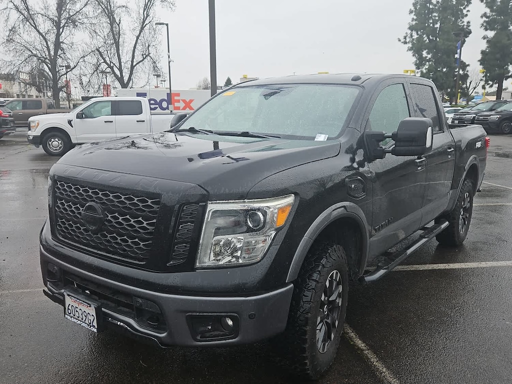 Lithia Ford and Lincoln of Fresno is pleased to offer this Magnetic Black 2017 Nissan Titan PRO-4X for purchase, this vehicle is well equipped with many features including: PRO-4X Convenience Package (Auto-Dimming Outside Mirrors, Auto-Dimming Rear-View Mirror, Compass On Navigation Display, Heated Front Captains Chairs, Heated Power Tilt/Telescopic Steering Wheel, Heated Rear Seats, Leather Seat Trim, NissanConnect Services, Remote Engine Start on Key Fob, and Universal Garage Door Opener (UGDO)), PRO-4X Utility & Towing Package (110V Outlet In Bed, Cargo Lamp, Front & Rear Parking Sensors, LED Signature Headlamps, LED Under Rail Bed Lighting, Manually Extending/Folding Tow Mirrors, Power Sliding Rear Window w/Defogger, Proximity Activation: Puddle Lights, Rear Utility Bed Step, Rockford Fosgate Audio System w/12 Speakers, Tailgate Area Illumination, Tailgate Electronic Lock, Trailer Brake Controller, and Utilitrack System w/4 Tie-Down Cleats), 4WD, 2.937 Axle Ratio, 4-Wheel Disc Brakes, 6 Speakers, ABS brakes, Air Conditioning, Alloy wheels, AM/FM radio: SiriusXM, Auto-leveling suspension, Automatic temperature control, Blind Spot Warning, Brake assist, CD player, Cloth Seat Trim w/Vinyl Bolsters, Delay-off headlights, Driver door bin, Driver vanity mirror, Dual front impact airbags, Dual front side impact airbags, Electronic Stability Control, Front anti-roll bar, Front Bucket Seats, Front Captains Chairs, Front Center Armrest, Front dual zone A/C, Front fog lights, Front reading lights, Front wheel independent suspension, Heated door mirrors, Illuminated entry, Leather steering wheel, Low tire pressure warning, Navigation System, Occupant sensing airbag, Outside temperature display, Overhead airbag, Overhead console, Panic alarm, Passenger door bin, Passenger vanity mirror, Power door mirrors, Power driver seat, Power steering, Power windows, Radio data system, Radio: NissanConnect w/SiriusXM/Navi & Mobile Apps, Rain sensing wipers, Rear anti-roll bar, Rear seat center armrest, Rear step bumper, Rear window defroster, Remote keyless entry, Security system, Speed control, Speed-sensing steering, Speed-Sensitive Wipers, Split folding rear seat, Steering wheel mounted audio controls, Tachometer, Telescoping steering wheel, Tilt steering wheel, Traction control, Trip computer, Turn signal indicator mirrors, Variably intermittent wipers, Voltmeter, and Wheels: 18 x 8 Painted Dark Finish Alloy. 4WD 5.6L V8 7-Speed Automatic PRO-4X