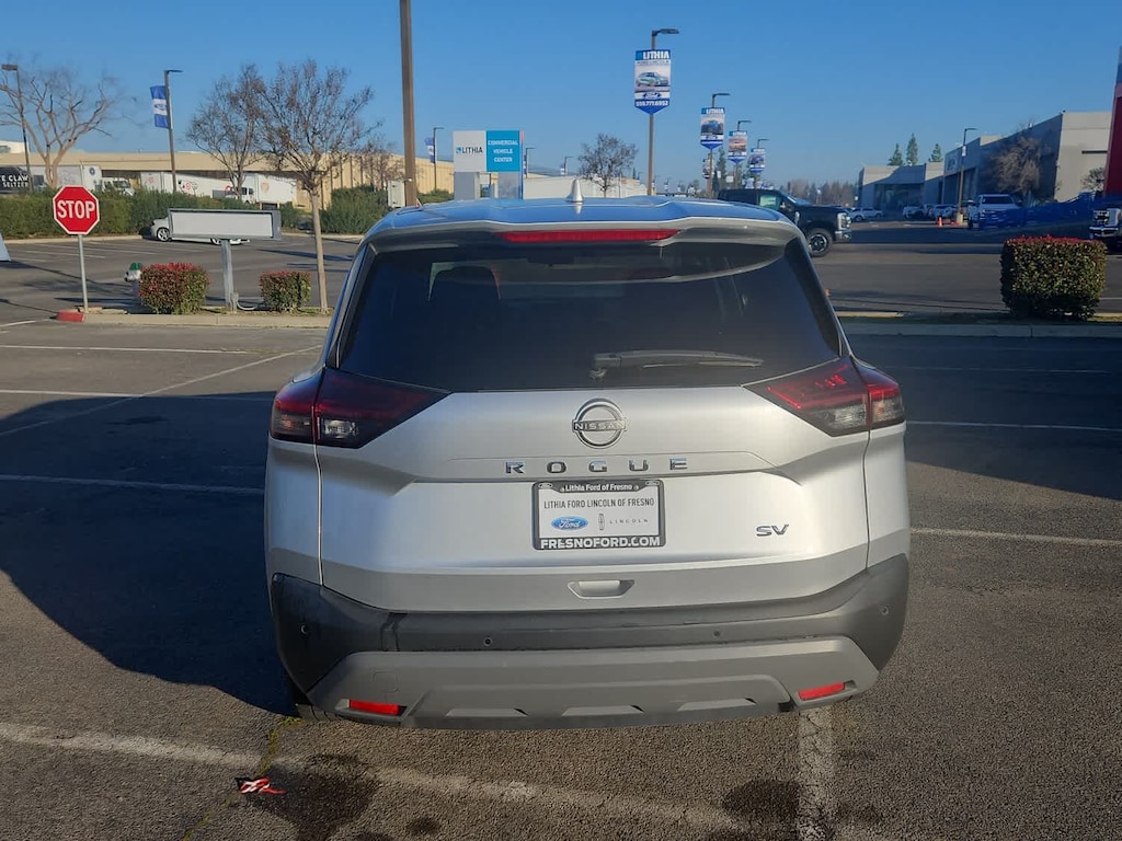 Lithia Ford and Lincoln of Fresno is pleased to offer this Brilliant Silver Metallic 2023 Nissan Rogue SV for purchase, this vehicle is well equipped with many features including: 18 Aluminum Alloy Wheels, 4-Wheel Disc Brakes, 5.604 Axle Ratio, 6 Speakers, ABS brakes, Air Conditioning, Alloy wheels, AM/FM Radio, AM/FM radio: SiriusXM, Auto High-beam Headlights, Automatic temperature control, Brake assist, Bumpers: body-color, Cloth Seat Trim, Delay-off headlights, Driver door bin, Driver vanity mirror, Dual front impact airbags, Dual front side impact airbags, Electronic Stability Control, Emergency communication system: NissanConnect Services, Floor Mats w/1-Piece Cargo Area Protector, Four wheel independent suspension, Front anti-roll bar, Front Bucket Seats, Front Center Armrest, Front dual zone A/C, Front reading lights, Fully automatic headlights, Heated door mirrors, Illuminated entry, Knee airbag, Low tire pressure warning, NissanConnect featuring Apple CarPlay and Android Auto, Occupant sensing airbag, Outside temperature display, Overhead airbag, Overhead console, Panic alarm, Passenger door bin, Passenger vanity mirror, Power door mirrors, Power driver seat, Power steering, Power windows, Radio data system, Rear anti-roll bar, Rear Parking Sensors, Rear seat center armrest, Rear side impact airbag, Rear window defroster, Rear window wiper, Remote keyless entry, Speed control, Speed-Sensitive Wipers, Split folding rear seat, Spoiler, Steering wheel mounted audio controls, Tachometer, Telescoping steering wheel, Tilt steering wheel, Traction control, Trip computer, and Variably intermittent wipers. FWD 1.5L I3 Turbocharged DOHC 12V LEV3-ULEV50 201hp CVT with Xtronic SV