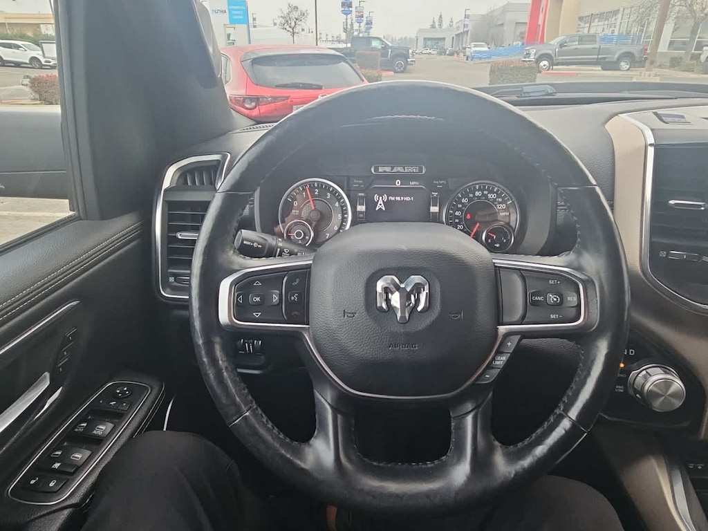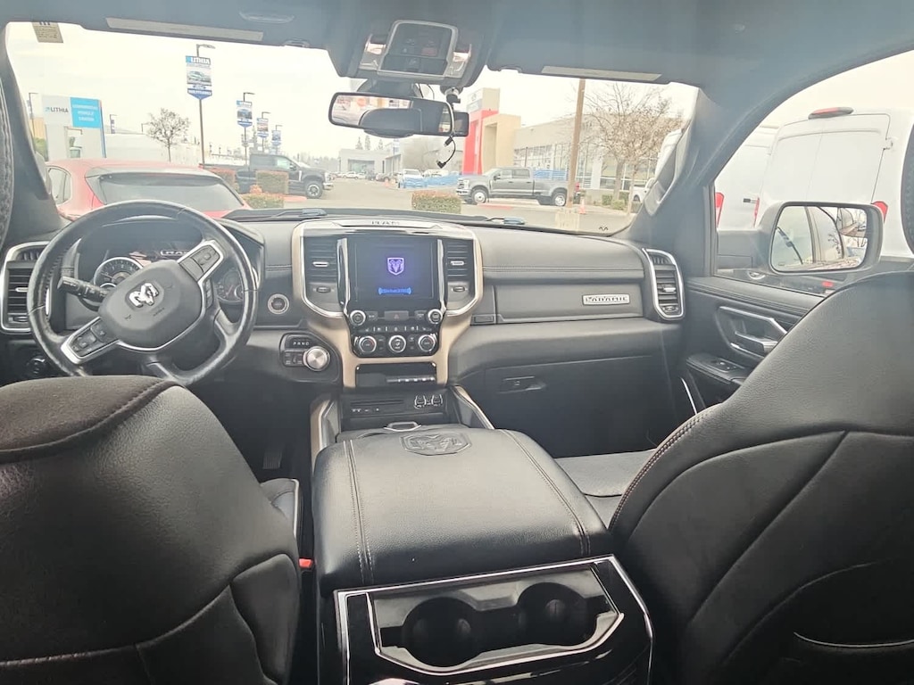 Lithia Ford and Lincoln of Fresno is pleased to offer this Delmonico Red Pearlcoat 2019 Ram 1500 Laramie for purchase, this vehicle is well equipped with many features including: Laramie Level 1 Equipment Group (Auto High Beam Headlamp Control, Blind Spot & Cross Path Detection, Foam Bottle Insert (Door Trim Panel), ParkSense Front/Rear Park Assist w/Stop, Rain Sensitive Windshield Wipers, Rear 60/40 Folding Split Recline Seat, Remote Tailgate Release, Single Disc Remote CD Player, and Tailgate Ajar Warning Lamp), Quick Order Package 25H Laramie, Sport Appearance Package (#1 Seat Foam Cushion, 3 Rear Seat Head Restraints, 4 Way Front Headrests, Black Interior Accents, Body Color Door Handles, Body Color Front Bumper, Body Color Rear Bumper w/Step Pads, Bucket Seats, Center Console Parts Module, Driver Seat Memory, Front Seat Back Map Pockets, Full Length Upgraded Floor Console, Grille B/Color Outline 3 Texture 4, Heated Front Seats, Heated Steering Wheel, Leather Trimmed Bucket Seats, Power 4-Way Driver Lumbar Adjust, Power 4-Way Passenger Lumbar Adjust, Power 8-Way Driver & Passenger Seats, Power Heated Fold-Away Mirrors, Sport Performance Hood, Ventilated Front Seats, and Wheels: 20 x 9 Premium Painted w/Inserts), 1-Yr SiriusXM Guardian Trial, 10 Speakers, 3.21 Rear Axle Ratio, 3.92 Rear Axle Ratio, 4-Wheel Disc Brakes, 48V Belt Starter Generator, 5-Year SiriusXM Traffic Service, 5-Year SiriusXM Travel Link Service, 8.4 Touchscreen Display, ABS brakes, Adjustable pedals, Air Conditioning, Alloy wheels, AM/FM radio: SiriusXM, Apple CarPlay, Apple CarPlay/Android Auto, Audio memory, Auto-dimming door mirrors, Auto-dimming Rear-View mirror, Automatic temperature control, Brake assist, Bumpers: chrome, Compass, Delay-off headlights, Disassociated Touchscreen Display, Driver door bin, Driver vanity mirror, Dual front impact airbags, Dual front side impact airbags, Electronic Stability Control, For Details, Visit DriveUconnect.com, Front anti-roll bar, Front Center Armrest w/Storage, Front dual zone A/C, Front fog lights, Front reading lights, Front wheel independent suspension, Fully automatic headlights, Garage door transmitter, Google Android Auto, GPS Antenna Input, GPS Navigation, HD Radio, Heated door mirrors, Heated front seats, Heated steering wheel, Illuminated entry, Integrated Center Stack Radio, Leather steering wheel, Leather Trim 40/20/40 Bench Seat, Low tire pressure warning, Manufacturers Statement of Origin, Memory seat, No Satellite Coverage w/HI/AK/PR/VI/GU, Occupant sensing airbag, Outside temperature display, Overhead airbag, Overhead console, Panic alarm, ParkView Rear Back-Up Camera, Passenger door bin, Passenger vanity mirror, Pedal memory, Power door mirrors, Power driver seat, Power passenger seat, Power steering, Power windows, Radio data system, Radio: Uconnect 4 w/8.4 Display, Radio: Uconnect 4C Nav w/8.4 Display, Rear anti-roll bar, Rear seat center armrest, Rear step bumper, Rear Wheelhouse Liners, Rear window defroster, Remote keyless entry, Security system, SiriusXM Satellite Radio, SiriusXM Traffic Plus, SiriusXM Travel Link, Speed control, Split folding rear seat, Steering wheel mounted audio controls, Tachometer, Telescoping steering wheel, Tilt steering wheel, Traction control, Trip computer, Turn signal indicator mirrors, Variably intermittent wipers, Ventilated front seats, Voltmeter, and Wheels: 18 x 8 Aluminum Base PainteD. 4WD HEMI 5.7L V8 Multi Displacement VVT 8-Speed Automatic Laramie