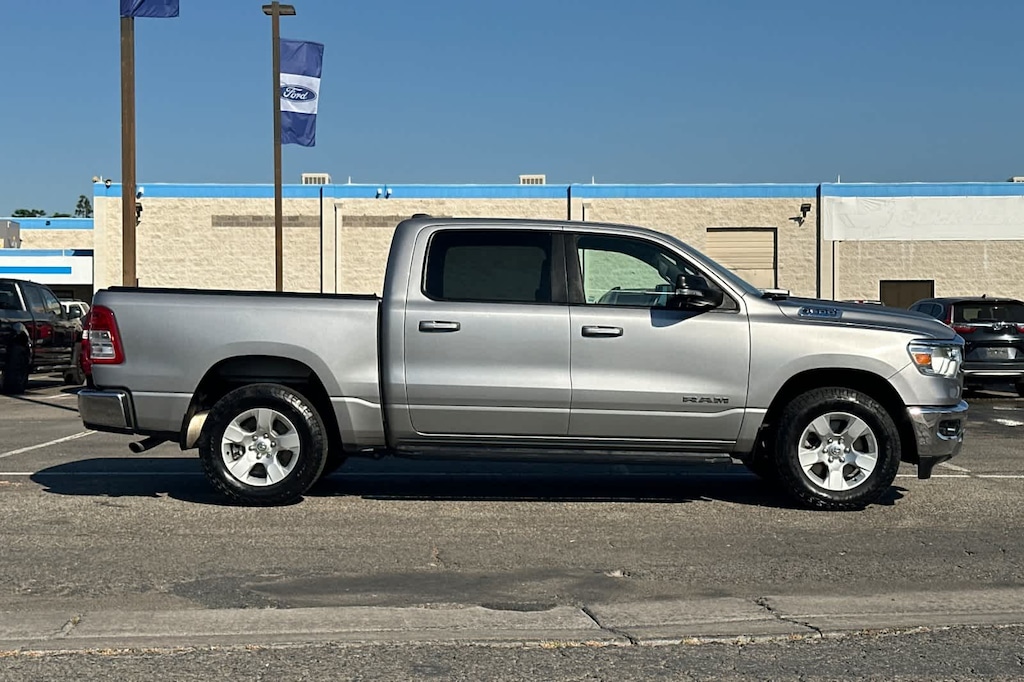 Lithia Ford and Lincoln of Fresno is pleased to offer this Billet Silver Metallic Clearcoat 2022 Ram 1500 Big Horn/Lone Star for purchase, this vehicle is well equipped with many features including: Big Horn Level An Equipment Group (DISC) (2nd Row In Floor Storage Bins, 4G LTE Wi-Fi Hot Spot, 8.4 Touchscreen Display, Apple CarPlay, Auto-Dimming Exterior Driver Mirror, Auto-Dimming Rear-View Mirror, Black Premium Power Mirrors (GUL), Bluetooth Handsfree Phone & Audio, Class IV Receiver Hitch, Cluster 3.5 TFT Color Display, Connectivity - US/Canada, Exterior Mirrors Courtesy Lamps, Exterior Mirrors w/Supplemental Signals, Foam Bottle Insert (Door Trim Panel), For More Info, Call 800-643-2112, Glove Box Lamp, Google Android Auto, Integrated Center Stack Radio, Power 2-Way Driver Lumbar Adjust, Power 8-Way Driver Seat, Power Adjustable Pedals, Radio: Uconnect 5 W w/8.4 Display, Rear Dome w/On/Off Switch Lamp, Rear Power Sliding Window, Rear Underseat Compartment Storage, Rear Window Defroster, SiriusXM Radio Service, SiriusXM Satellite Radio, Sun Visors w/Illuminated Vanity Mirrors, Universal Garage Door Opener, and USB Host Flip), Quick Order Package 23Z Big Horn (Big Horn Badge), Ram Certified, 3 Rear Seat Head Restraints, 3.21 Rear Axle Ratio, 33 Gallon Fuel Tank, 4 Way Front Headrests, 4-Wheel Disc Brakes, 48V Belt Starter Generator, 6 Speakers, ABS brakes, Air Conditioning, Alloy wheels, AM/FM radio, Black Exterior Mirrors, Brake assist, Bumpers: chrome, Cloth Bench Seat, Compass, Convex Wide-Angle Mirror Insert, Delay-off headlights, Driver door bin, Dual front impact airbags, Dual front side impact airbags, Electronic Stability Control, Emergency communication system: SiriusXM Guardian, Exterior Parking Camera Rear, Front anti-roll bar, Front Center Armrest w/Storage, Front fog lights, Front License Plate Bracket, Front reading lights, Front Seat Back Map Pockets, Front wheel independent suspension, Fully automatic headlights, Global Telematics Box Module (TBM), GPS Antenna Input, Heated door mirrors, Illuminated entry, Integrated Voice Command w/Bluetooth, Leather steering wheel, Low tire pressure warning, Manufacturers Statement of Origin, MOPAR Front & Rear Rubber Floor Mats, Occupant sensing airbag, Outside temperature display, Overhead airbag, Overhead console, Panic alarm, ParkSense Front/Rear Park Assist w/Stop, Passenger door bin, Passenger vanity mirror, Power door mirrors, Power steering, Power windows, Radio data system, Radio: Uconnect 3 w/5 Display, Rear 60/40 Folding Seat, Rear anti-roll bar, Rear seat center armrest, Rear step bumper, Remote keyless entry, Remote Start System, Speed control, Split folding rear seat, Steering wheel mounted audio controls, Tachometer, Telescoping steering wheel, Tilt steering wheel, Traction control, Trip computer, Variably intermittent wipers, Voltmeter, and Wheels: 18 x 8 Cast-Aluminum Painted. RWD 3.6L V6 24V VVT 8-Speed Automatic Big Horn/Lone Star