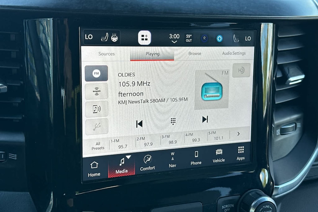 Lithia Ford and Lincoln of Fresno is pleased to offer this Delmonico Red Pearlcoat 2024 Ram 1500 Big Horn/Lone Star for purchase, this vehicle is well equipped with many features including: Big Horn Level 1 Equipment Group (2nd Row In Floor Storage Bins, 4G LTE Wi-Fi Hot Spot, Apple CarPlay, Auto-Dimming Exterior Driver Mirror, Auto-Dimming Rear-View Mirror, Black Premium Power Mirrors, Bluetooth Handsfree Phone & Audio, Class IV Receiver Hitch, Connectivity - US/Canada, Convex Wide-Angle Exterior Mirror Insert, Electric Shift-On-Demand Transfer Case, Exterior Mirrors Courtesy Lamps, Exterior Mirrors w/Heating Element, Exterior Mirrors w/Supplemental Signals, For Details, Visit DriveUconnect.com, For More Info, Call 800-643-2112, Front Fog Lamps, Global Telematics Box Module (TBM), Glove Box Lamp, Google Android Auto, Heated Front Seats, Heated Steering Wheel, Passenger Sun Visor w/Illuminated Mirror, Power-Folding Mirrors, Radio: Uconnect 5 W w/8.4 Display, Rear Dome w/On/Off Switch Lamp, Rear Power Sliding Window, Rear Window Defroster, SiriusXM Radio Service, SiriusXM Satellite Radio, and USB Host Flip), Quick Order Package 27Z Big Horn (Big Horn Badge), Air Conditioning ATC w/Dual Zone Control, All R1 High Radios, All Radio Equipped Vehicles, Connected Travel & Traffic Services, GPS Navigation, HD Radio, Integrated Voice Command w/Bluetooth, Radio: Uconnect 5 Nav w/8.4 Display, SiriusXM w/360L, 3 Rear Seat Head Restraints, 3.21 Rear Axle Ratio, 4 Way Front Headrests, 4-Wheel Disc Brakes, 48V Belt Starter Generator, 6 Speakers, ABS brakes, Air Conditioning, Alloy wheels, AM/FM radio, Anti-Spin Differential Rear Axle, Brake assist, Bumpers: chrome, Cloth Bench Seat, Compass, Delay-off headlights, Driver door bin, Dual front impact airbags, Dual front side impact airbags, Electronic Stability Control, Emergency communication system: RAM Connect, Front anti-roll bar, Front Center Armrest w/Storage, Front License Plate Bracket, Front reading lights, Front Seat Back Map Pockets, Front wheel independent suspension, Fully automatic headlights, Heated door mirrors, Illuminated entry, Leather steering wheel, Low tire pressure warning, Manufacturers Statement of Origin, MOPAR Front & Rear Rubber Floor Mats, Occupant sensing airbag, Outside temperature display, Overhead airbag, Overhead console, Panic alarm, ParkSense Front/Rear Park Assist w/Stop, ParkView Rear Back-Up Camera, Passenger door bin, Passenger vanity mirror, Power door mirrors, Power steering, Power windows, Radio data system, Radio: Uconnect 3 w/5 Display, RAM Grille Badge - Chrome, Rear 60/40 Folding Seat, Rear anti-roll bar, Rear seat center armrest, Rear step bumper, Remote keyless entry, Remote Start System, Speed control, Split folding rear seat, Steering wheel mounted audio controls, Tachometer, Telescoping steering wheel, Tilt steering wheel, Traction control, Trip computer, Variably intermittent wipers, Voltmeter, and Wheels: 18 x 8 Cast-Aluminum PainteD. 4WD HEMI 5.7L V8 Multi Displacement VVT eTorque 8-Speed Automatic Big Horn/Lone Star