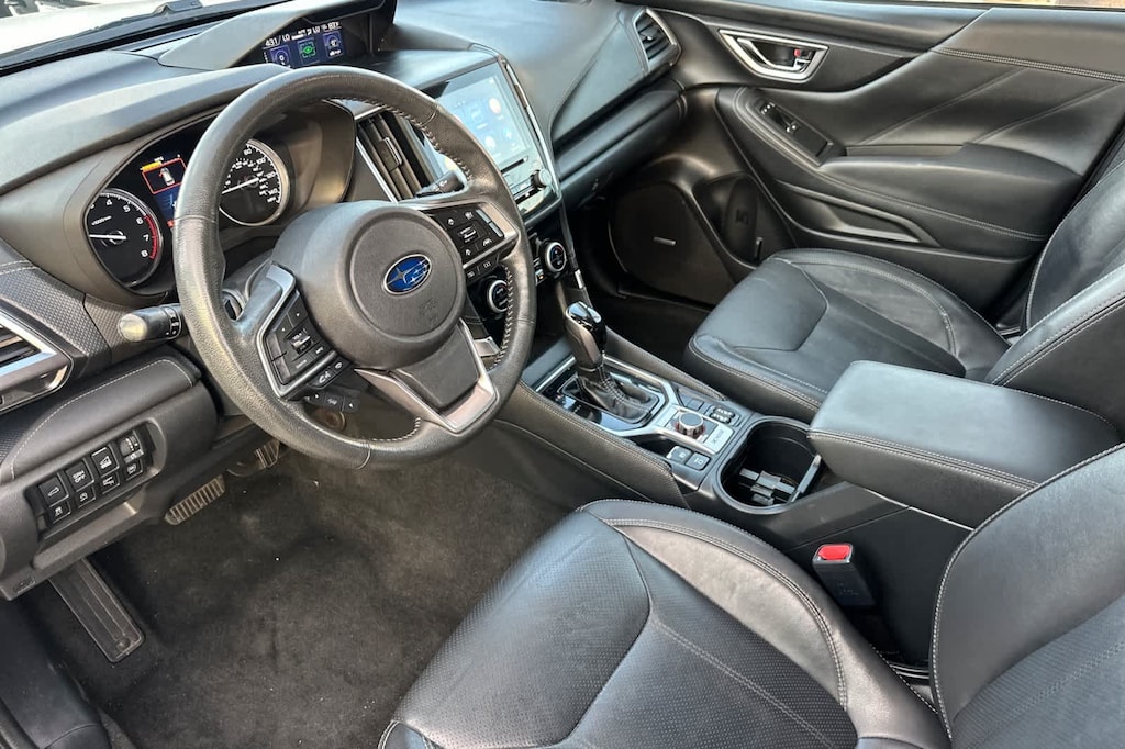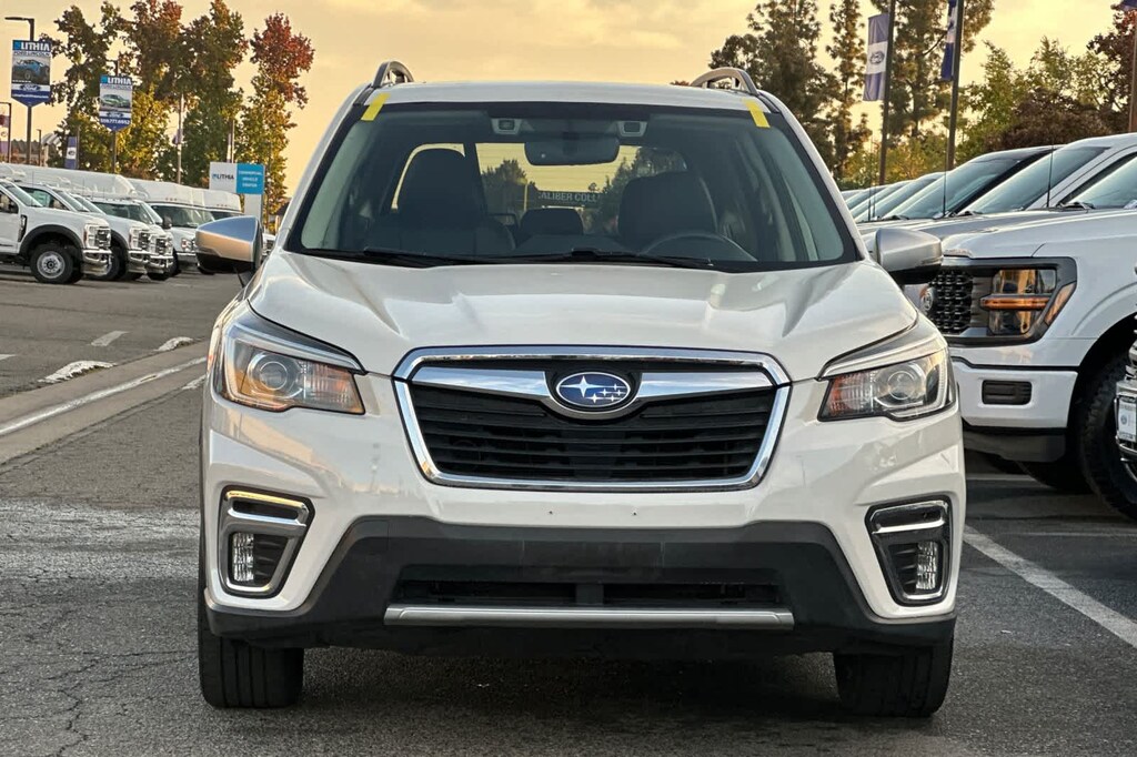 Lithia Ford and Lincoln of Fresno is pleased to offer this Crystal White Pearl 2019 Subaru Forester Touring for purchase, this vehicle is well equipped with many features including: 3.70 Axle Ratio, 4-Wheel Disc Brakes, 9 Speakers, ABS brakes, Air Conditioning, Alloy wheels, AM/FM radio: SiriusXM, Auto High-beam Headlights, Automatic temperature control, Brake assist, Bumpers: body-color, CD player, Driver door bin, Driver vanity mirror, Dual front impact airbags, Dual front side impact airbags, Electronic Stability Control, Emergency communication system: STARLINK Safety and Security, Exterior Parking Camera Rear, Four wheel independent suspension, Front anti-roll bar, Front Bucket Seats, Front Center Armrest, Front dual zone A/C, Front fog lights, Front reading lights, Fully automatic headlights, harman kardon 576W Amp & Speaker System, harman/kardonî Speakers, Heated door mirrors, Heated Front Bucket Seats, Heated front seats, Heated rear seats, Heated steering wheel, HVAC memory, Illuminated entry, Knee airbag, Leather Shift Knob, Low tire pressure warning, Memory seat, Navigation System, Occupant sensing airbag, Outside temperature display, Overhead airbag, Overhead console, Paddle-Shift Control Switches, Panic alarm, Passenger door bin, Passenger vanity mirror, Perforated Leather-Trimmed Upholstery, Power door mirrors, Power driver seat, Power Liftgate, Power moonroof: Panoramic, Power passenger seat, Power steering, Power windows, Radio data system, Radio: Subaru Starlink 8.0 Multimedia Nav System, Rear anti-roll bar, Rear seat center armrest, Rear window defroster, Rear window wiper, Remote keyless entry, Roof rack: rails only, Security system, Speed control, Speed-sensing steering, Split folding rear seat, Spoiler, STARLINK/Apple CarPlay/Android Auto, Steering wheel mounted audio controls, Tachometer, Telescoping steering wheel, Tilt steering wheel, Traction control, Trip computer, Turn signal indicator mirrors, Variably intermittent wipers, and Wheels: 18 x 7.0J Blk Machine Touring Alum Alloy. AWD 2.5L 4-Cylinder DOHC 16V VVT Lineartronic CVT Touring