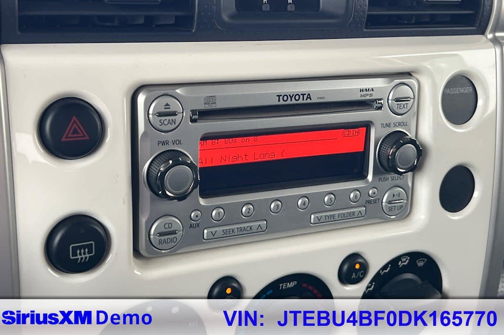 Lithia Ford and Lincoln of Fresno is pleased to offer this Iceberg White 2013 Toyota FJ Cruiser for purchase, this vehicle is well equipped with many features including: 4WD, 17 x 7.5 Steel Wheels, 3.73 Axle Ratio, 4-Wheel Disc Brakes, 6 Speakers, ABS brakes, Air Conditioning, AM/FM radio: SiriusXM, AM/FM/CD Audio System w/6-Speakers, Anti-whiplash front head restraints, Auto-dimming Rear-View mirror, Brake assist, CD player, Driver door bin, Driver vanity mirror, Drivers Seat Mounted Armrest, Dual front impact airbags, Dual front side impact airbags, Electronic Stability Control, Fabric Seat Trim, Front anti-roll bar, Front Bucket Seats, Front reading lights, Front wheel independent suspension, Illuminated entry, Low tire pressure warning, Occupant sensing airbag, Overhead airbag, Passenger door bin, Passenger vanity mirror, Power door mirrors, Power steering, Power windows, Rear anti-roll bar, Rear window defroster, Speed-sensing steering, Split folding rear seat, Steering wheel mounted audio controls, Tachometer, Tilt steering wheel, Traction control, Variably intermittent wipers, and Voltmeter. 4WD 4.0L V6 DOHC VVT-i 24V