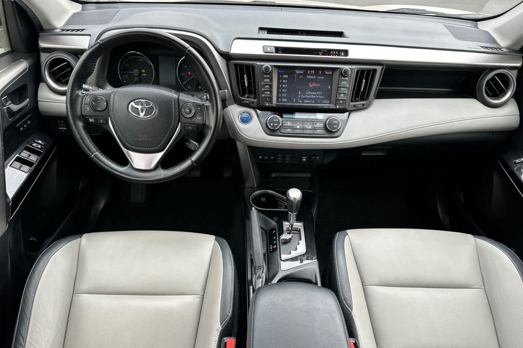 Lithia Ford and Lincoln of Fresno is pleased to offer this White 2017 Toyota RAV4 Hybrid Limited for purchase, this vehicle is well equipped with many features including: 2.5L 4-Cylinder, 4-Wheel Disc Brakes, 6 Speakers, ABS brakes, Air Conditioning, Alloy wheels, AM/FM radio: SiriusXM, Auto High-beam Headlights, Auto-dimming Rear-View mirror, Automatic temperature control, Axle Ratio: 3.542, Brake assist, Bumpers: body-color, Chrome wheels, Compass, Driver door bin, Driver vanity mirror, Dual front impact airbags, Dual front side impact airbags, Electronic Stability Control, Exterior Parking Camera Rear, Four wheel independent suspension, Front anti-roll bar, Front Bucket Seats, Front Center Armrest, Front dual zone A/C, Front fog lights, Front reading lights, Fully automatic headlights, Garage door transmitter: HomeLink, Heated door mirrors, Heated front seats, Heated Front Sport Seats, Illuminated entry, Knee airbag, Leather Shift Knob, Leather steering wheel, Low tire pressure warning, Memory seat, Navigation System, Occupant sensing airbag, Outside temperature display, Overhead airbag, Overhead console, Panic alarm, Passenger door bin, Passenger vanity mirror, Power door mirrors, Power driver seat, Power Liftgate, Power moonroof, Power steering, Power windows, Radio data system, Radio: Entune Premium Audio with Navigation, Rear anti-roll bar, Rear seat center armrest, Rear window defroster, Rear window wiper, Remote keyless entry, Roof rack, SofTex Seat Trim, Speed control, Speed-sensing steering, Split folding rear seat, Spoiler, Steering wheel mounted audio controls, Telescoping steering wheel, Tilt steering wheel, Traction control, Trip computer, Turn signal indicator mirrors, Variably intermittent wipers, and Wheels: 18 x 7.5J 5-Spoke Superchrome Alloy. AWD 2.5L 4-Cylinder CVT Limited