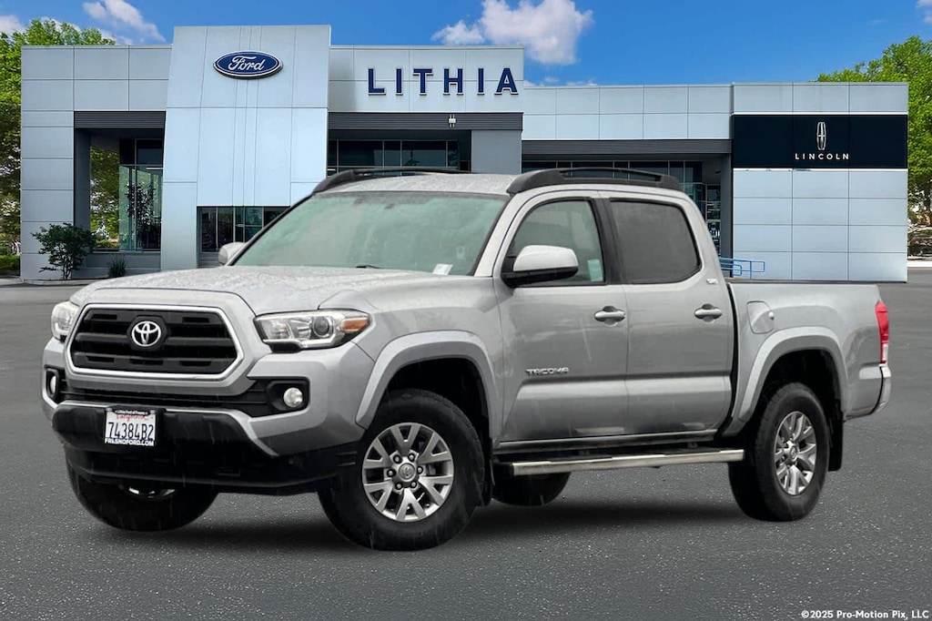 Lithia Ford and Lincoln of Fresno is pleased to offer this Silver Sky Metallic 2017 Toyota Tacoma for purchase, this vehicle is well equipped with many features including: Tow Package (130 Amp Alternator, ATF Cooler, Class IV Hitch Receiver, Engine Oil Cooler, Power Steering Cooler, and Trailer Sway Control), 16 Silver Alloy Wheels, 5 Chrome Oval Tube Steps, 6 Speakers, ABS brakes, Air Conditioning, Alloy wheels, AM/FM radio: SiriusXM, Anti-whiplash front head restraints, Auto-dimming Rear-View mirror, Axle Ratio: 3.91, Brake assist, Bumpers: body-color, CD player, Compass, Driver door bin, Dual front impact airbags, Dual front side impact airbags, Electronic Stability Control, Exterior Parking Camera Rear, Fabric Seat Trim (FC), Front anti-roll bar, Front Bucket Seats, Front Center Armrest, Front fog lights, Front reading lights, Front wheel independent suspension, Illuminated entry, Knee airbag, Low tire pressure warning, Occupant sensing airbag, Outside temperature display, Overhead airbag, Overhead console, Panic alarm, Passenger door bin, Power door mirrors, Power steering, Power windows, Radio: Entune Plus AM/FM/CD w/Connected Navigation, Rear step bumper, Remote keyless entry, Speed control, Speed-sensing steering, Split folding rear seat, Steering wheel mounted audio controls, Tachometer, Telescoping steering wheel, Tilt steering wheel, Traction control, Trip computer, and Variably intermittent wipers. RWD V6 6-Speed Automatic