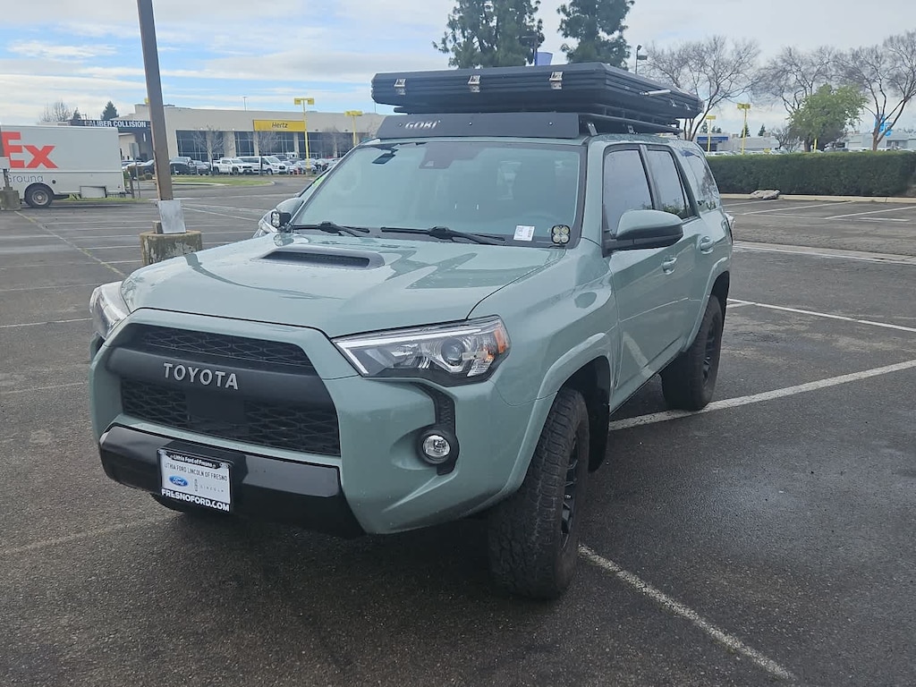 Lithia Ford and Lincoln of Fresno is pleased to offer this Lunar Rock 2021 Toyota 4Runner TRD Pro for purchase, this vehicle is well equipped with many features including: TRD Pro Package (Fog Lights, Garage Door Opener, Power Tilt & Slide Moonroof w/Sunshade, Right & Left Individual Air Conditioner, Roof Rail Delete, TRD Badging, TRD Pro All Weather Floor Liner, TRD Pro Exhaust, TRD Pro Shift Knob, TRD Roof Rack, TRD Suspension Kit, and Wireless Smart Entry Door Lock), 4WD, Black/Graphite w/Nightshade Leather Seat Trim, 15 Speakers, 3.727 Axle Ratio, 4-Wheel Disc Brakes, ABS brakes, Air Conditioning, Alloy wheels, AM/FM radio: SiriusXM, Anti-whiplash front head restraints, Apple CarPlay/Android Auto, Auto High-beam Headlights, Auto-dimming Rear-View mirror, Brake assist, Bumpers: body-color, Compass, Driver door bin, Driver vanity mirror, Dual front impact airbags, Dual front side impact airbags, Electronic Stability Control, Emergency communication system: Safety Connect with 1-year trial, Exterior Parking Camera Rear, Front anti-roll bar, Front Bucket Seats, Front Center Armrest, Front fog lights, Front reading lights, Front wheel independent suspension, Garage door transmitter: HomeLink, Heated door mirrors, Heated Front Bucket Seats, Heated front seats, Illuminated entry, Knee airbag, Leather Shift Knob, Low tire pressure warning, Navigation System, Occupant sensing airbag, Outside temperature display, Overhead airbag, Overhead console, Panic alarm, Passenger door bin, Passenger vanity mirror, Power door mirrors, Power driver seat, Power moonroof, Power passenger seat, Power steering, Power windows, Radio: Premium JBL Audio, Rear anti-roll bar, Rear seat center armrest, Rear window defroster, Rear window wiper, Remote keyless entry, Roof rack, Security system, Softex Synthetic Leather Seat Trim, Speed control, Speed-sensing steering, Split folding rear seat, Spoiler, Steering wheel mounted audio controls, Tachometer, Telescoping steering wheel, Tilt steering wheel, Traction control, Trip computer, Turn signal indicator mirrors, Variably intermittent wipers, and Wheels: 17 Matte Black Flow-Formed TRD Alloy. 4WD 4.0L V6 SMPI DOHC 5-Speed Automatic with Overdrive TRD Pro