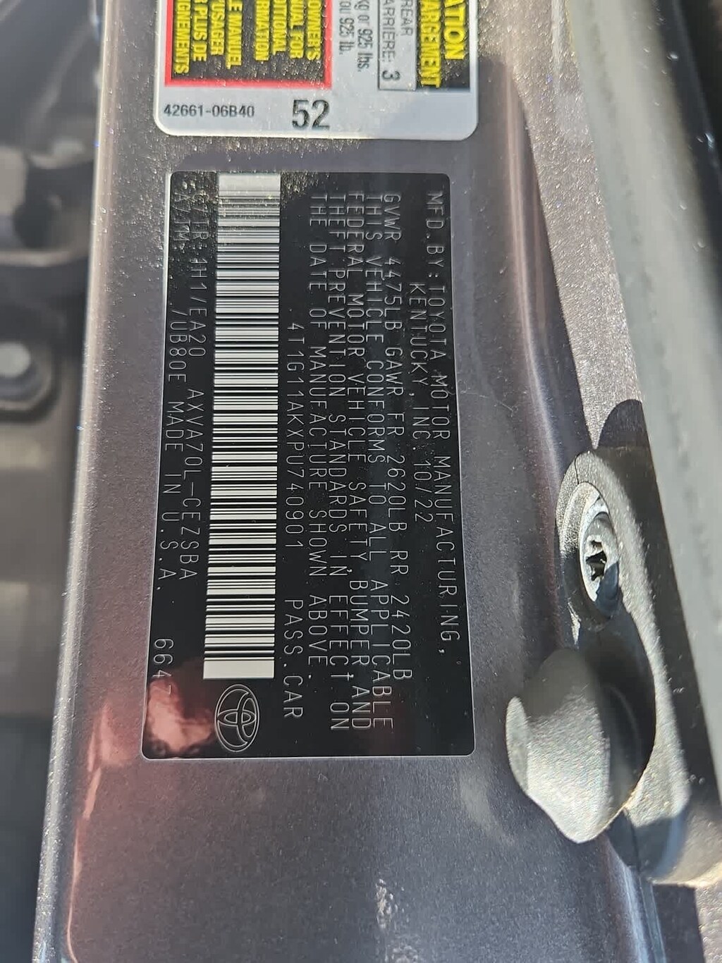 - 4T1G11AKXPU740901
