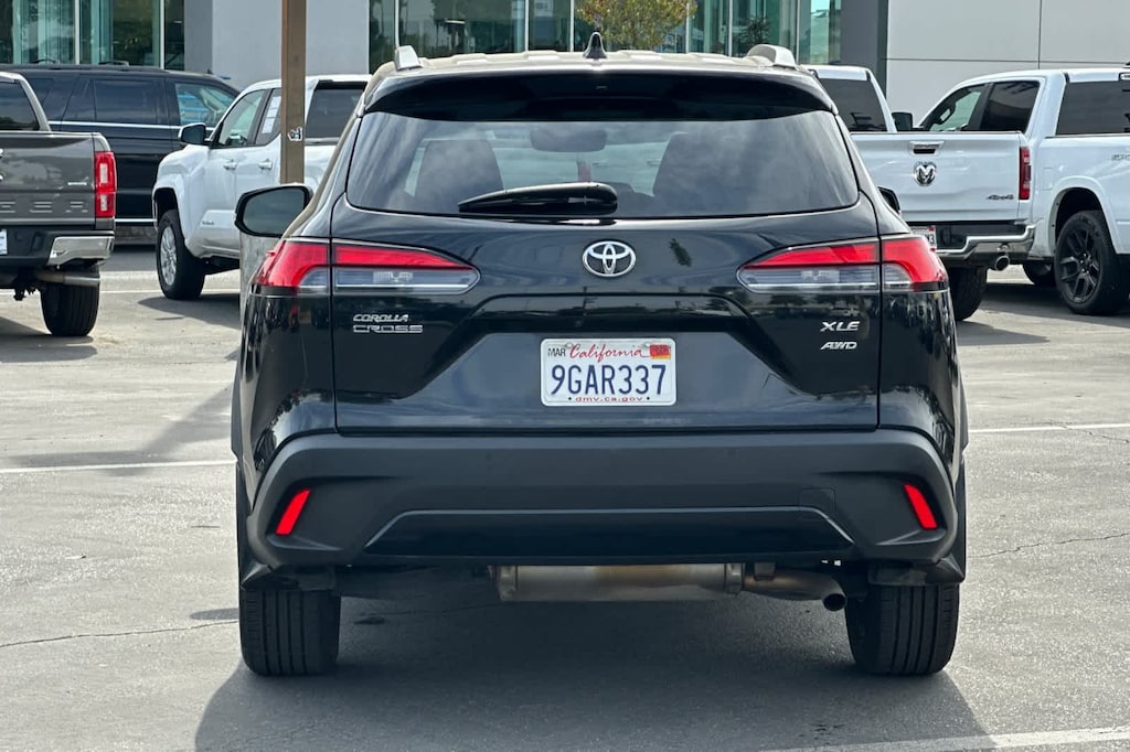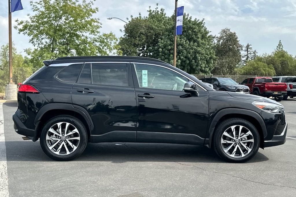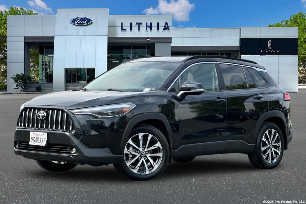 Lithia Ford and Lincoln of Fresno is pleased to offer this Black 2023 Toyota Corolla Cross XLE for purchase, this vehicle is well equipped with many features including: 4-Wheel Disc Brakes, 4.014 Axle Ratio, 6 Speakers, ABS brakes, Air Conditioning, Alloy wheels, AM/FM radio: SiriusXM, Auto High-beam Headlights, Auto-dimming Rear-View mirror, Automatic temperature control, Brake assist, Bumpers: body-color, Delay-off headlights, Driver door bin, Driver vanity mirror, Dual front impact airbags, Dual front side impact airbags, Electronic Stability Control, Emergency communication system: Safety Connect (10-year trial), Exterior Parking Camera Rear, Four wheel independent suspension, Front anti-roll bar, Front Bucket Seats, Front Center Armrest, Front dual zone A/C, Front fog lights, Front reading lights, Fully automatic headlights, Heated door mirrors, Heated Front Bucket Seats, Heated front seats, Illuminated entry, Knee airbag, Leather Shift Knob, Leather steering wheel, Low tire pressure warning, Occupant sensing airbag, Outside temperature display, Overhead airbag, Panic alarm, Passenger door bin, Passenger vanity mirror, Power door mirrors, Power driver seat, Power steering, Power windows, Radio data system, Radio: 8 Toyota Multimedia, Rear anti-roll bar, Rear seat center armrest, Rear side impact airbag, Rear window defroster, Rear window wiper, Remote keyless entry, Roof rack: rails only, Softex Synthetic Leather Seat Trim, Speed control, Split folding rear seat, Spoiler, Steering wheel mounted audio controls, Tachometer, Telescoping steering wheel, Tilt steering wheel, Traction control, Trip computer, Turn signal indicator mirrors, Variably intermittent wipers, and Wheels: 18 Alloy w/Black-Painted Machine-Finish. AWD 2.0L I4 PDI DOHC 16V LEV3-SULEV30 169hp CVT XLE