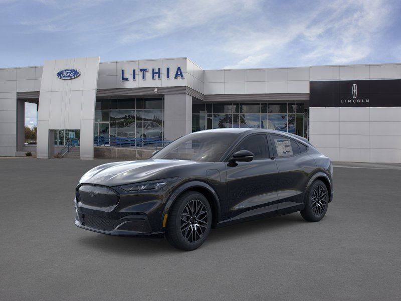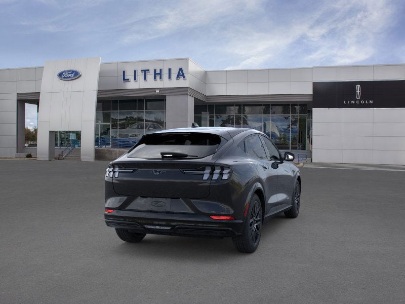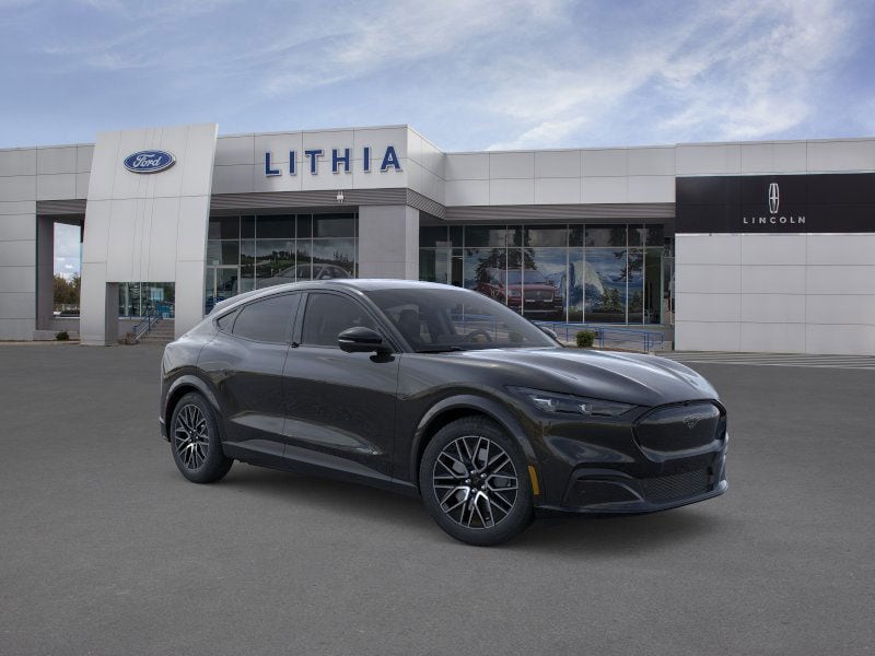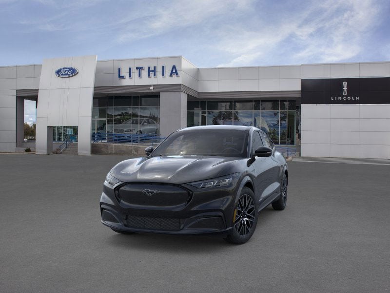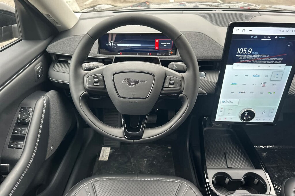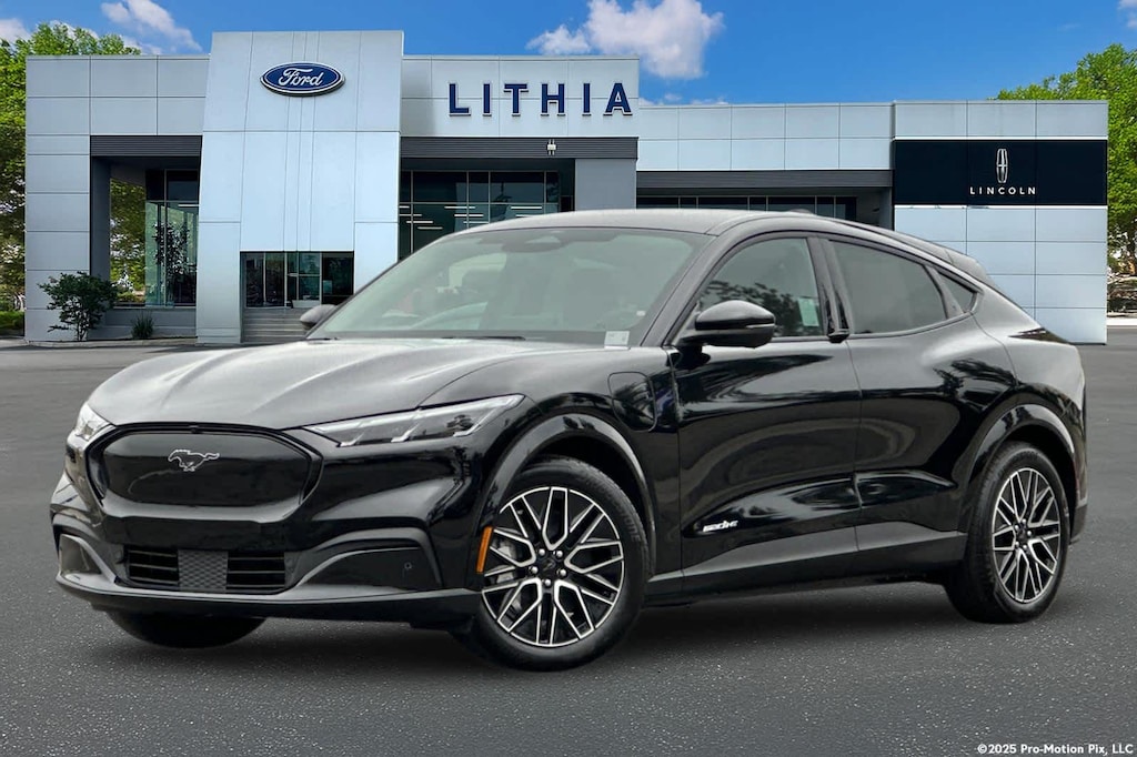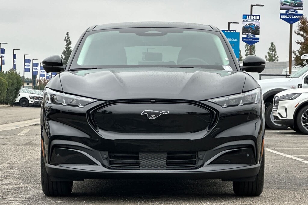 ENGINE: PRIMARY MOTOR (REAR) (RWD) (997) 88kWh usable capacity extended range battery, BLUECRUISE EQUIPPED (ONE-TIME PURCHASE) See ford.com/bluecruise for version details, Option for a one-time purchase of BlueCruise, BlueCruise service will be active for a minimum of 7 years on this vehicle (non-transferable to another VIN), No additional subscription purchase will be required to maintain BlueCruise service beyond the 7 years if the service is available, TRANSMISSION: SINGLE SPEED (STD). 2025 Ford Mustang Mach-E with Shadow Black exterior and Black Onyx interior features a Electric Motor.