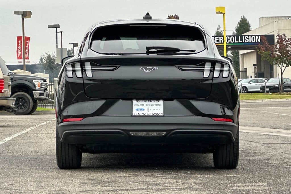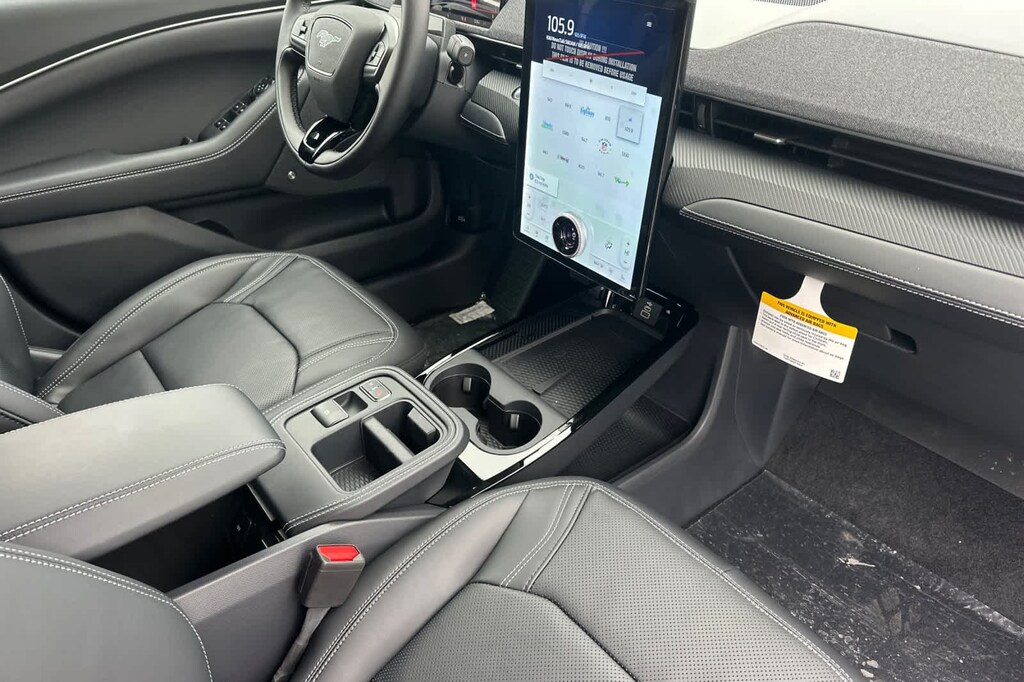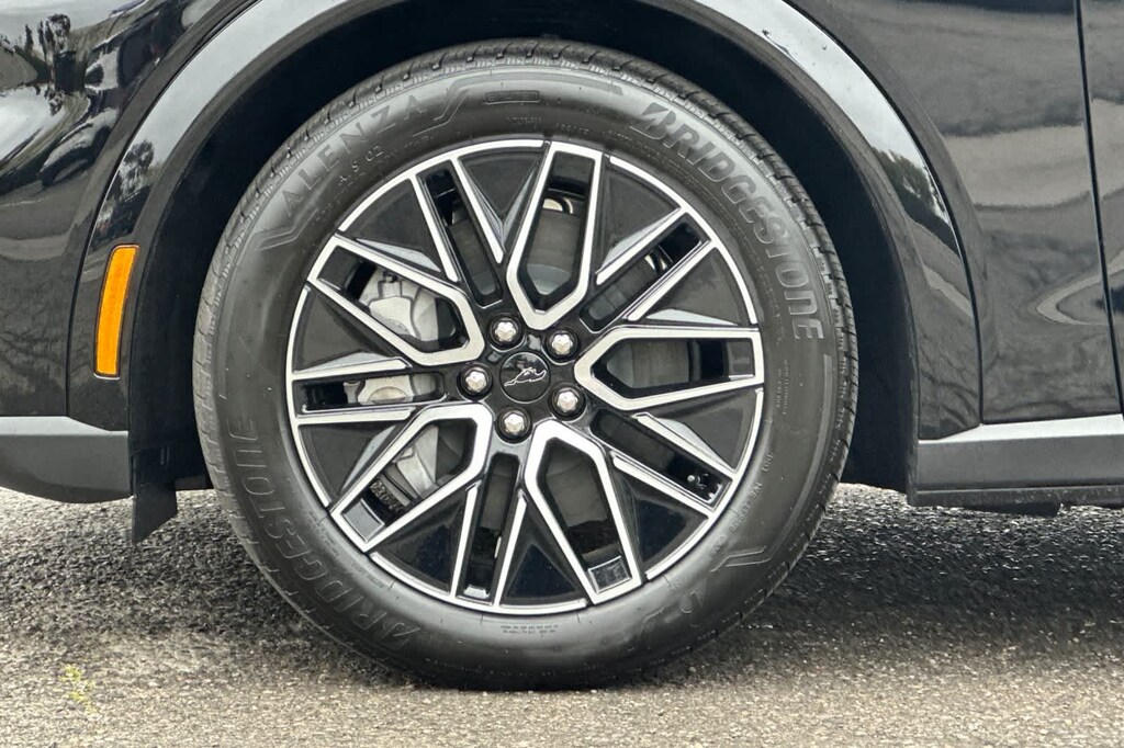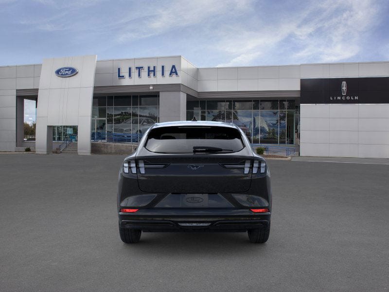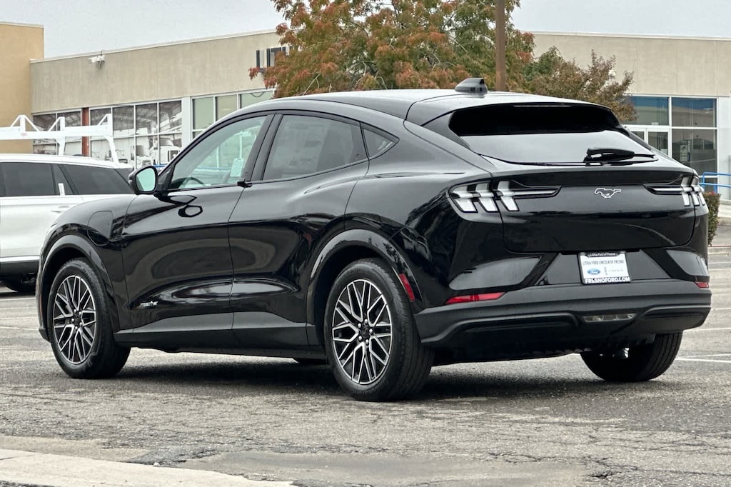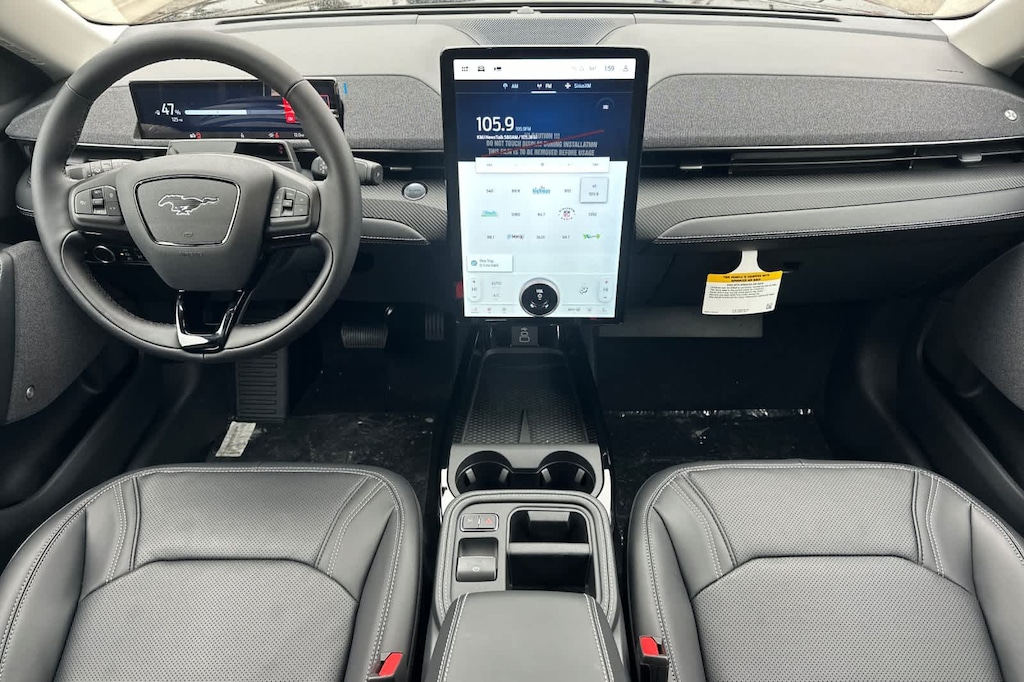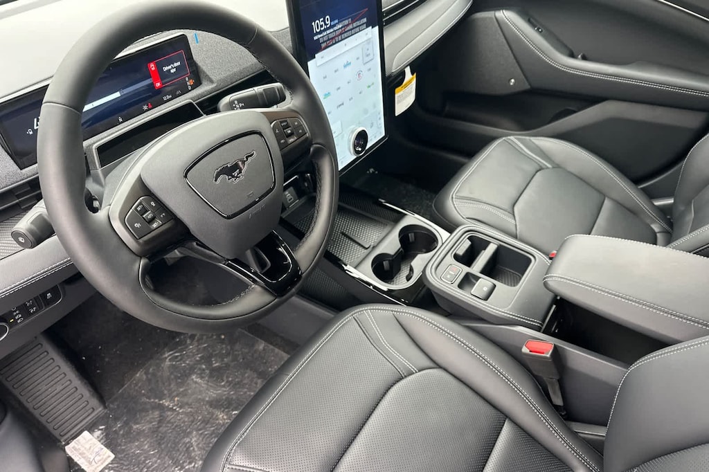 ENGINE: PRIMARY MOTOR (REAR) (RWD) (997) 88kWh usable capacity extended range battery, BLUECRUISE EQUIPPED (ONE-TIME PURCHASE) See ford.com/bluecruise for version details, Option for a one-time purchase of BlueCruise, BlueCruise service will be active for a minimum of 7 years on this vehicle (non-transferable to another VIN), No additional subscription purchase will be required to maintain BlueCruise service beyond the 7 years if the service is available, TRANSMISSION: SINGLE SPEED (STD). 2025 Ford Mustang Mach-E with Shadow Black exterior and Black Onyx interior features a Electric Motor.