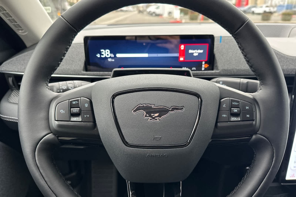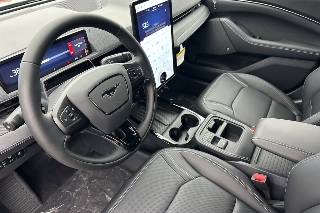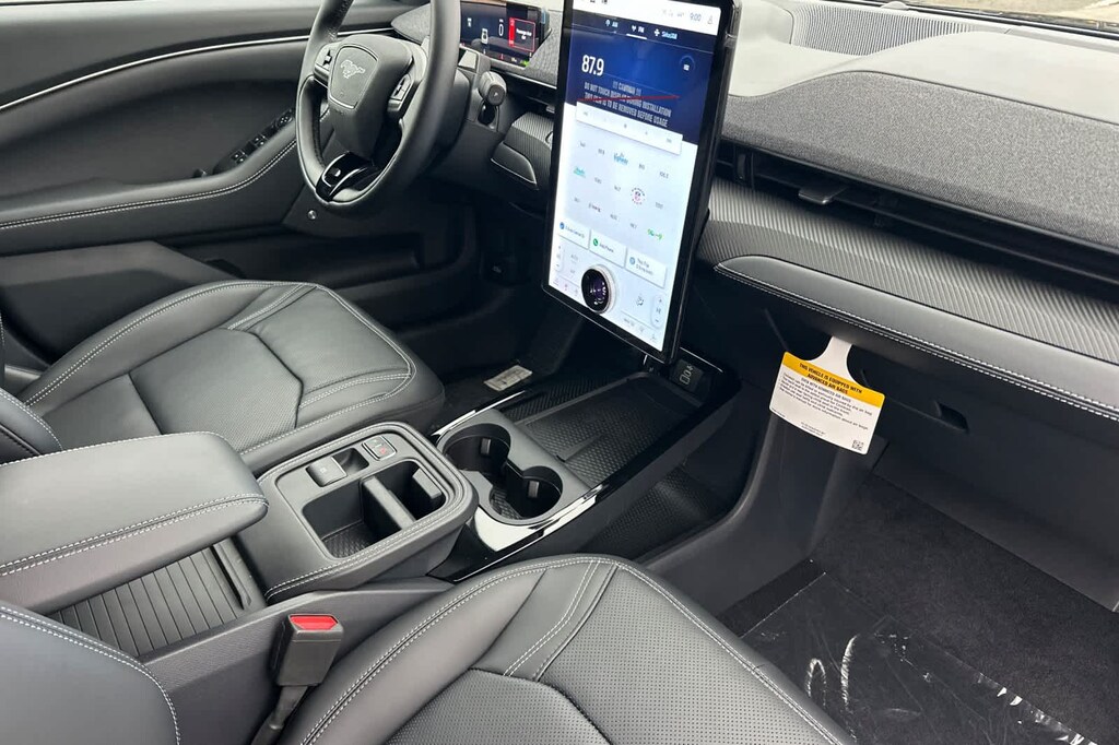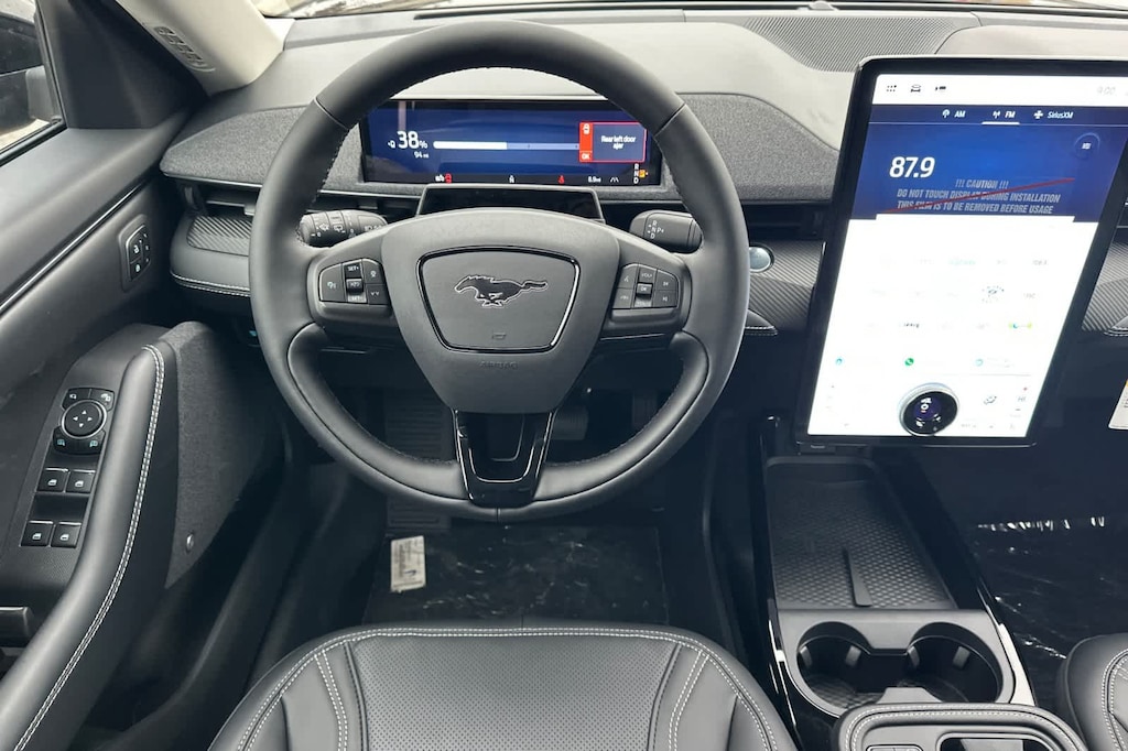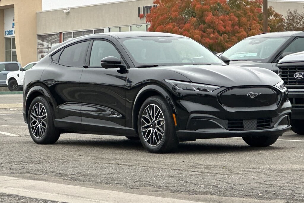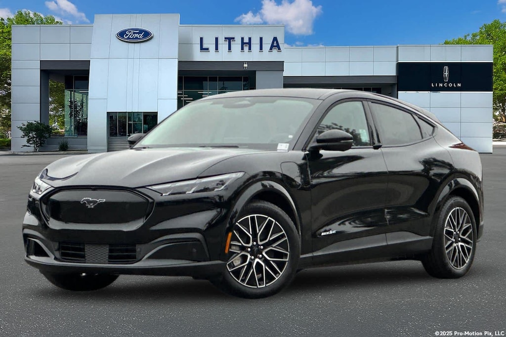 Lithia Ford and Lincoln of Fresno is pleased to offer this Shadow Black 2025 Ford Mustang Mach-E Premium for purchase, this vehicle is well equipped with many features including: 10 Speakers, 4-Wheel Disc Brakes, ABS brakes, Air Conditioning, Alloy wheels, AM/FM radio: SiriusXM with 360L, Apple CarPlay/Android Auto, Auto High-beam Headlights, Auto-dimming Rear-View mirror, Automatic temperature control, Brake assist, Bumpers: body-color, Compass, Delay-off headlights, Driver door bin, Driver vanity mirror, Dual front impact airbags, Dual front side impact airbags, Electronic Stability Control, Emergency communication system: 911 Assist, Exterior Parking Camera Rear, Four wheel independent suspension, Front anti-roll bar, Front Bucket Seats, Front Center Armrest, Front dual zone A/C, Front reading lights, Fully automatic headlights, Garage door transmitter, Heated door mirrors, Heated front seats, Heated steering wheel, Heated/Ventilated Perforated ActiveX Bucket Seats, Illuminated entry, Knee airbag, Low tire pressure warning, Memory seat, Navigation system: Connected Navigation, Occupant sensing airbag, Outside temperature display, Overhead airbag, Overhead console, Panic alarm, Passenger door bin, Passenger vanity mirror, Power door mirrors, Power driver seat, Power Liftgate, Power passenger seat, Power steering, Power windows, Radio data system, Radio: B&O Sound System by Bang & Olufsen, Rain sensing wipers, Rear anti-roll bar, Rear seat center armrest, Rear side impact airbag, Rear window defroster, Rear window wiper, Remote keyless entry, Security system, SiriusXM w/360L, Speed control, Speed-sensing steering, Speed-Sensitive Wipers, Split folding rear seat, Spoiler, Steering wheel mounted audio controls, SYNC 4A w/Enhanced Voice Recognition, Telescoping steering wheel, Tilt steering wheel, Traction control, Trip computer, Turn signal indicator mirrors, Variably intermittent wipers, Ventilated front seats, and Wheels: 19 Bright Machined-Face Aluminum. RWD Single-Speed Automatic Dual Electric Motor Premium