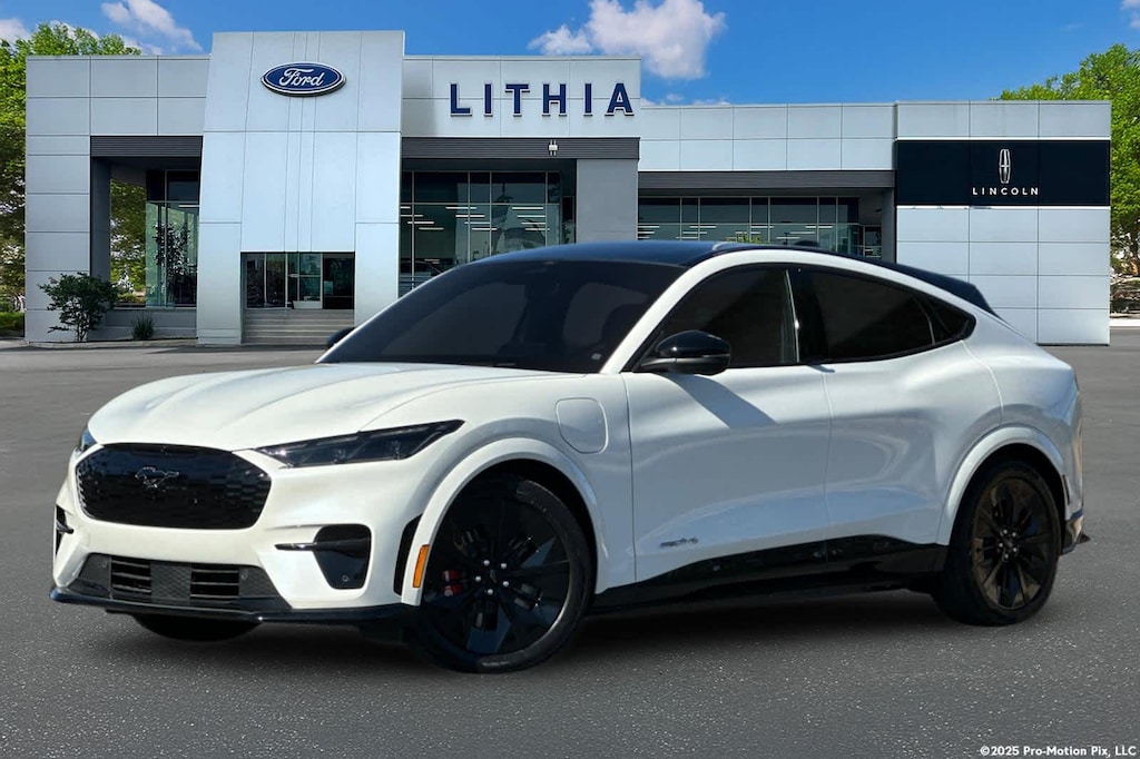 Lithia Ford and Lincoln of Fresno is pleased to offer this Star White Metallic Tri-Coat 2025 Ford Mustang Mach-E GT for purchase, this vehicle is well equipped with many features including: 10 Speakers, 4-Wheel Disc Brakes, ABS brakes, Adaptive suspension, Air Conditioning, Alloy wheels, AM/FM radio: SiriusXM with 360L, Apple CarPlay/Android Auto, Auto High-beam Headlights, Auto-dimming Rear-View mirror, Automatic temperature control, Brake assist, Bumpers: body-color, Compass, Delay-off headlights, Driver door bin, Driver vanity mirror, Dual front impact airbags, Dual front side impact airbags, Electronic Stability Control, Emergency communication system: 911 Assist, Exterior Parking Camera Rear, Four wheel independent suspension, Front anti-roll bar, Front Bucket Seats, Front Center Armrest, Front dual zone A/C, Front reading lights, Fully automatic headlights, Garage door transmitter, Heated door mirrors, Heated front seats, Heated Perforated ActiveX Performance Seats, Heated steering wheel, Illuminated entry, Knee airbag, Low tire pressure warning, Memory seat, Navigation system: Connected Navigation, Occupant sensing airbag, Outside temperature display, Overhead airbag, Overhead console, Panic alarm, Passenger door bin, Passenger vanity mirror, Power door mirrors, Power driver seat, Power Liftgate, Power passenger seat, Power steering, Power windows, Radio data system, Radio: B&O Sound System by Bang & Olufsen, Rain sensing wipers, Rear anti-roll bar, Rear seat center armrest, Rear side impact airbag, Rear window defroster, Rear window wiper, Remote keyless entry, Security system, SiriusXM w/360L, Speed control, Speed-sensing steering, Speed-Sensitive Wipers, Split folding rear seat, Spoiler, Steering wheel mounted audio controls, SYNC 4A w/Enhanced Voice Recognition, Telescoping steering wheel, Tilt steering wheel, Traction control, Trip computer, Turn signal indicator mirrors, Variably intermittent wipers, and Wheels: 20 Monochromatic High Gloss Black-Painted. AWD Single-Speed Automatic Electric Motor GT